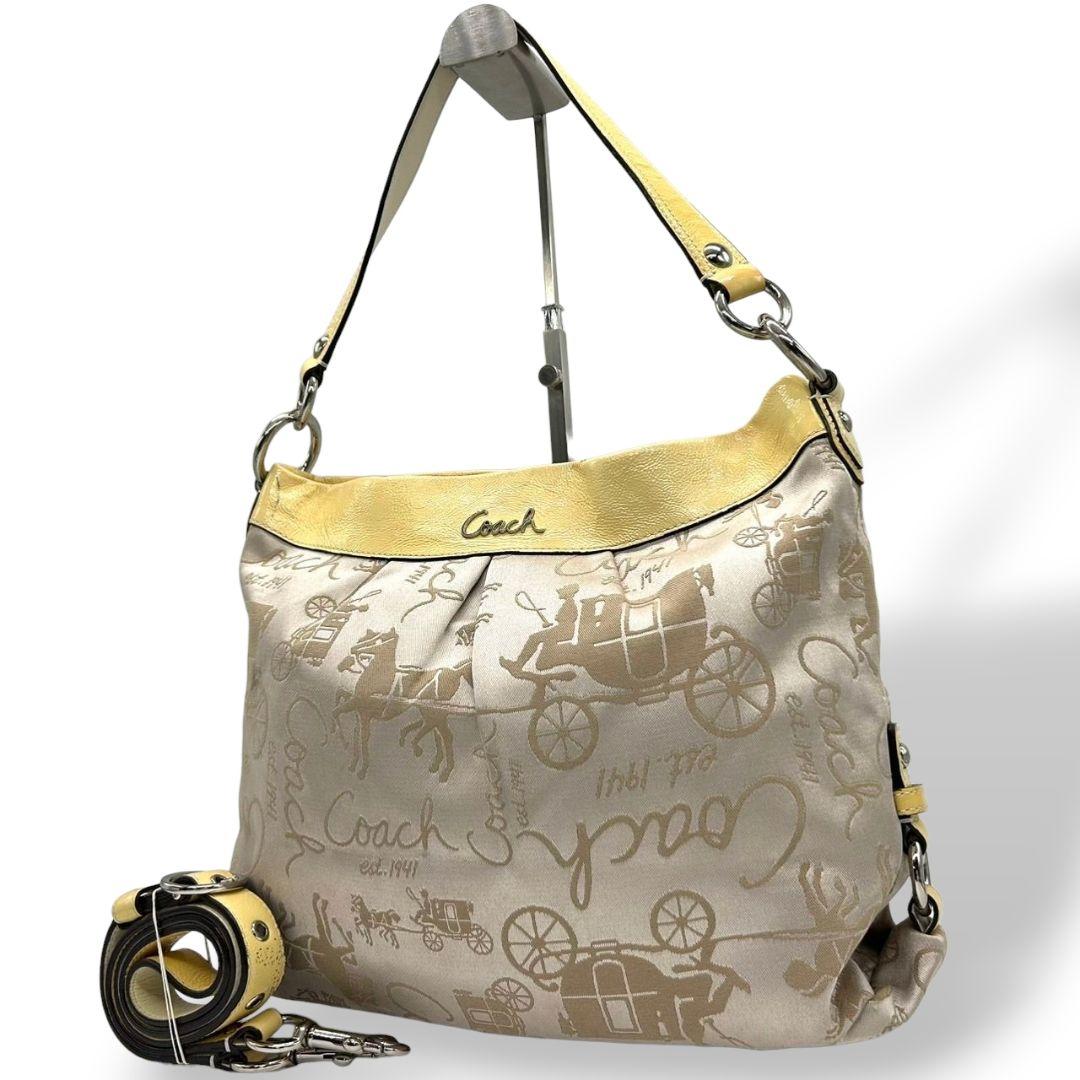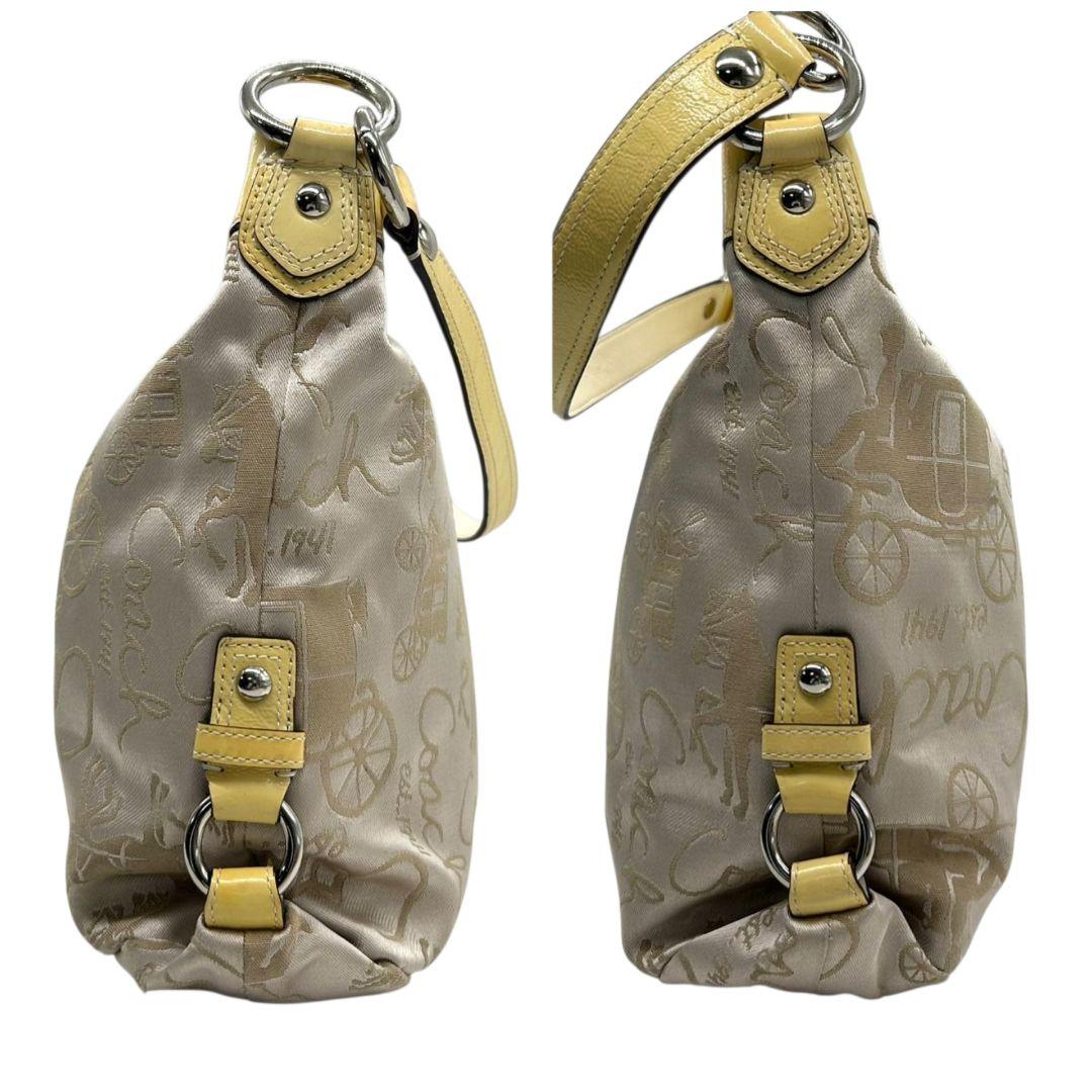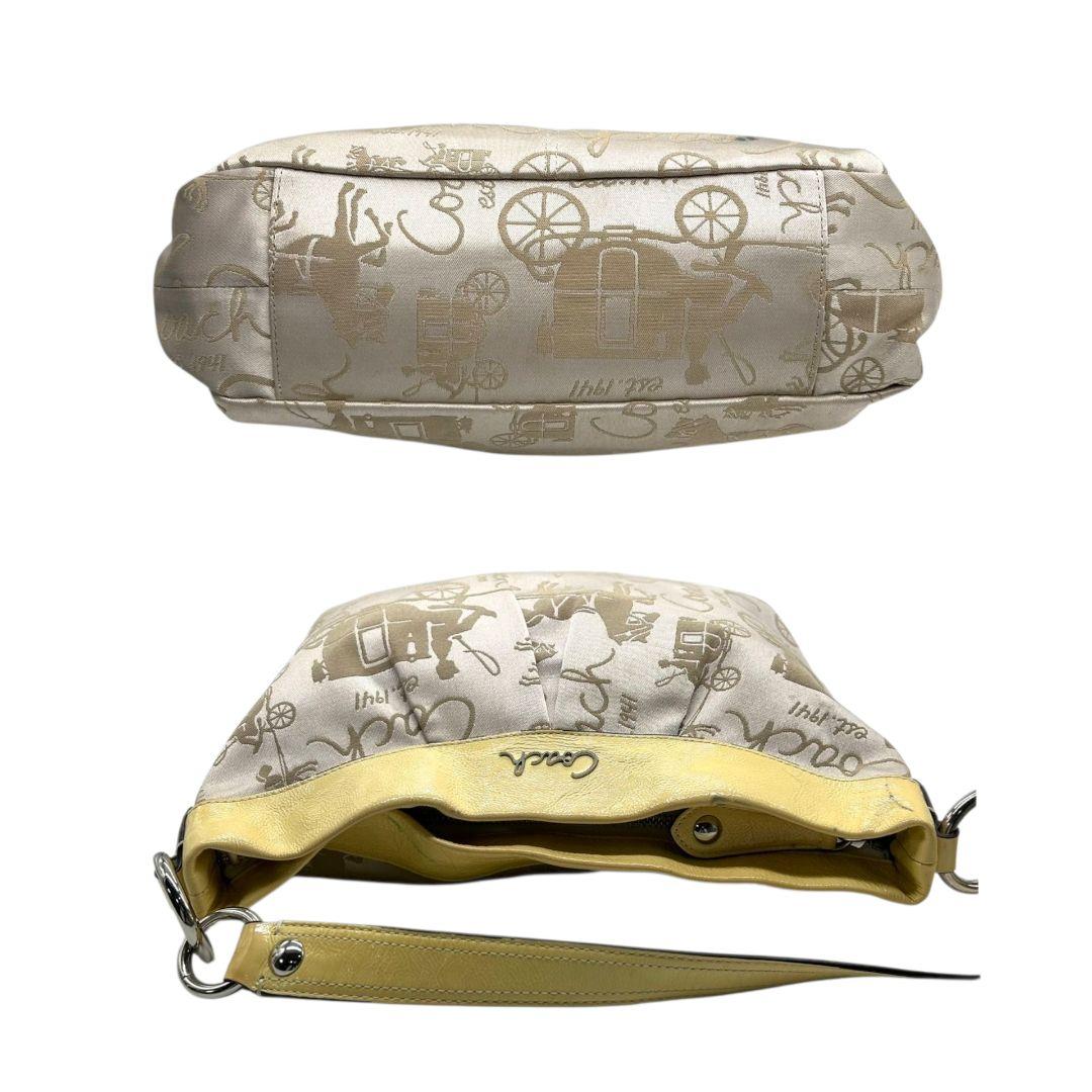 コーチ ショルダーバッグ 黄 イエロー ベージュ 馬車柄 ホースアンドキャリッジ 2way トートバッグ ハンドバッグ 斜め掛け可 ナイロン パテント s63 シルバー金具 COACH F16222