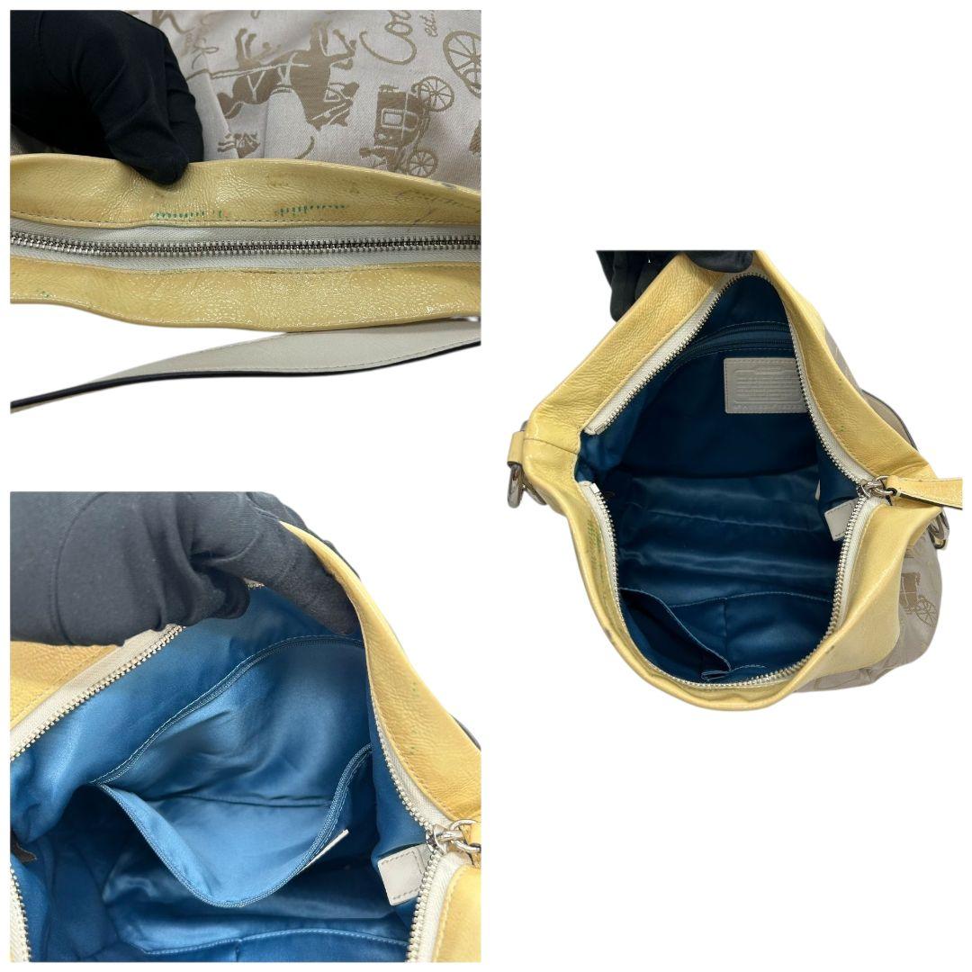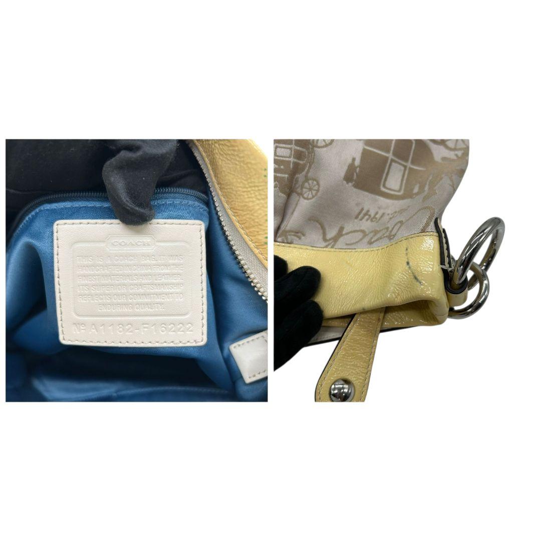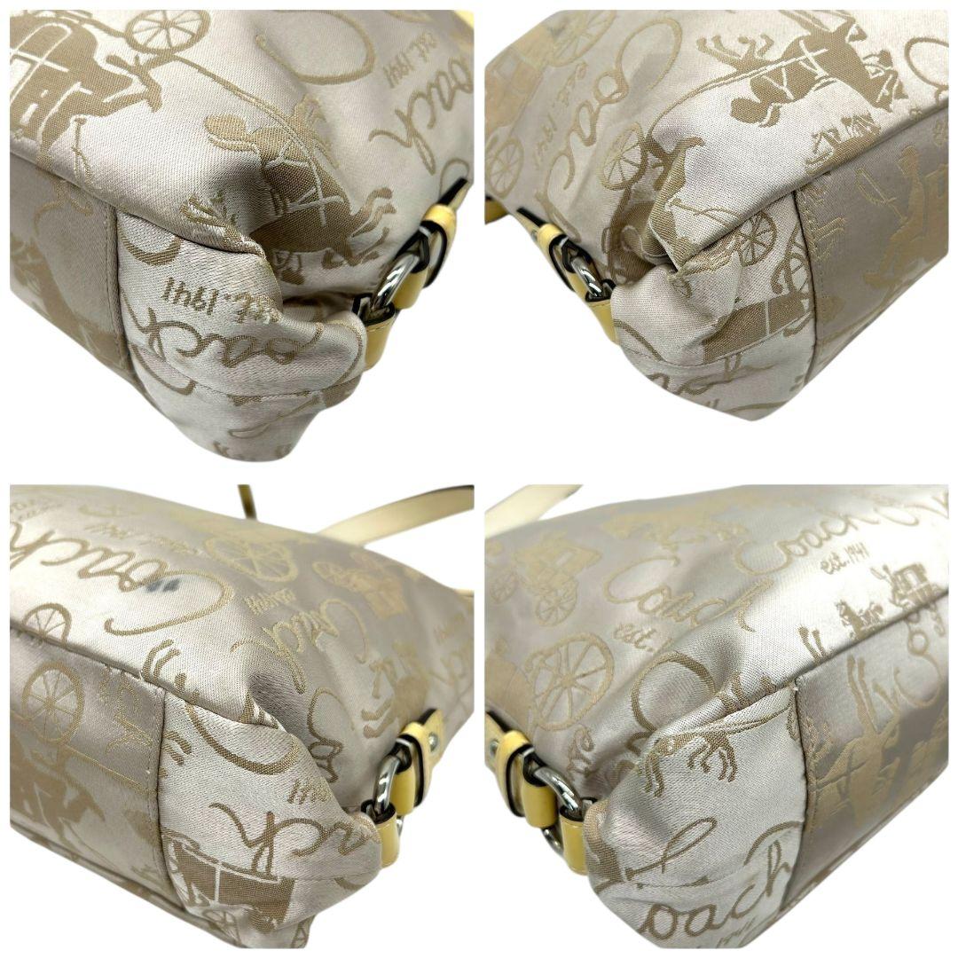 コーチ ショルダーバッグ 黄 イエロー ベージュ 馬車柄 ホースアンドキャリッジ 2way トートバッグ ハンドバッグ 斜め掛け可 ナイロン パテント s63 シルバー金具 COACH F16222