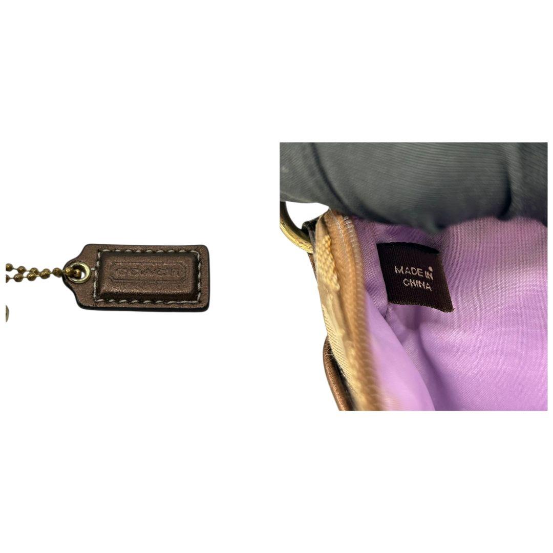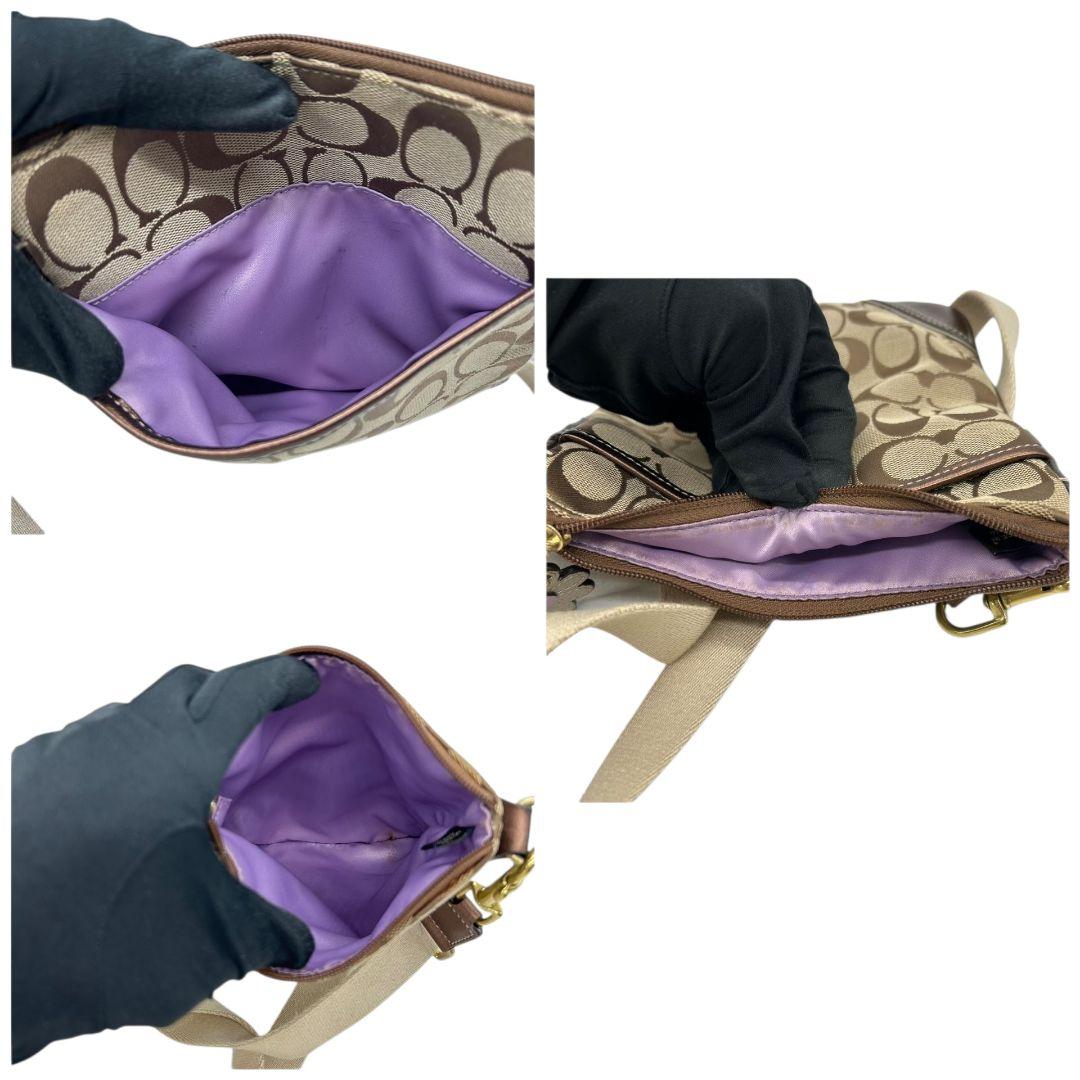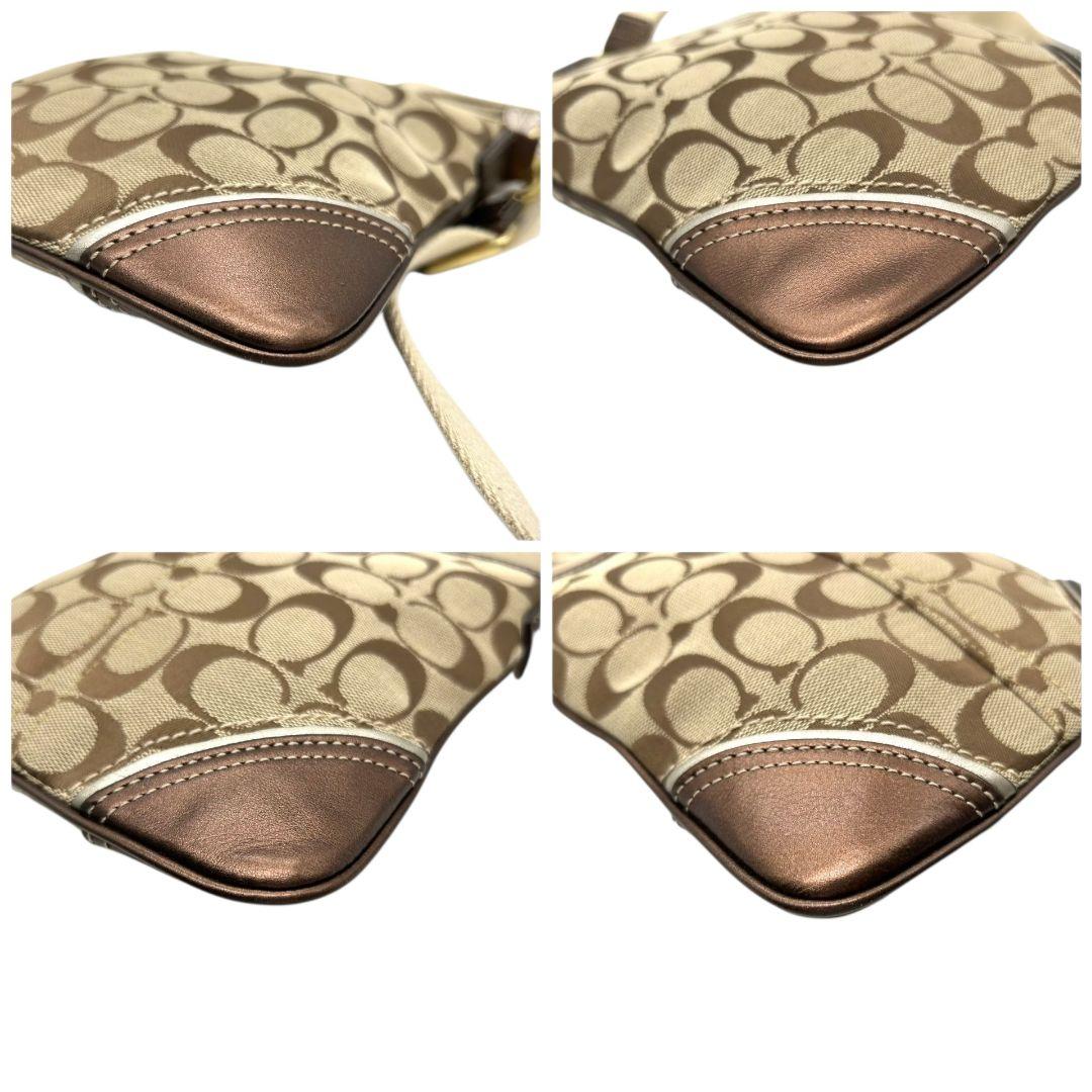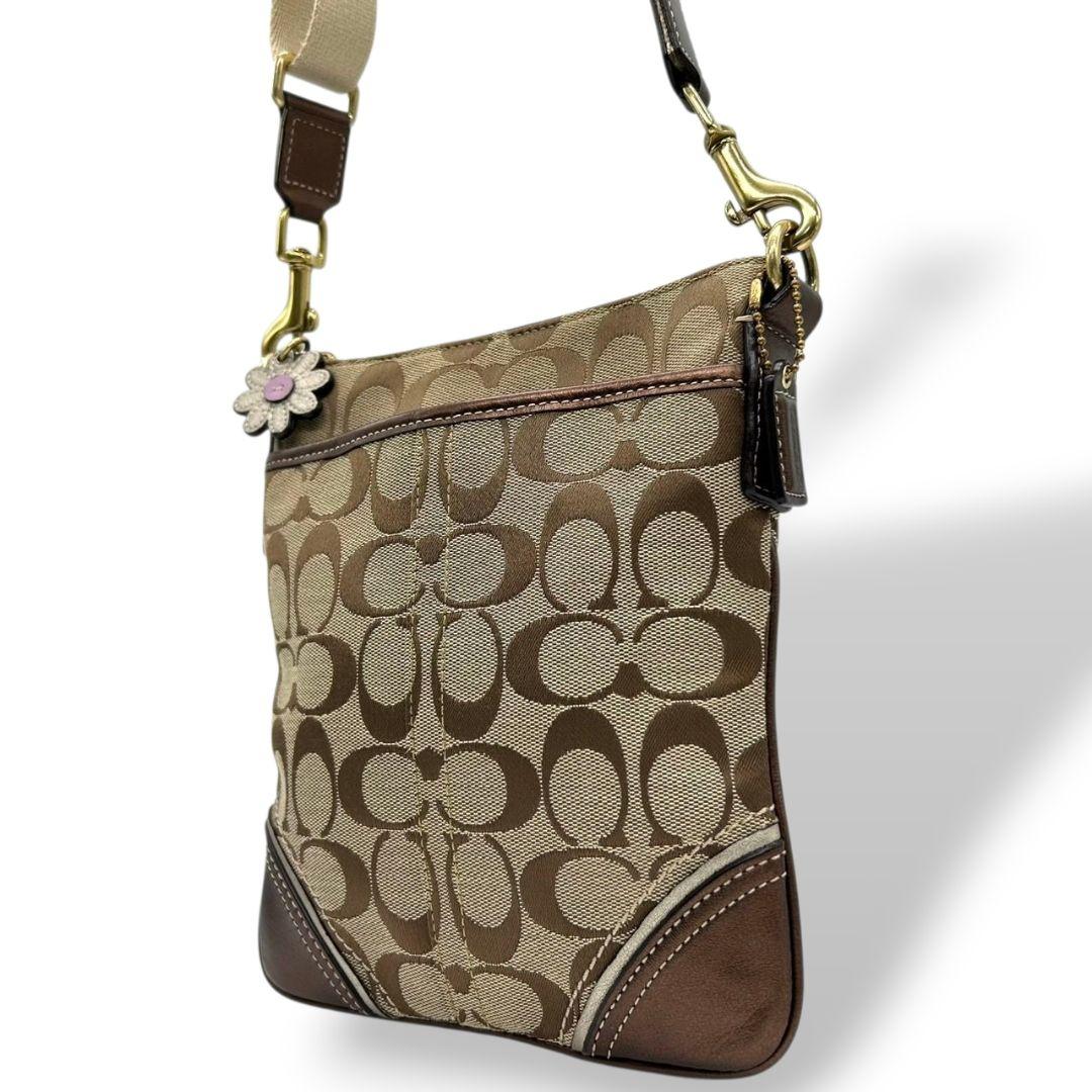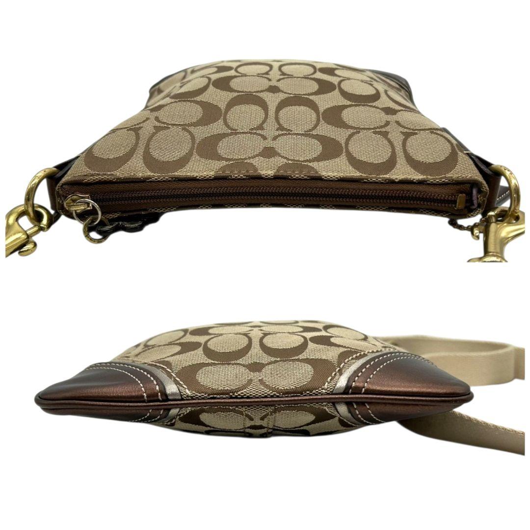 美品 コーチ ショルダーバッグ 茶 シグネチャー 斜め掛け可 キャンバス s63 ブラウン チャーム付き ロゴタグ ゴールド金具 COACH