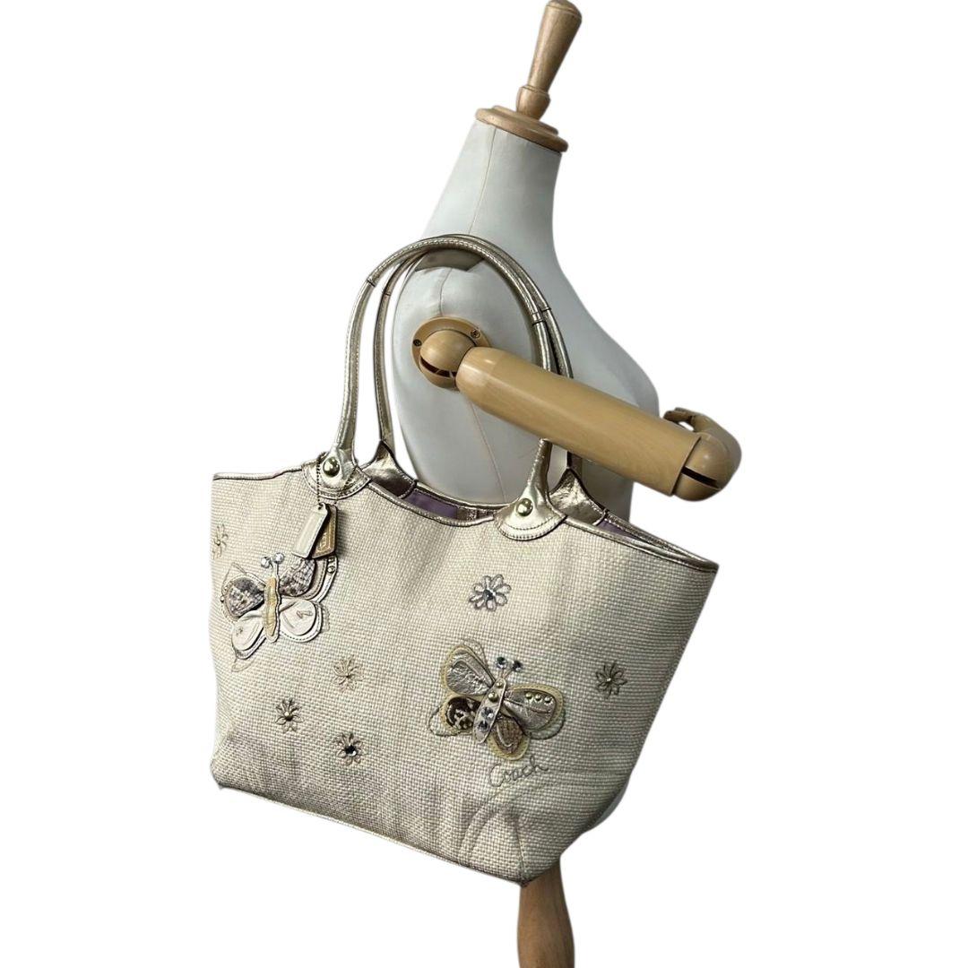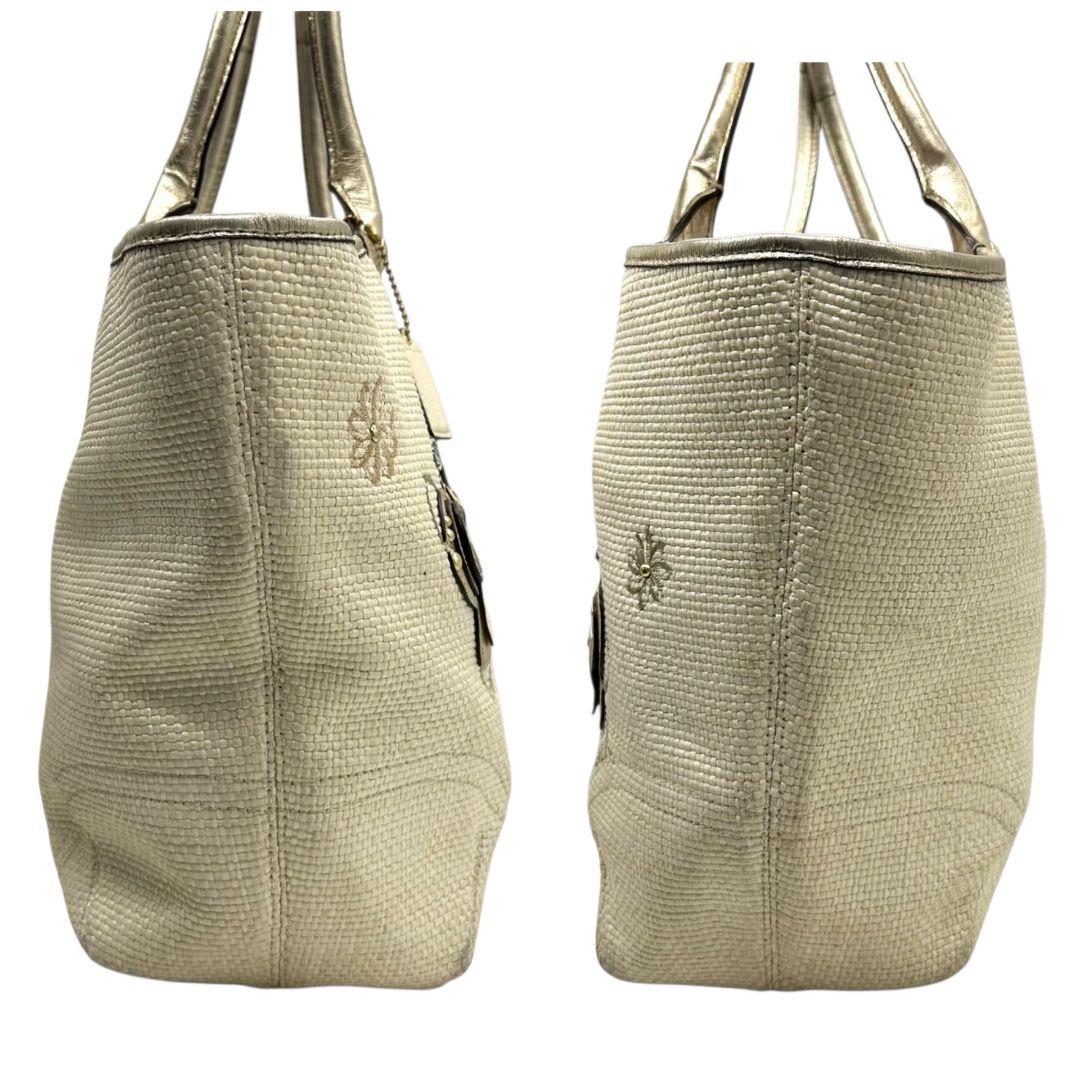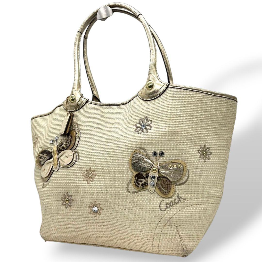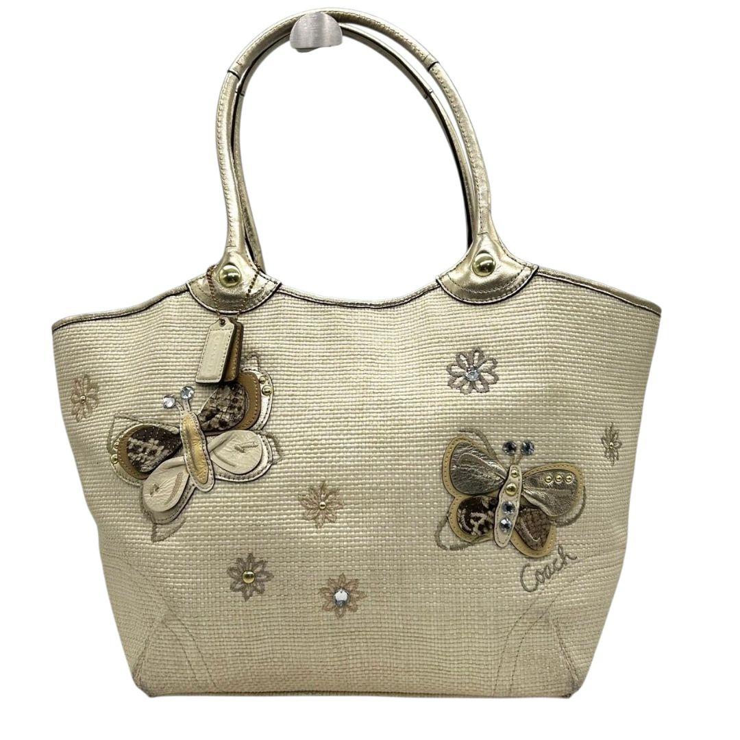 コーチ トートバッグ 白 ホワイト かごバッグ バタフライ 蝶 ストロー レザー A4収納 肩掛け可 ワンショルダー ゴールド金具 ロゴタグ チャーム スタッズ F16586 COACH