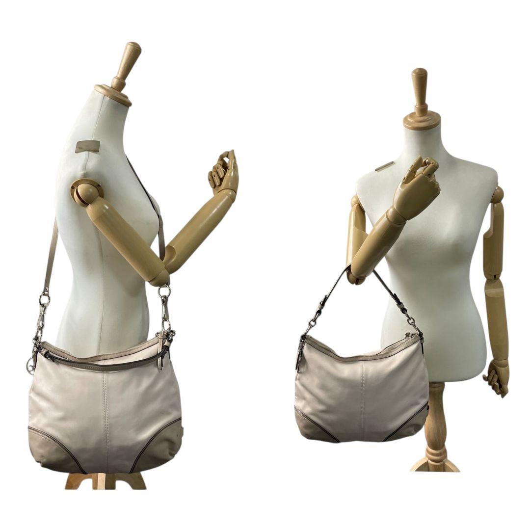 コーチ ハンドバッグ グレー 2way 斜め掛け可 ホーボー レザー T7 ショルダーバッグ トートバッグ ワンショルダー COACH 本革 肩掛け可 肩かけ可 シルバー金具 ロゴタグ F21967 グレージュ
