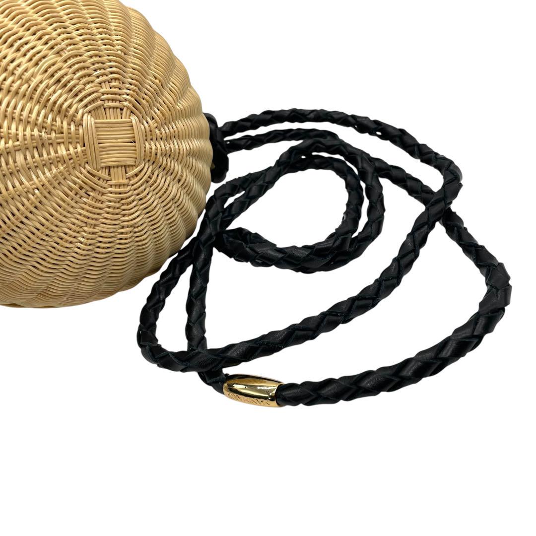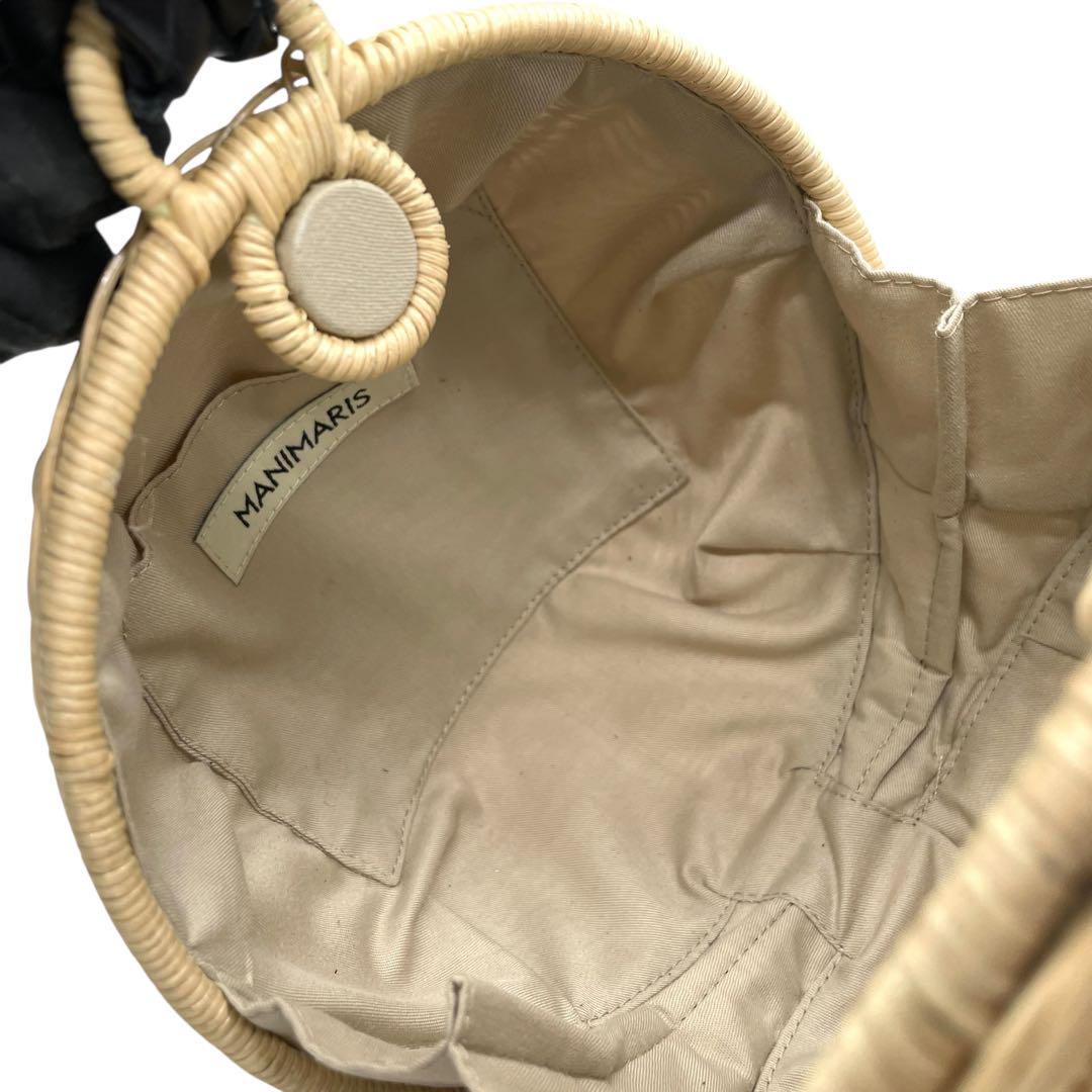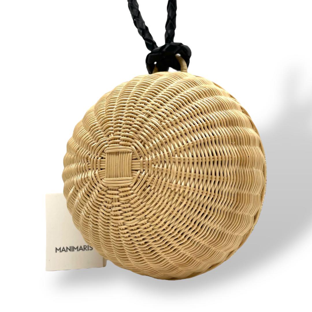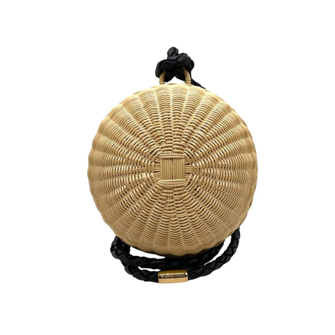 美品 マニマリス フルムーンバスケット かごバッグ 丸型 ショルダーバッグ クロスボディー 牛革ベルト付き コンパクト ベージュ ブラック ゴールド金具 MANIMARIS レディース
