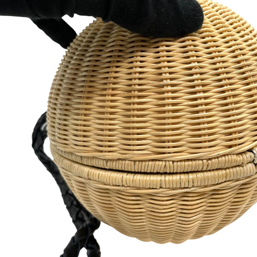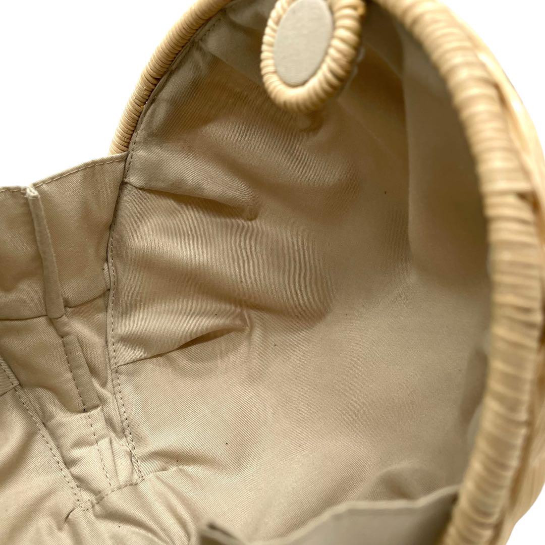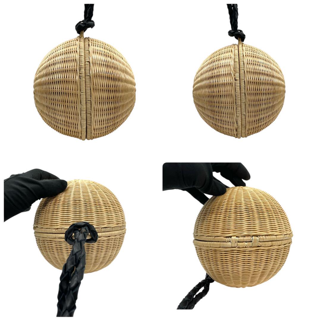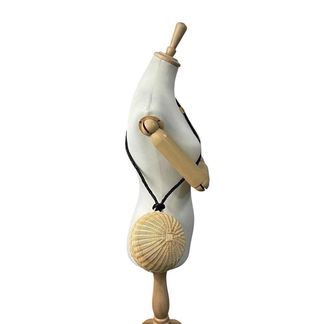 美品 マニマリス フルムーンバスケット かごバッグ 丸型 ショルダーバッグ クロスボディー 牛革ベルト付き コンパクト ベージュ ブラック ゴールド金具 MANIMARIS レディース