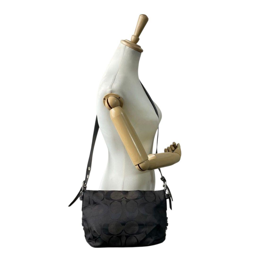 コーチ ショルダーバッグ 黒 シグネチャー 斜め掛け可 キャンバス T8 COACH レザー 本革 ロゴタグ シルバー金具 F15068 ブラック