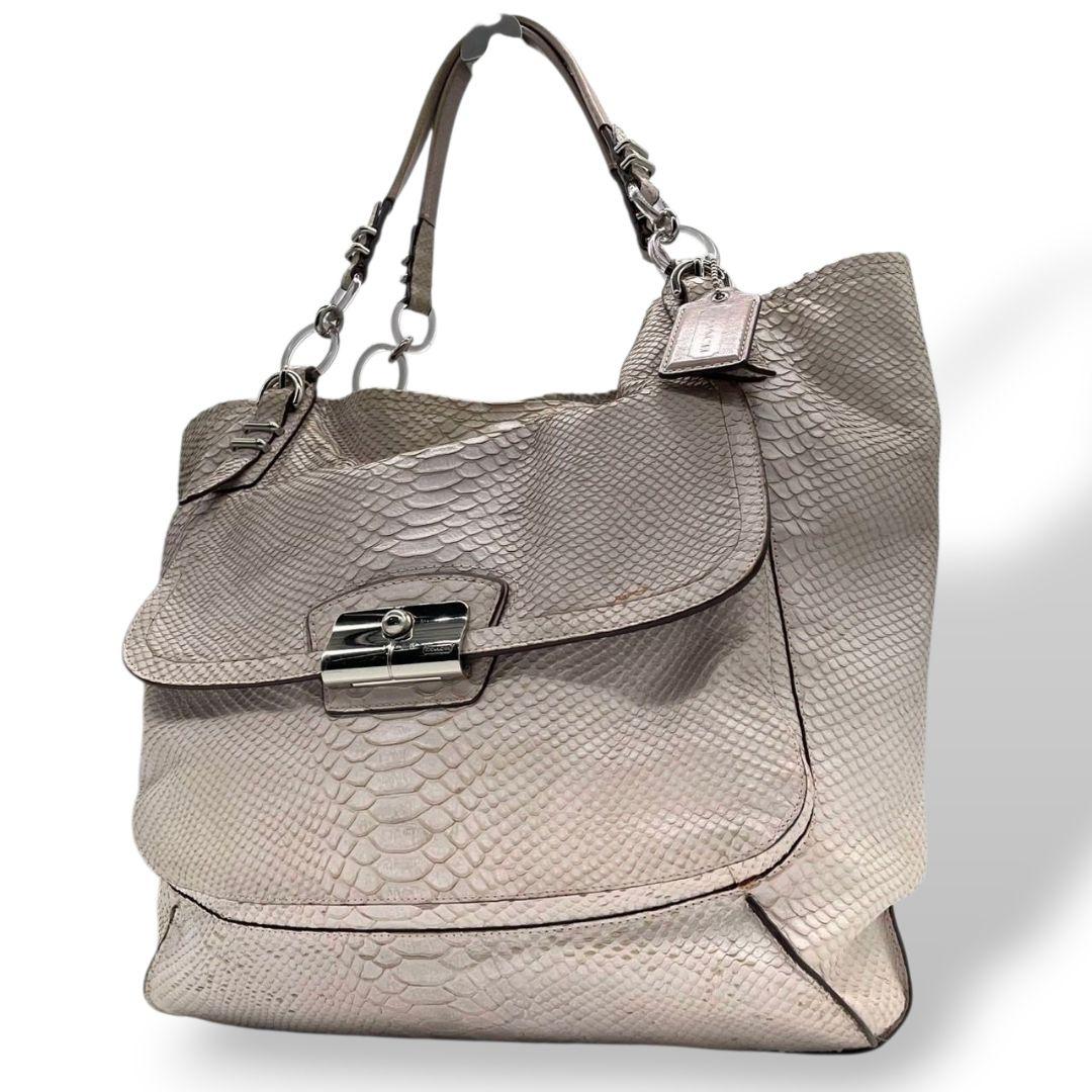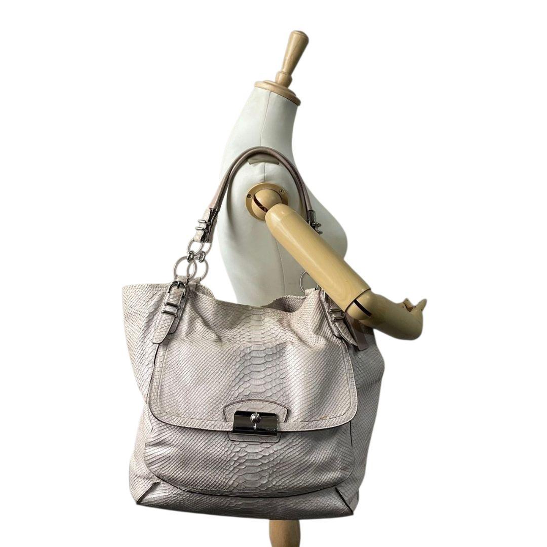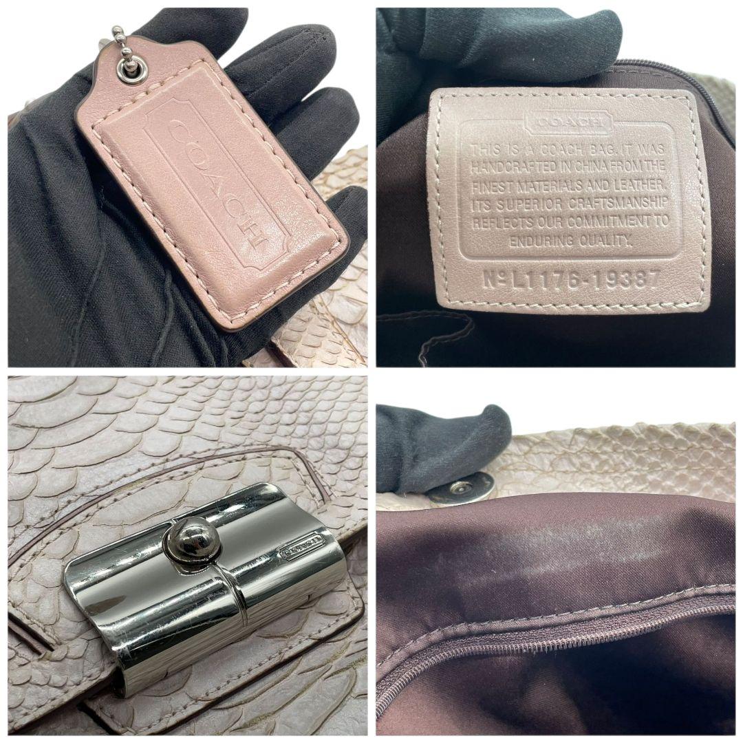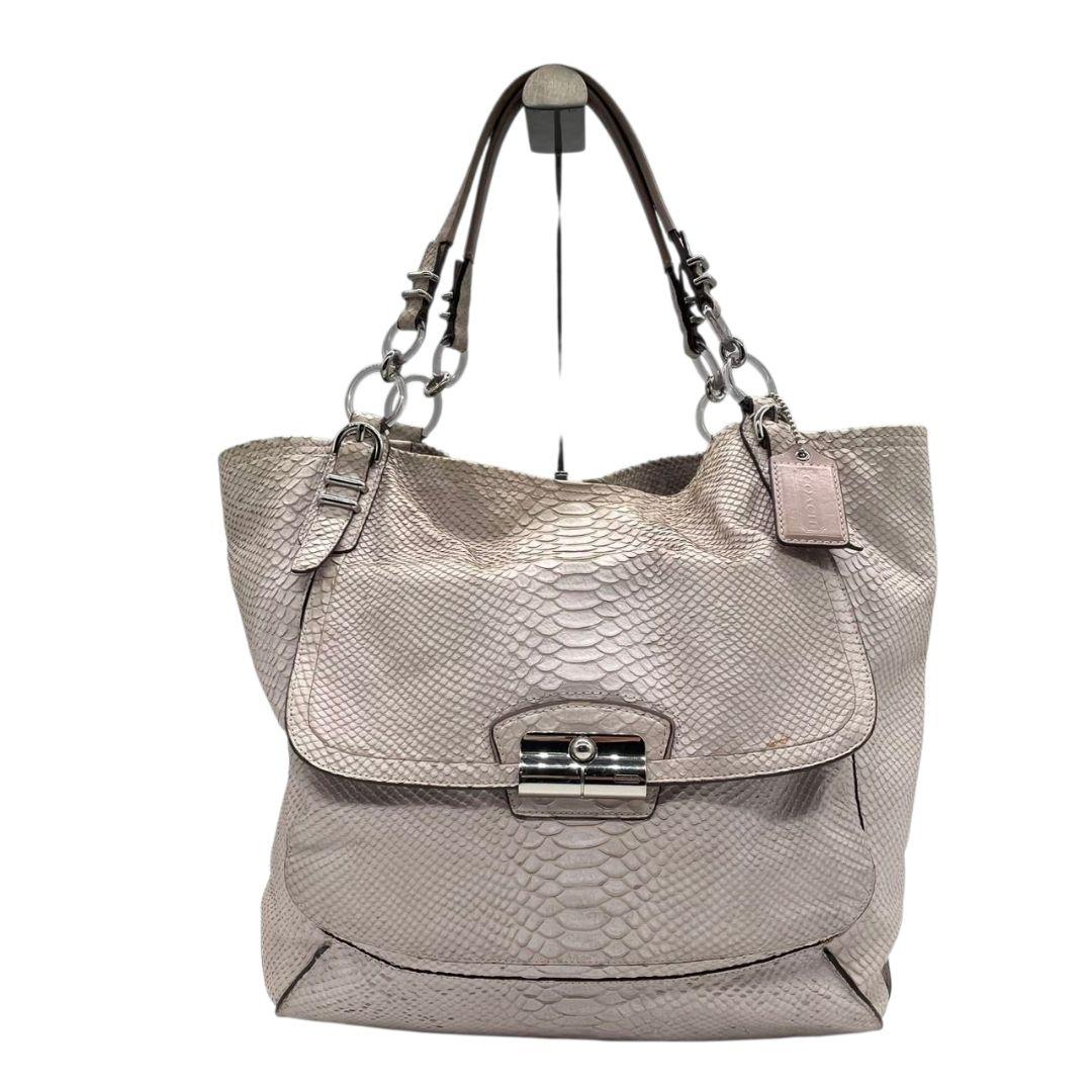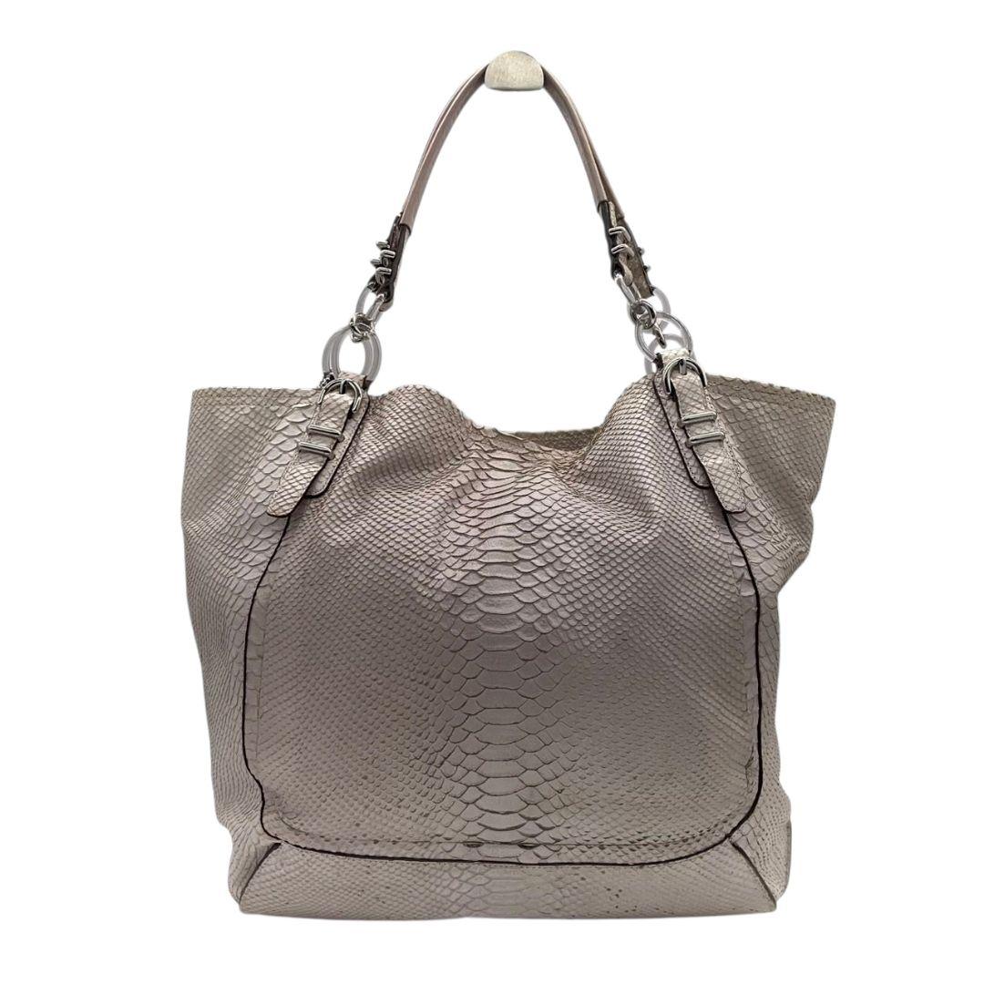 コーチ ハンドバッグ グレー 型押し ワンショルダー s80 A4収納 トートバッグ 肩掛け可 肩かけ可 レザー 本革 シルバー金具 ロゴタグ グレージュ 19387