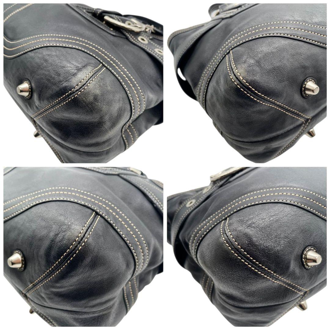 COACH コーチ ハンドバッグ トート 黒 ブラック レザー 本革 ワンショルダー 肩掛け可 シルバー金具 ロゴ T2