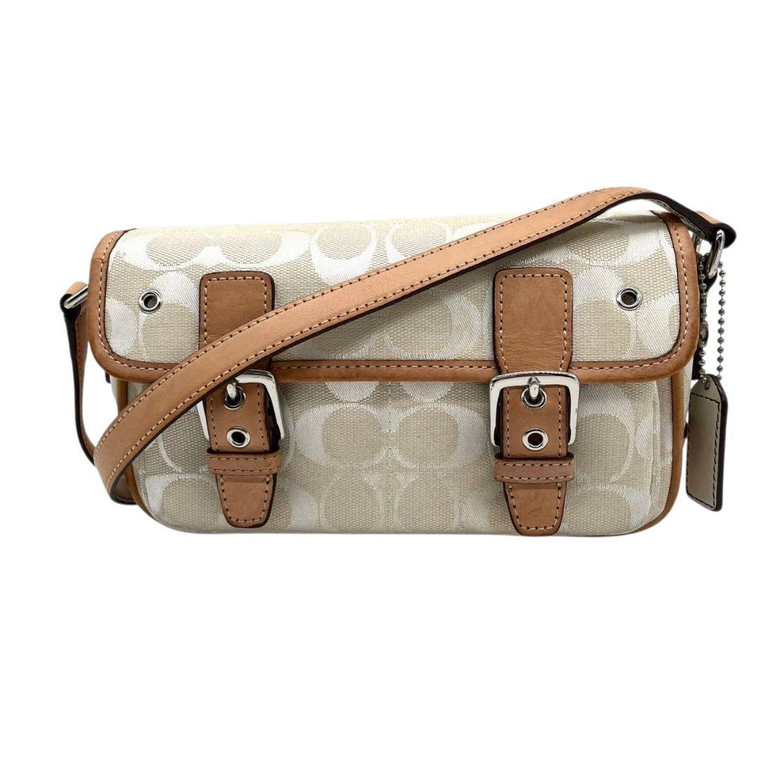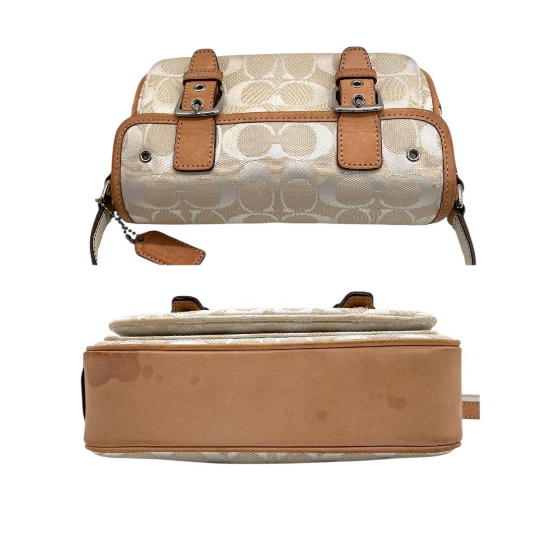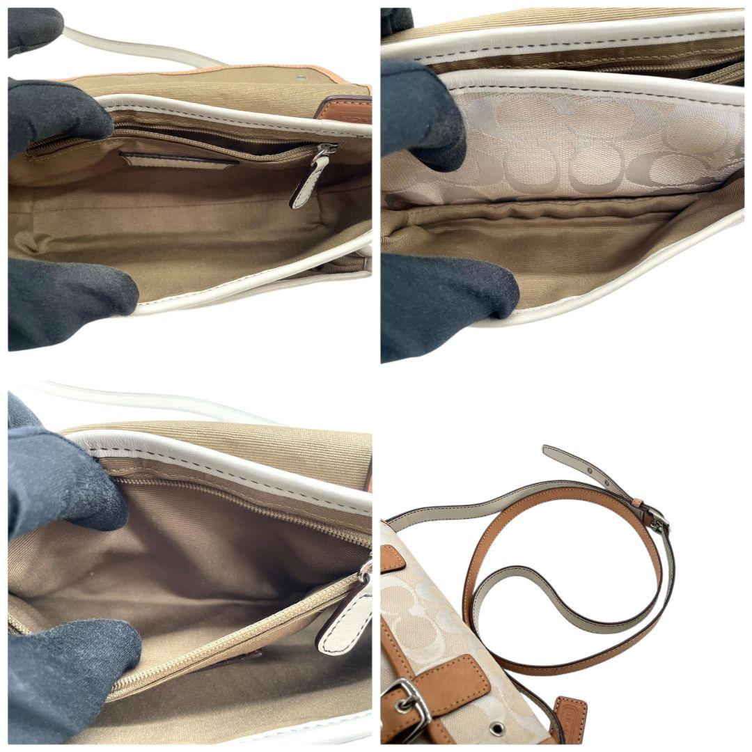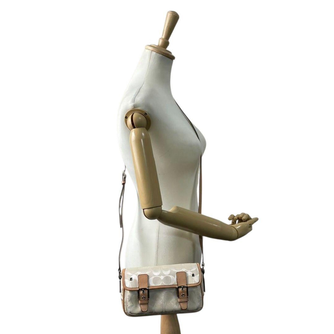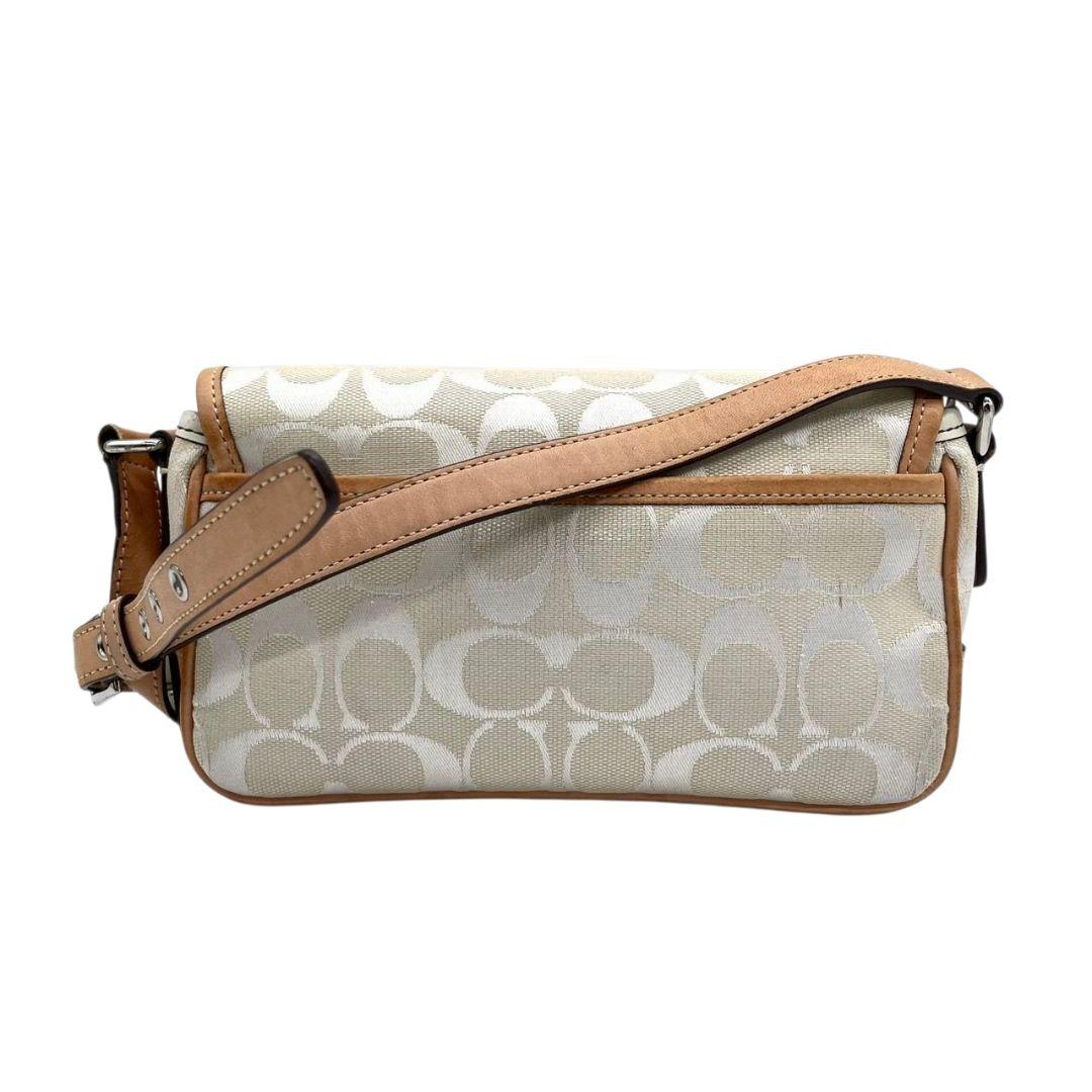 コーチ ショルダーバッグ アイボリー シグネチャー フラップ キャンバス T2 斜め掛け可 レザー 本革 ロゴタグ シルバー金具 6844 ホワイト COACH
