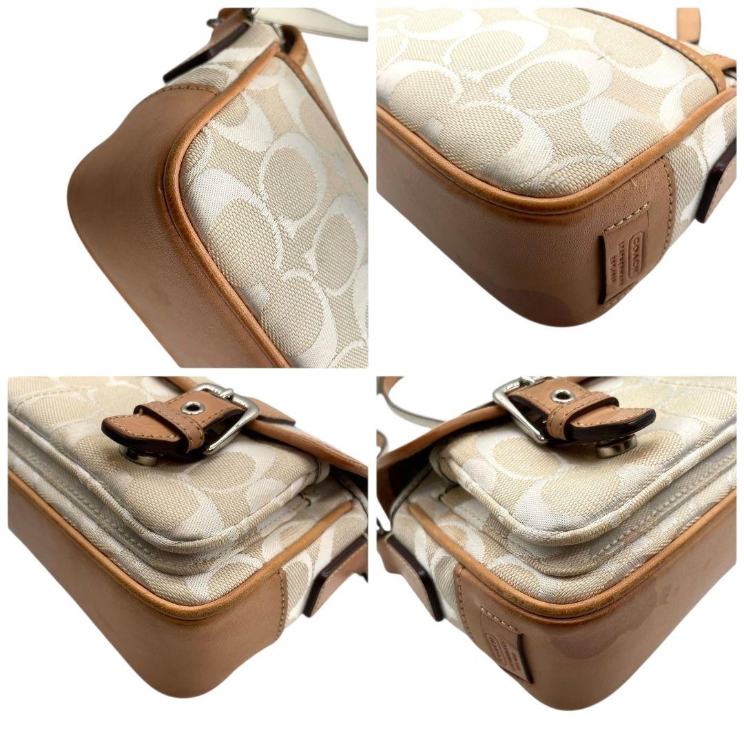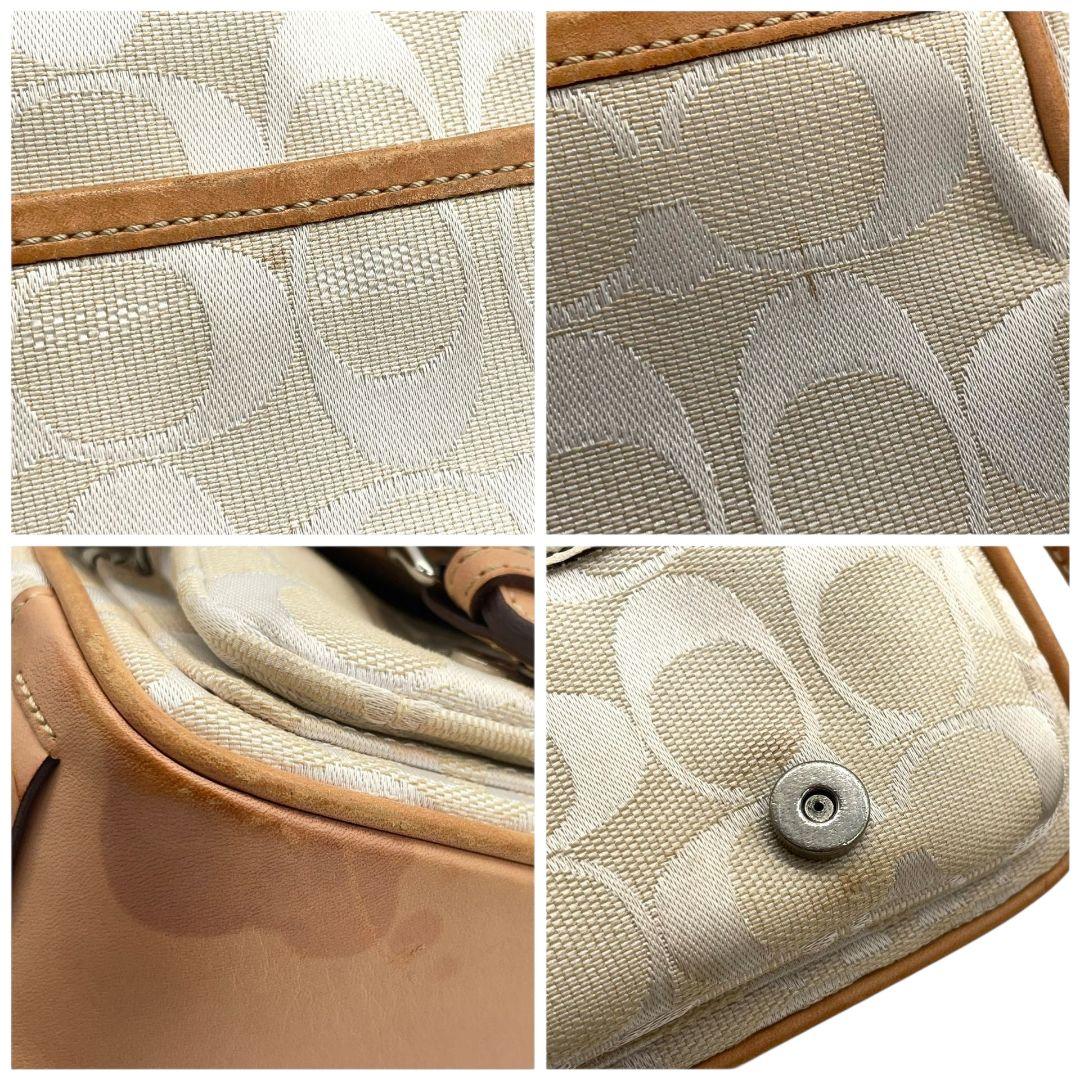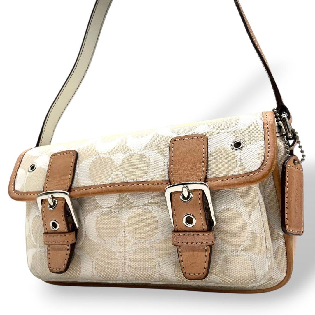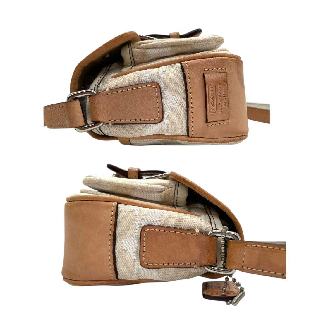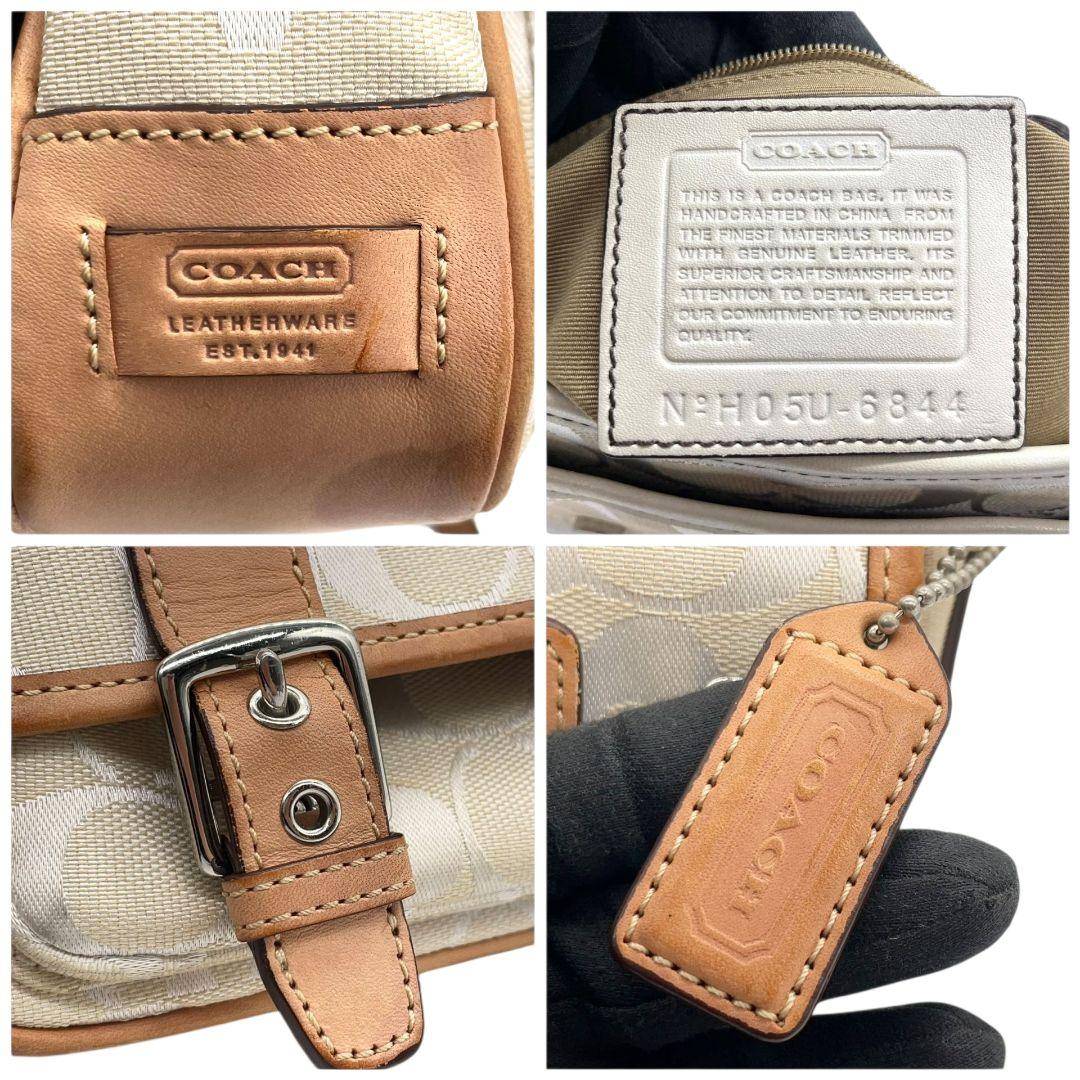 コーチ ショルダーバッグ アイボリー シグネチャー フラップ キャンバス T2 斜め掛け可 レザー 本革 ロゴタグ シルバー金具 6844 ホワイト COACH