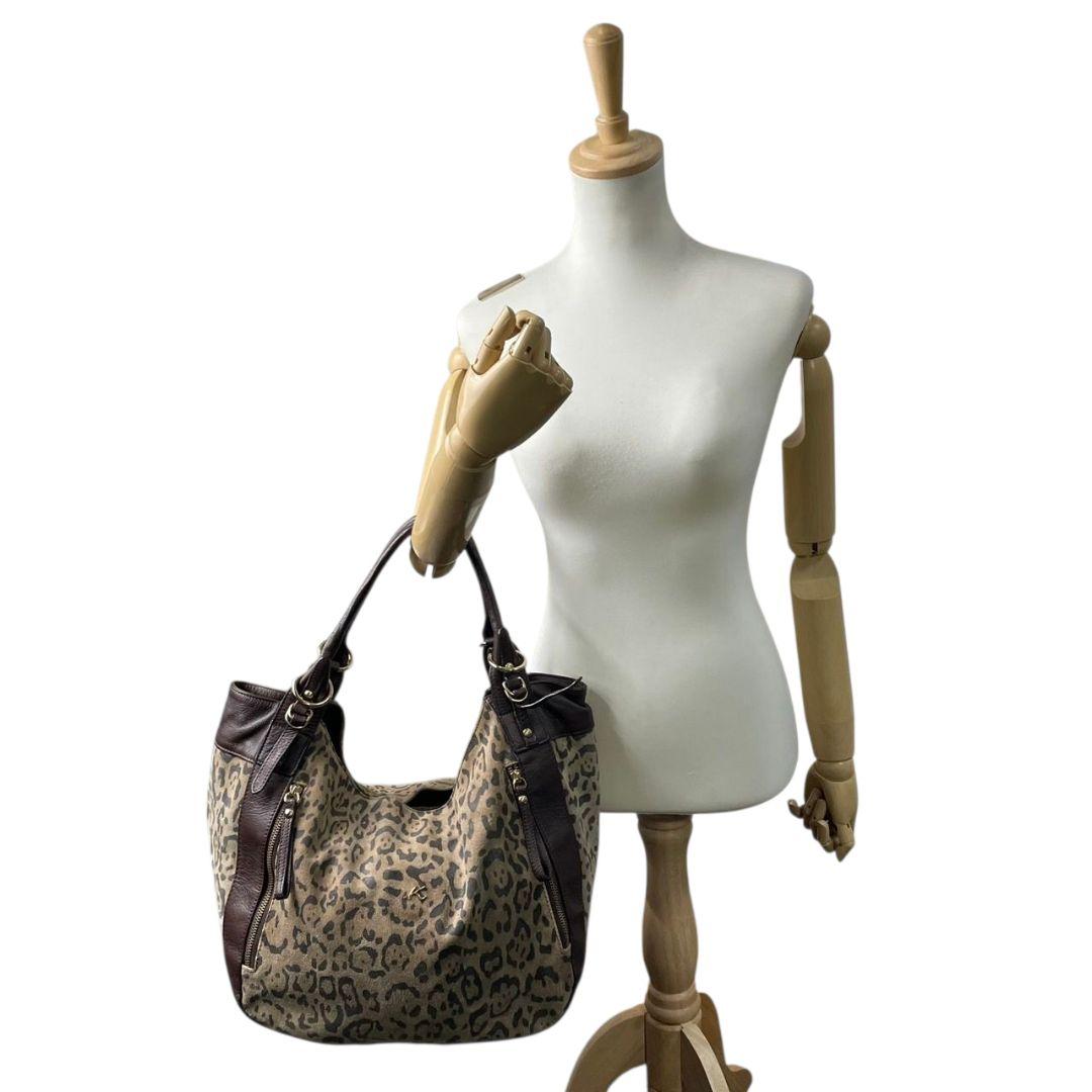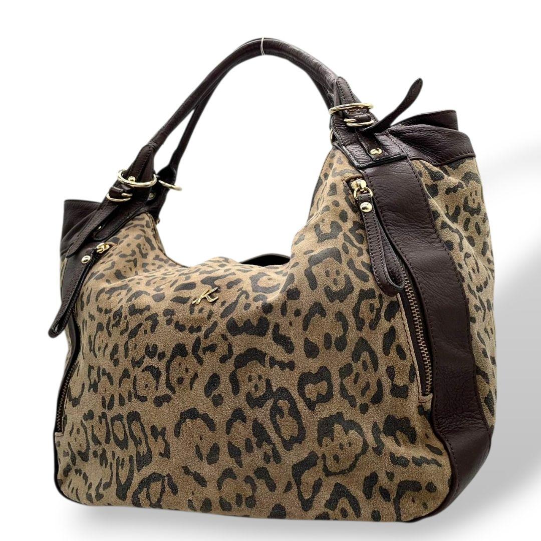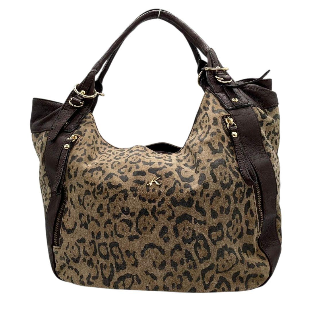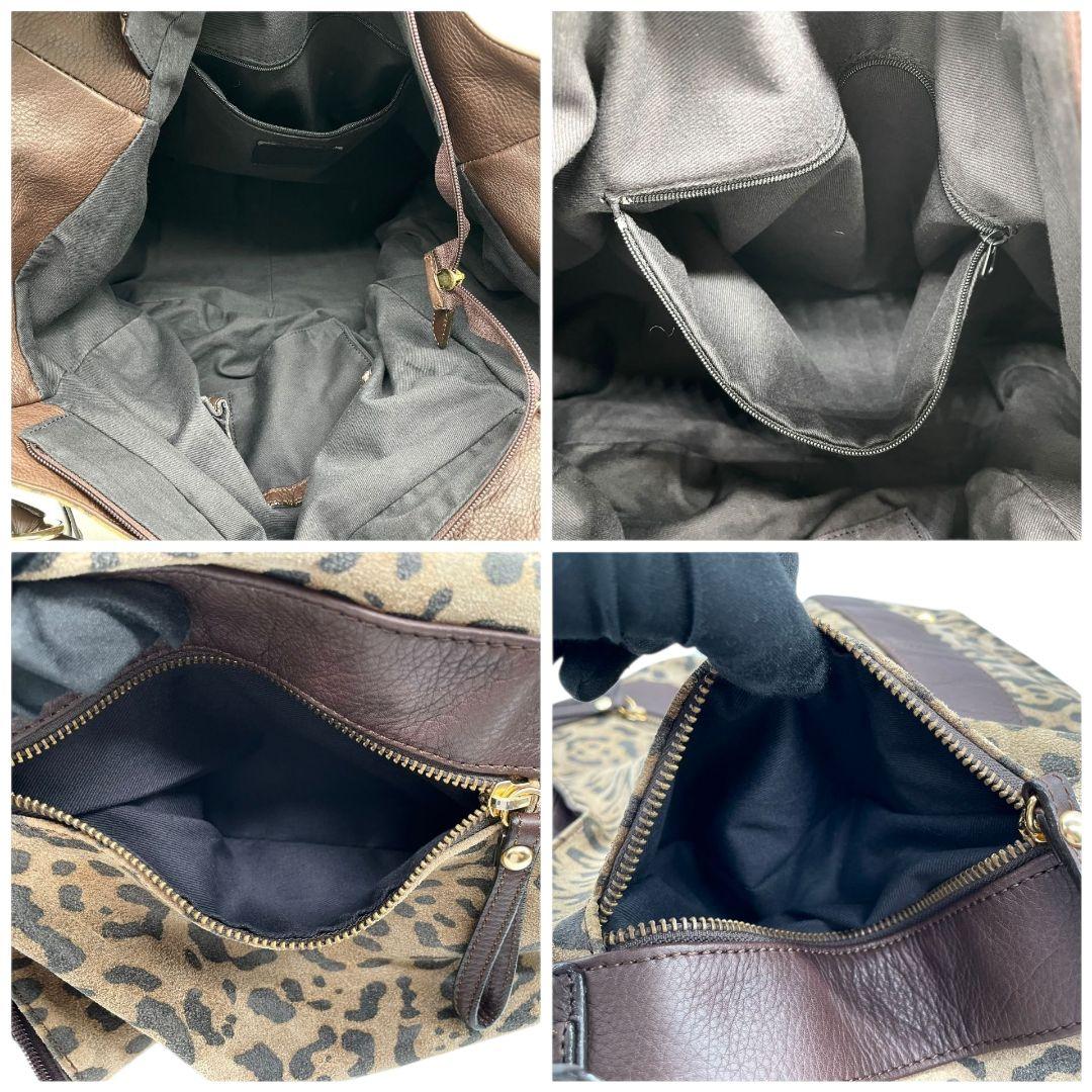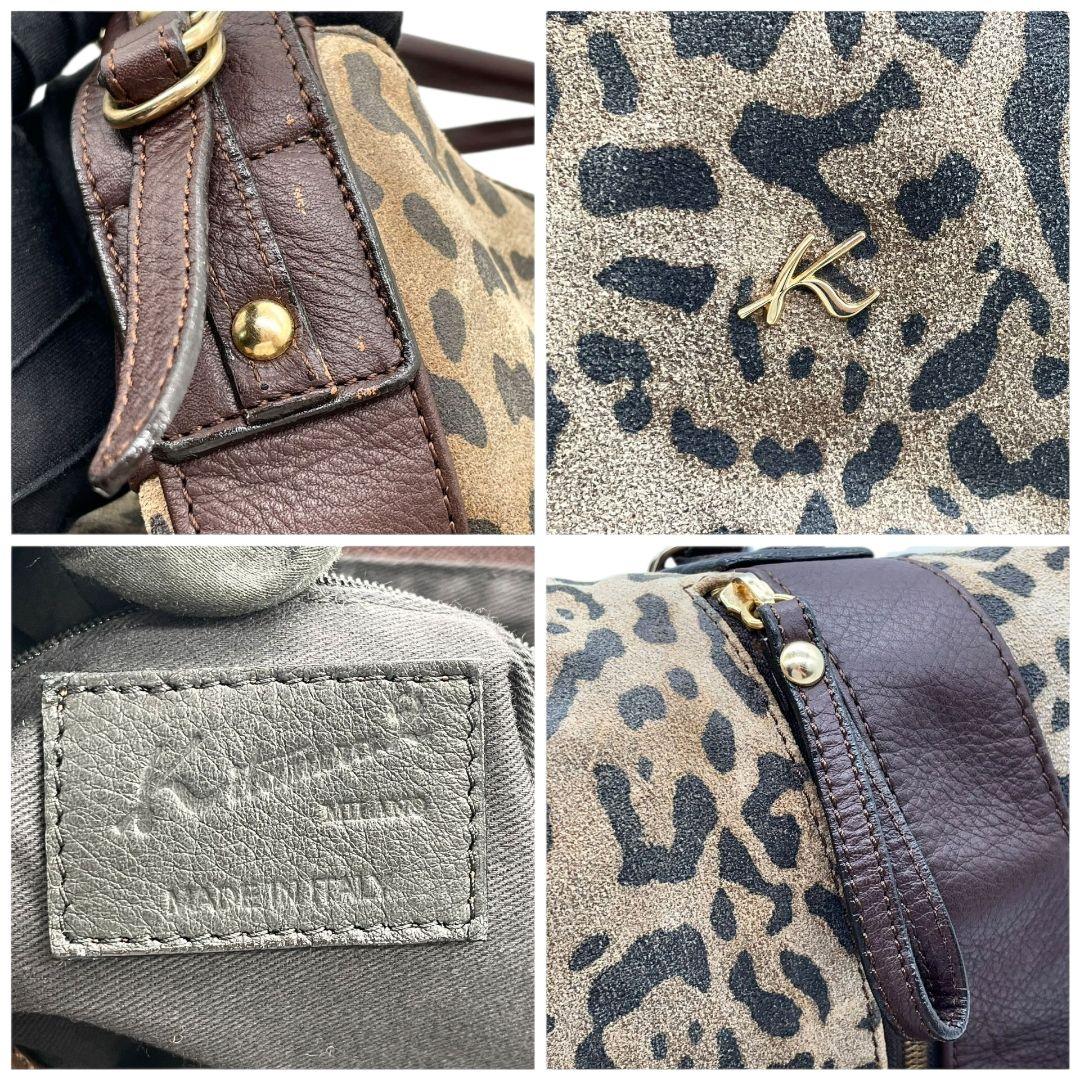 Kitamura キタムラ ハンドバッグ ブラウン 茶 ヒョウ柄 レオパード A4収納 トートバッグ ワンショル スエード レザー 本革 肩掛け可 ゴールド金具 ロゴ T7 上品 高級感