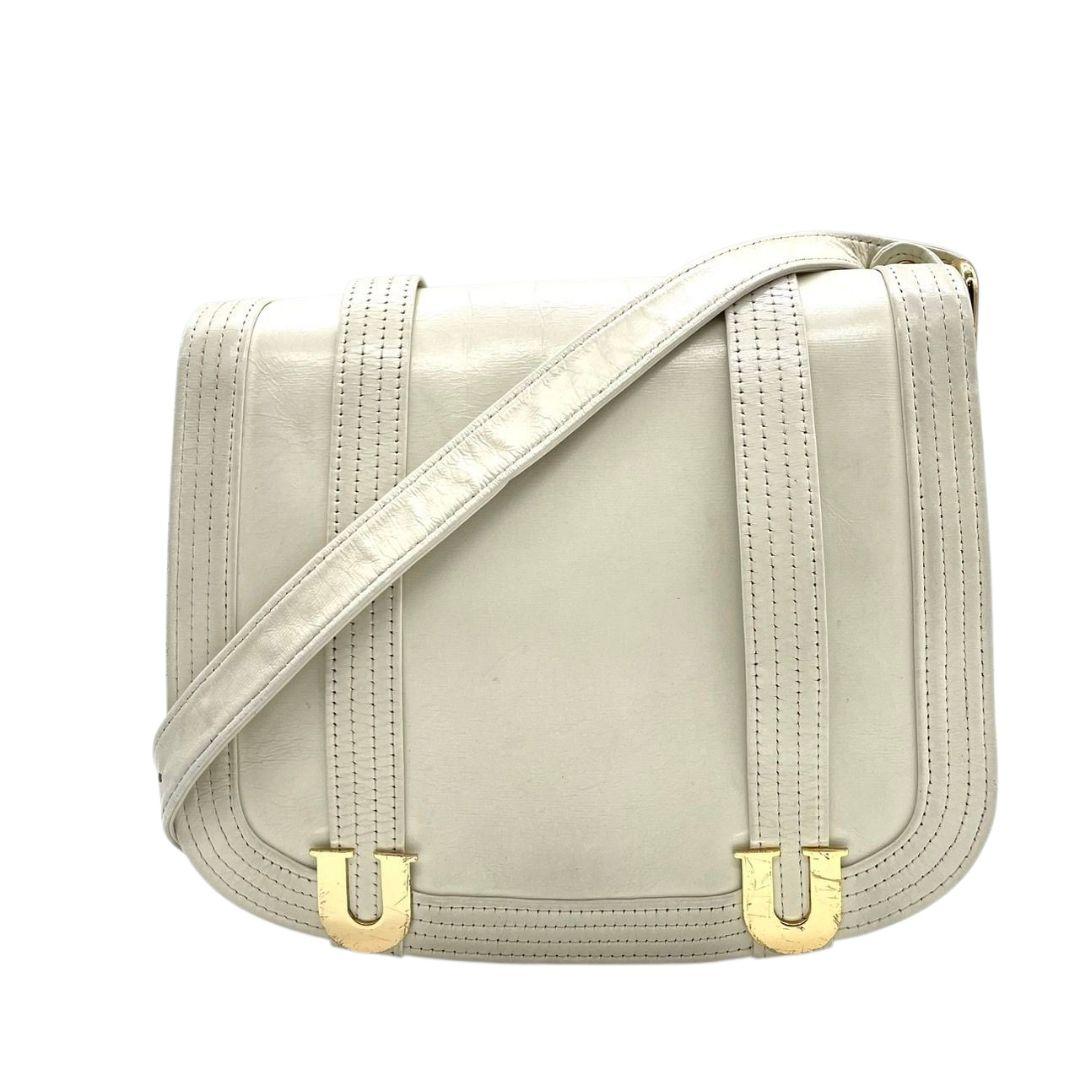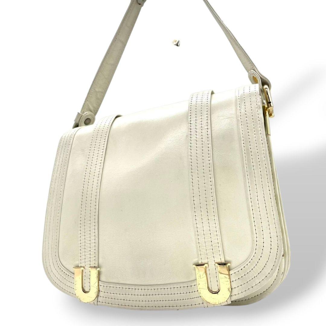 ウンガロ ショルダーバッグ 白 ホワイト アイボリー フラップ レザー 本革 ゴールド金具 ロゴ ungaro 上品 エレガント おしゃれ 斜め掛け可 通勤 通学