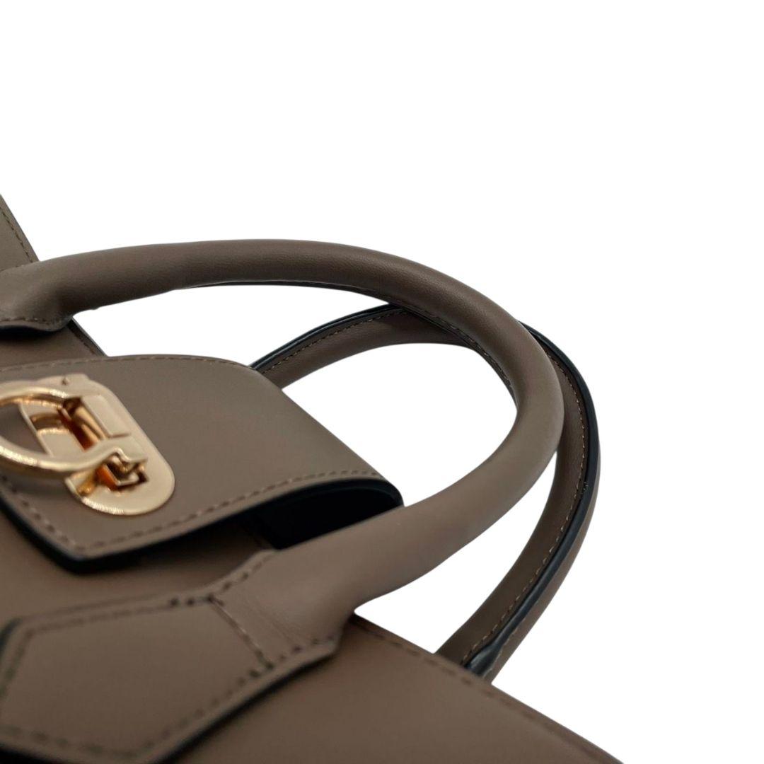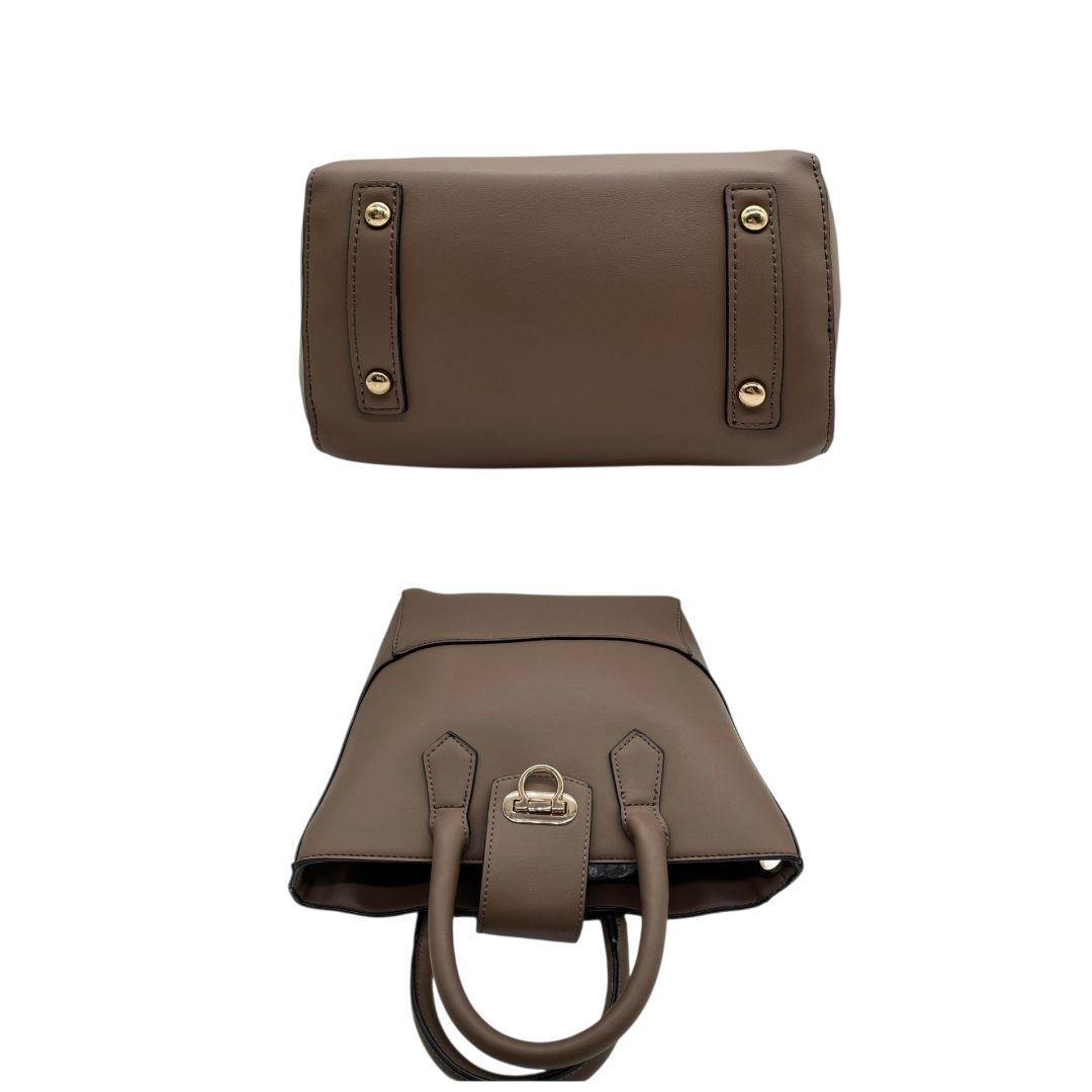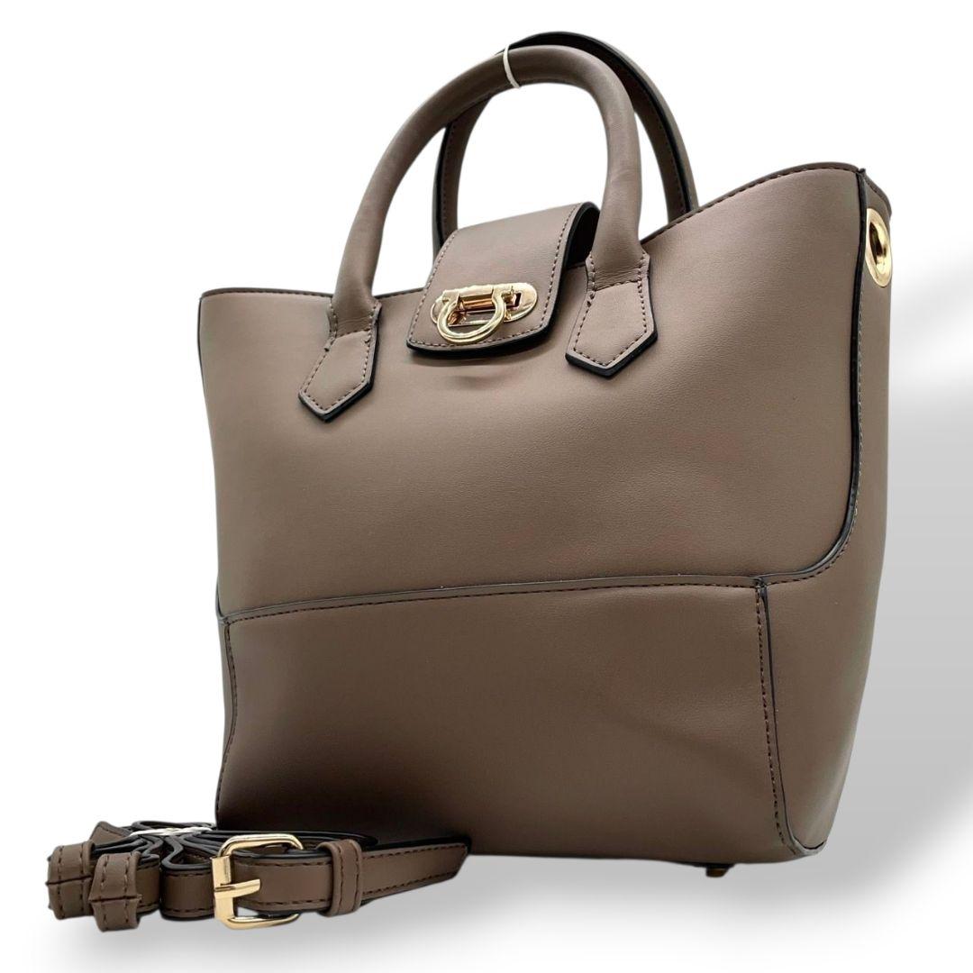 ノーブランド ハンドバッグ 茶 フラップ 2way レザー s69 ショルダーバッグ トートバッグ 斜め掛け可 本革 ゴールド金具 ターンロック ブラウン