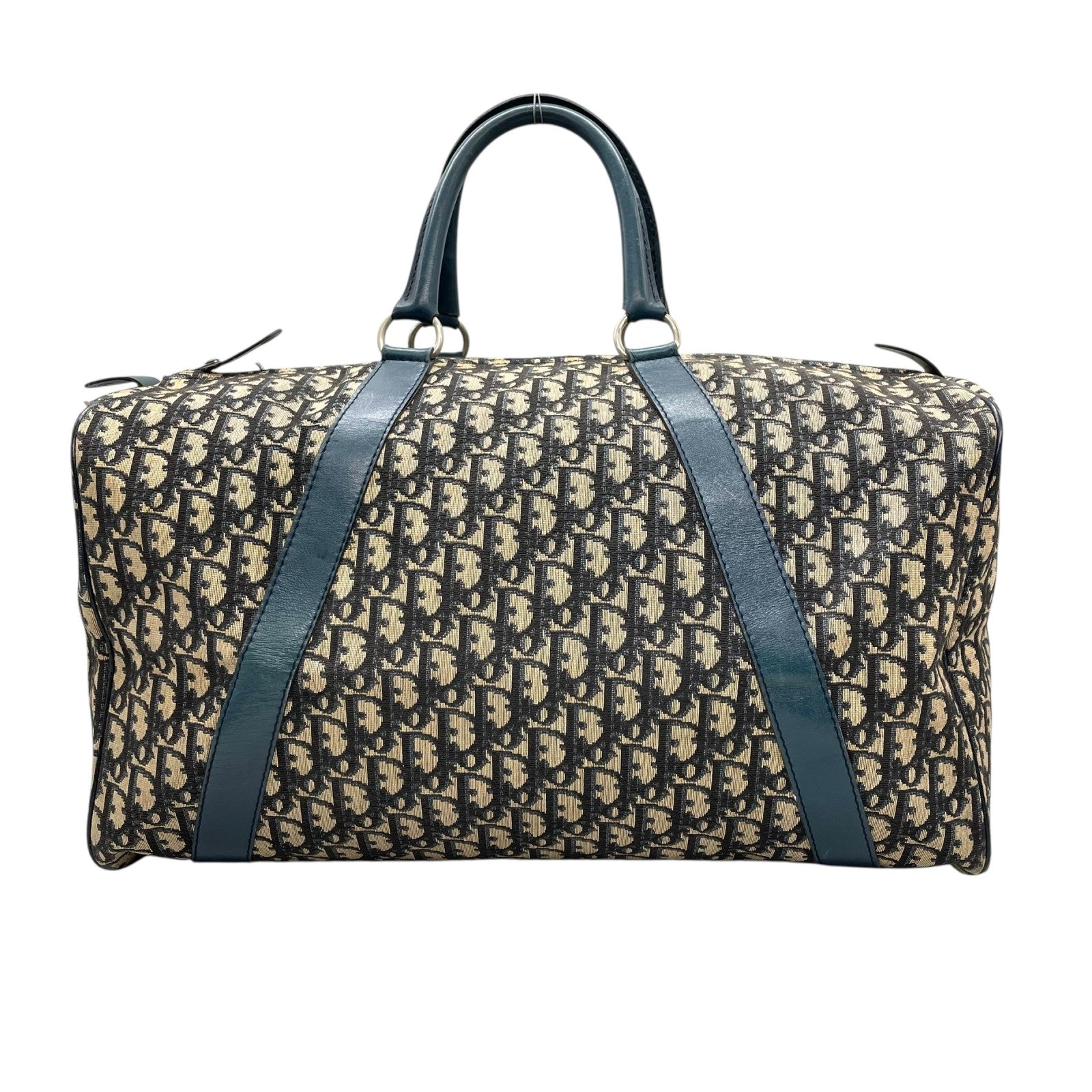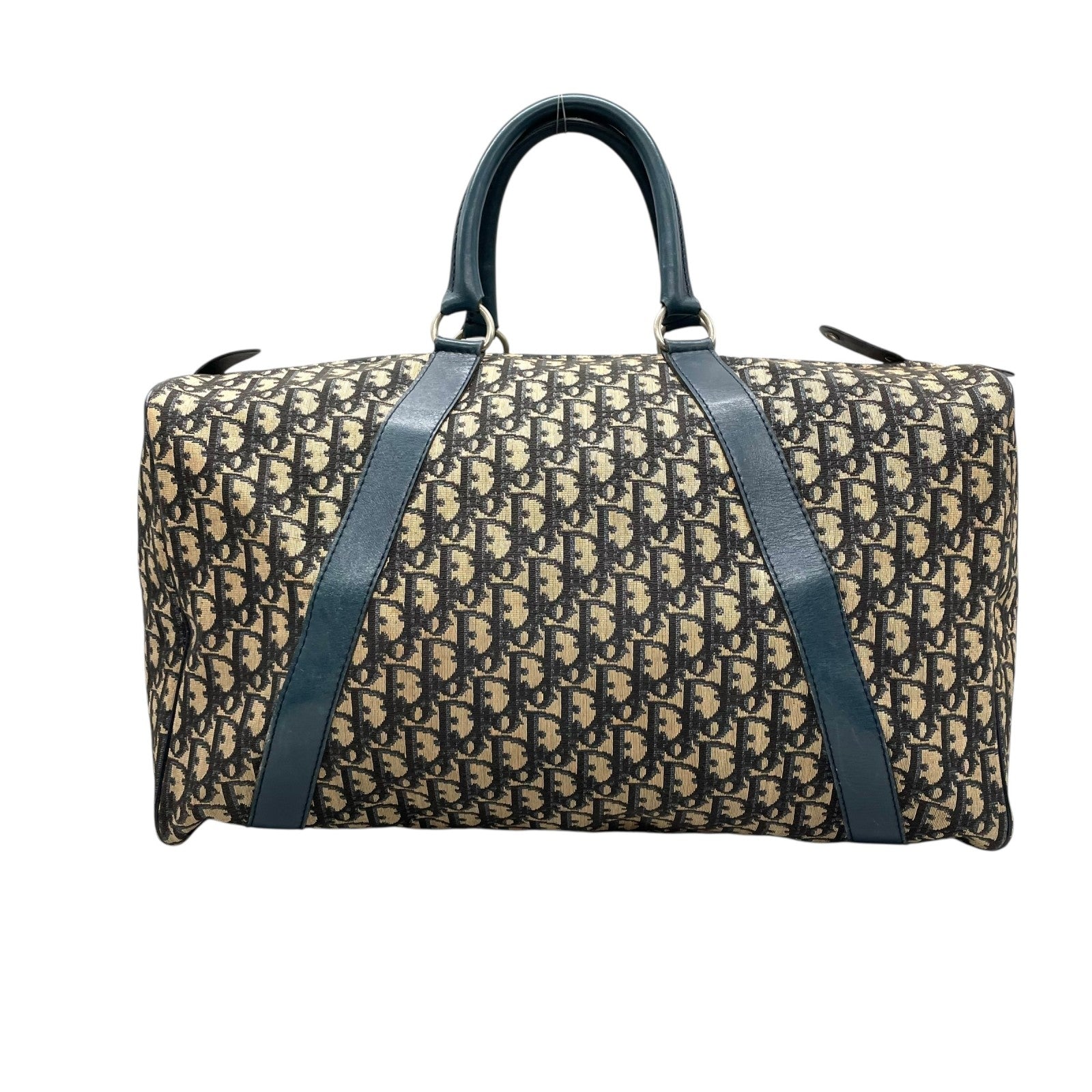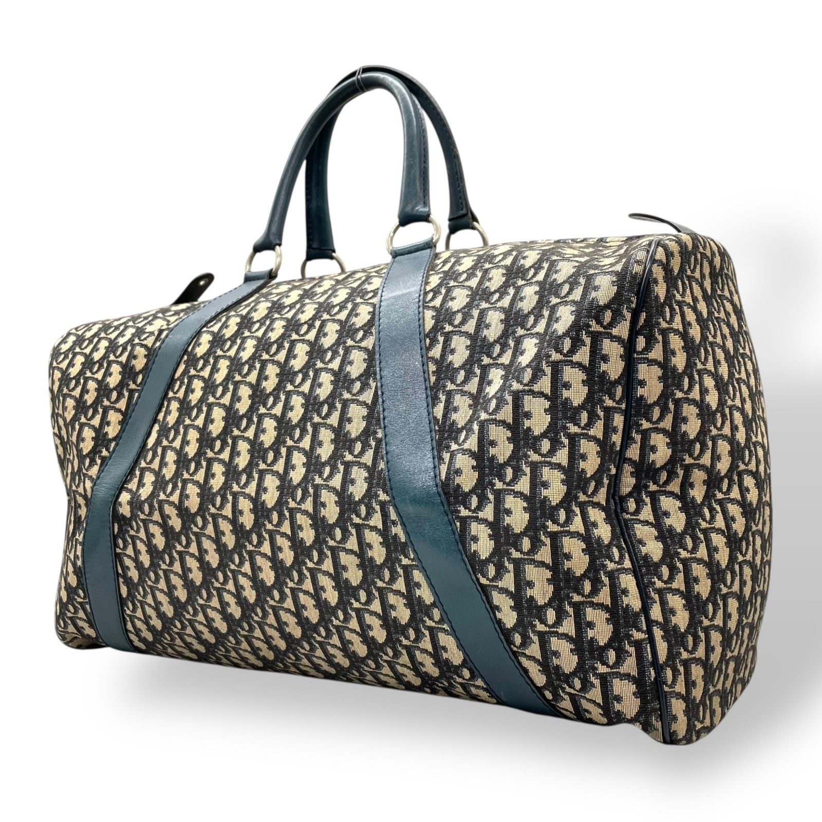 Christian Dior クリスチャンディオール トロッター ボストンバッグ 紺 ネイビー ベージュ キャンバス レザー シルバー金具 メンズ レディース ヴィンテージ Z4