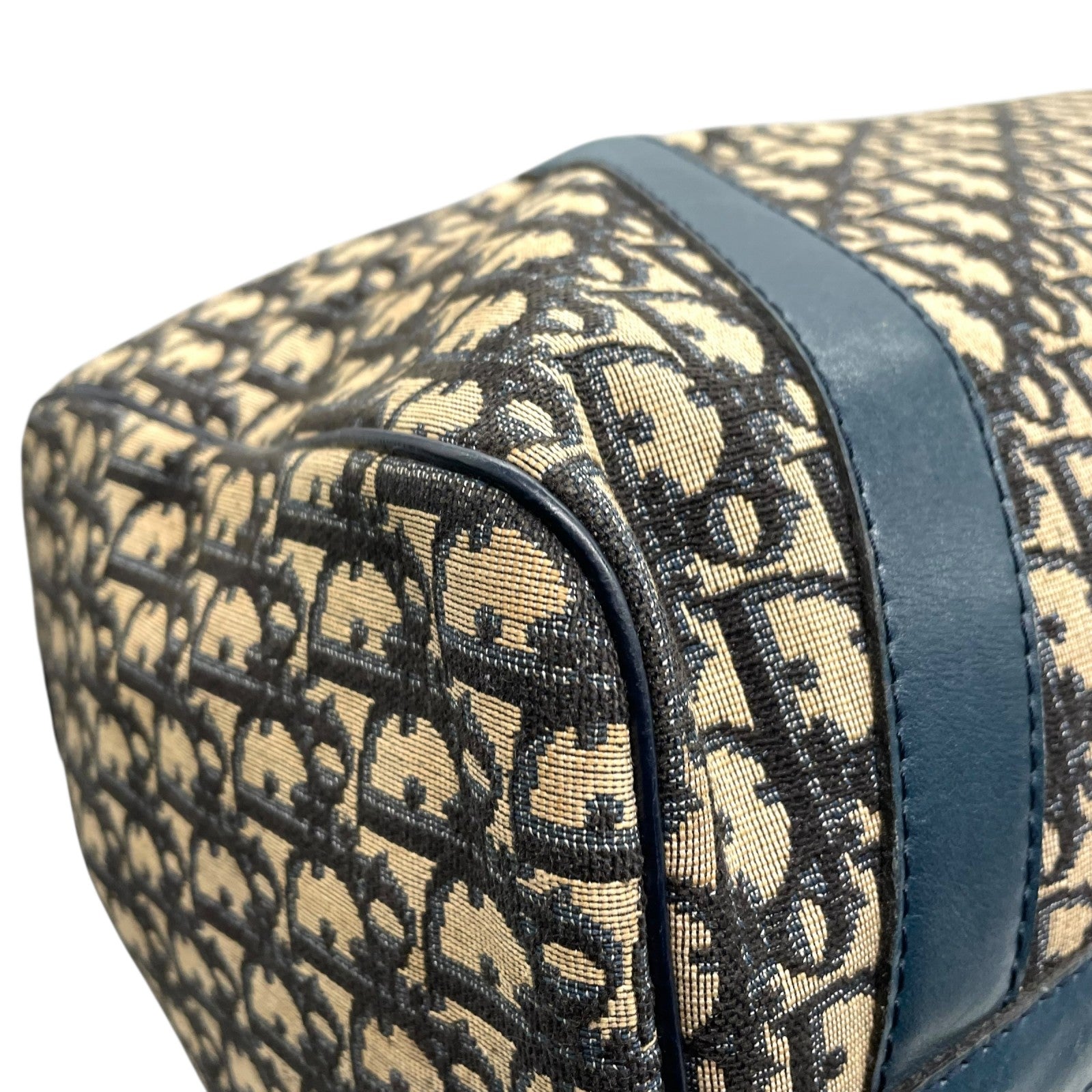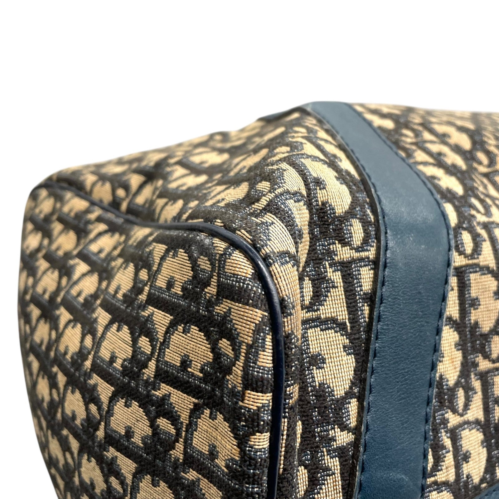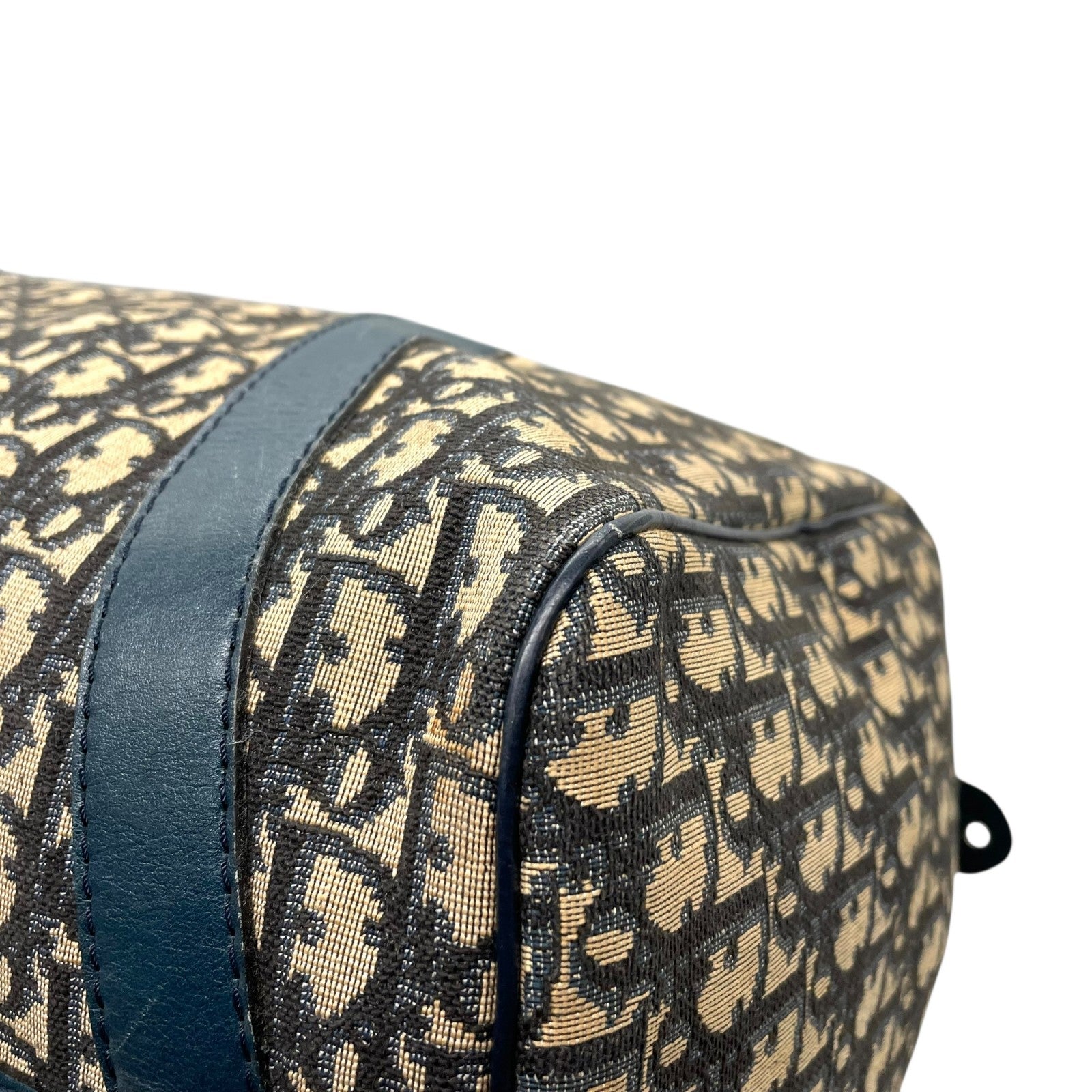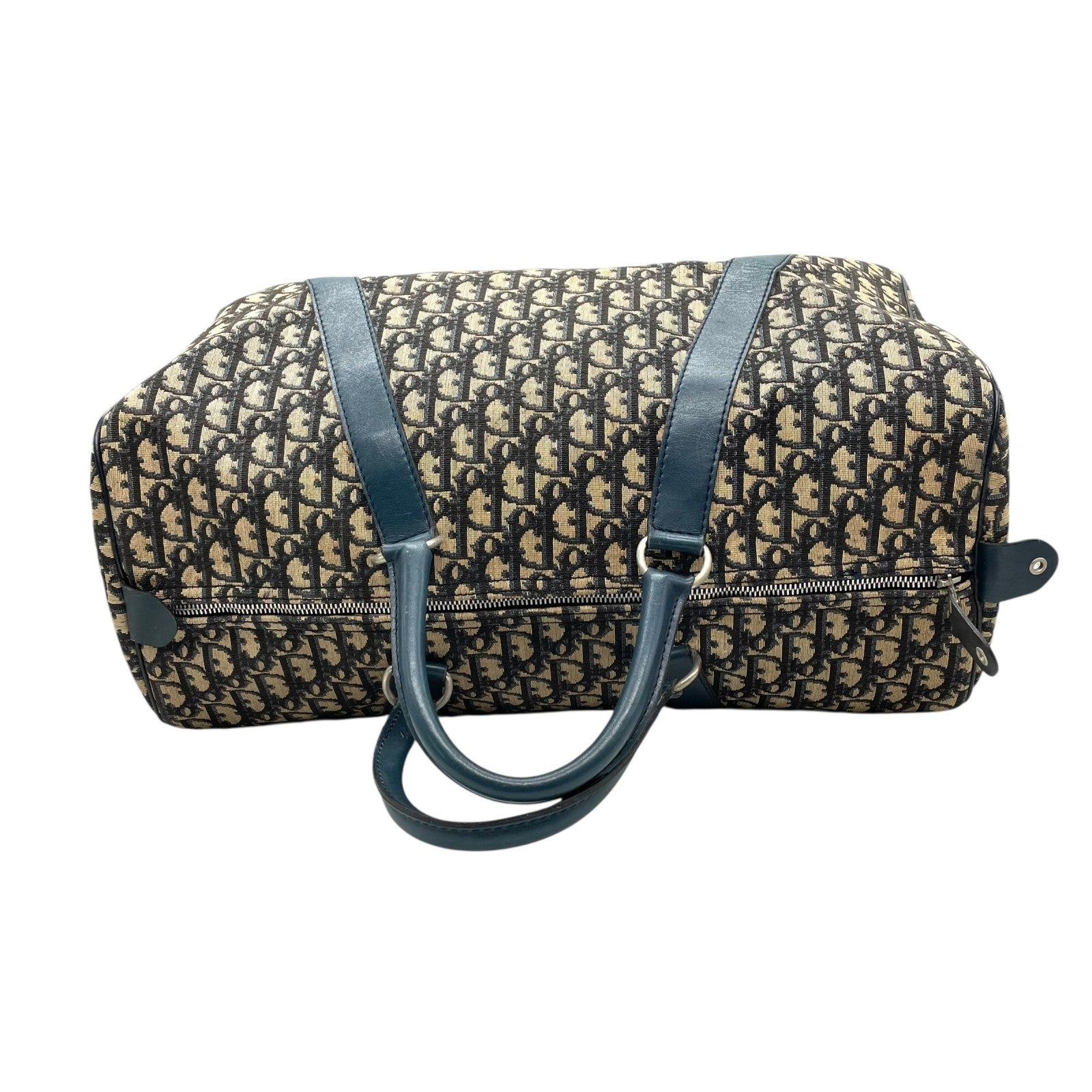 Christian Dior クリスチャンディオール トロッター ボストンバッグ 紺 ネイビー ベージュ キャンバス レザー シルバー金具 メンズ レディース ヴィンテージ Z4
