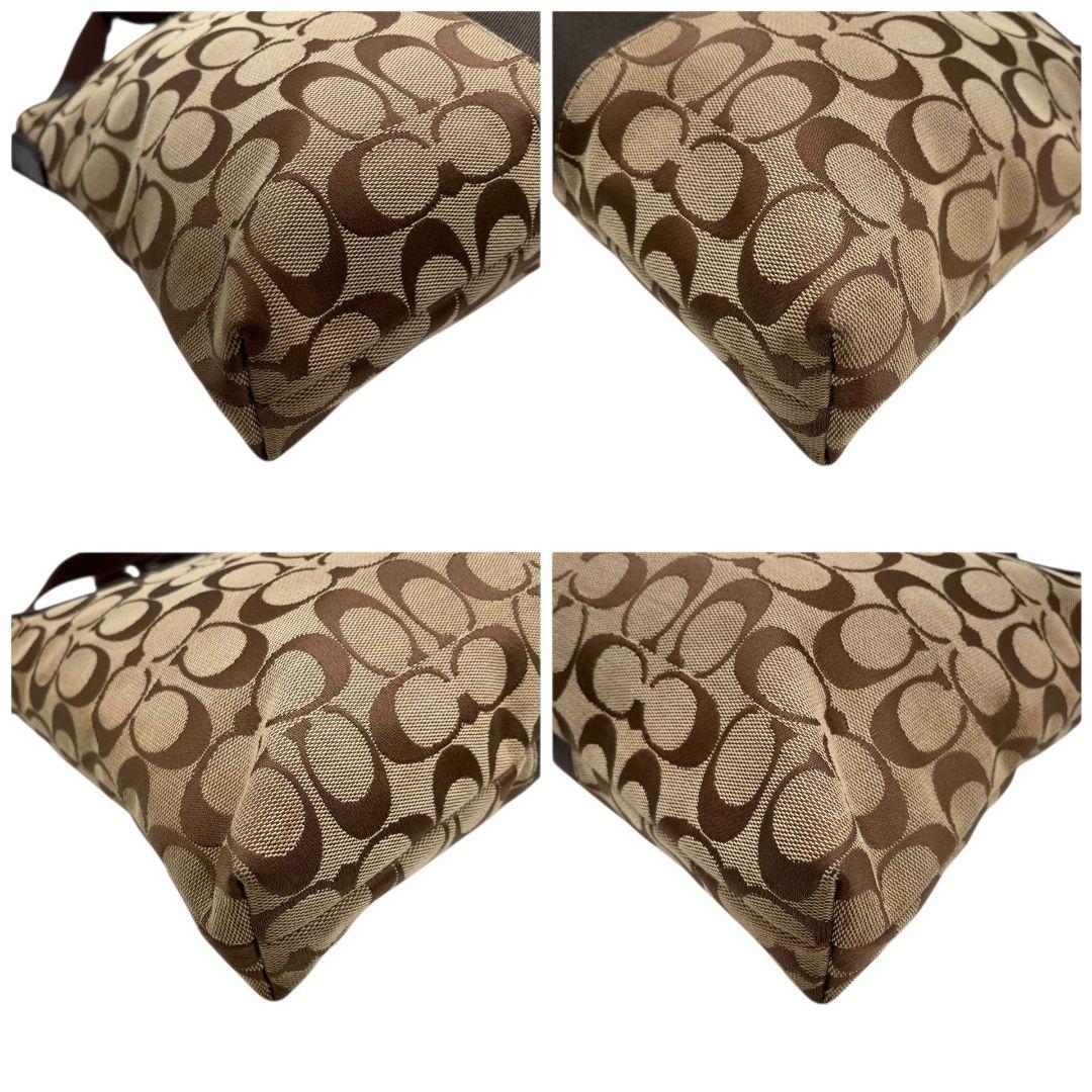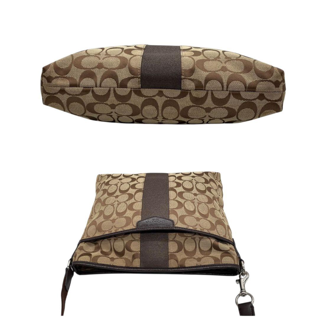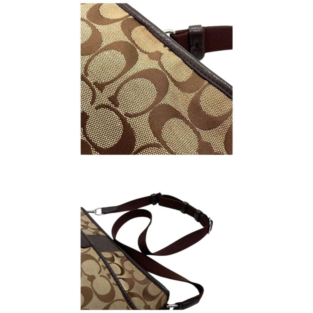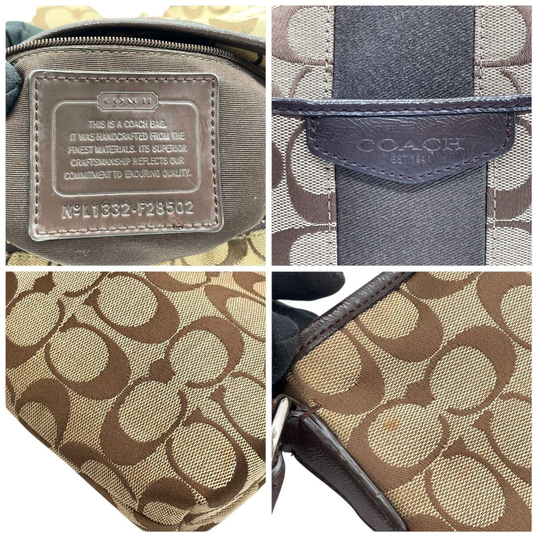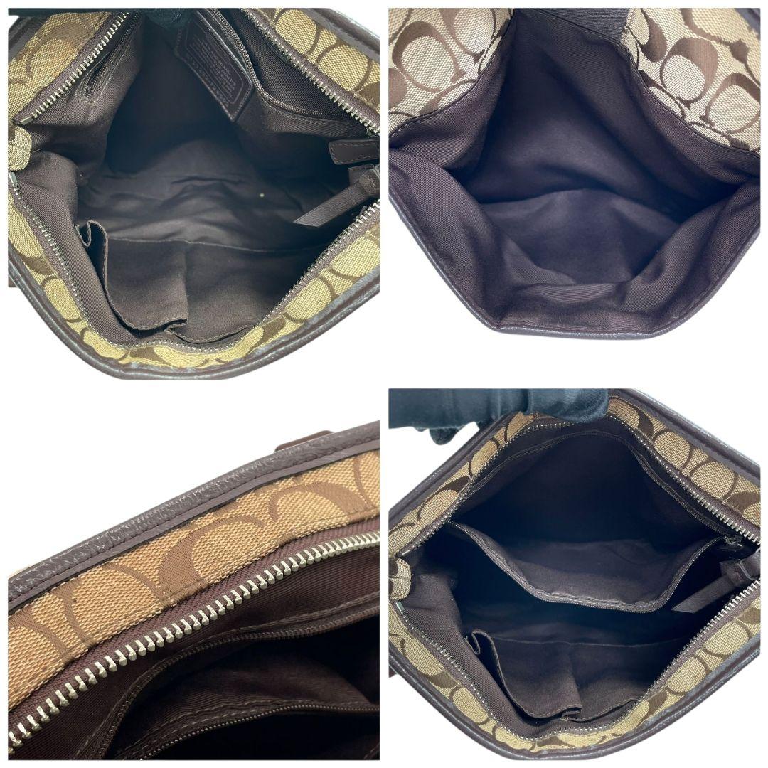 コーチ ショルダーバッグ 茶 シグネチャー 斜め掛け可 A4収納 T7 COACH キャンバス レザー 本革 シルバー金具 F28502 ブラウン