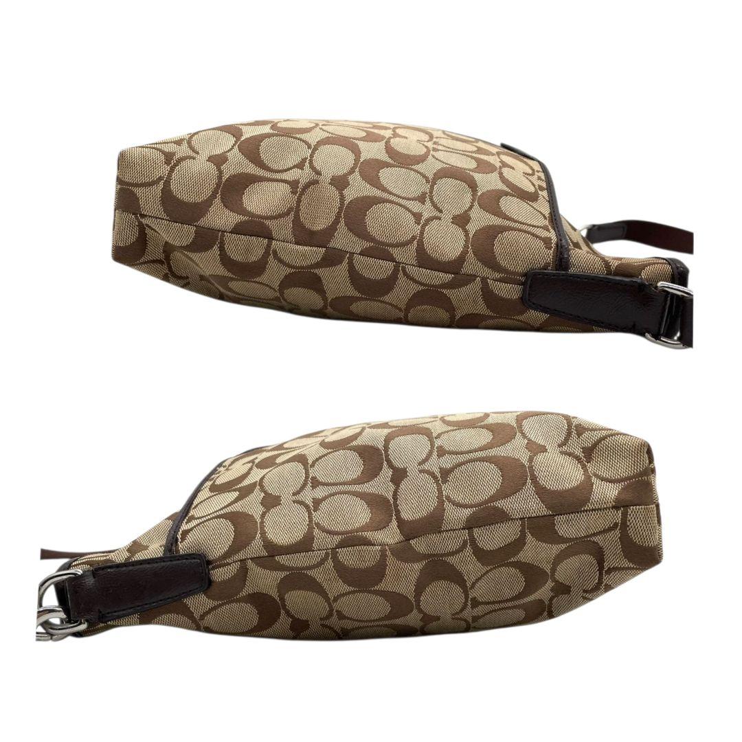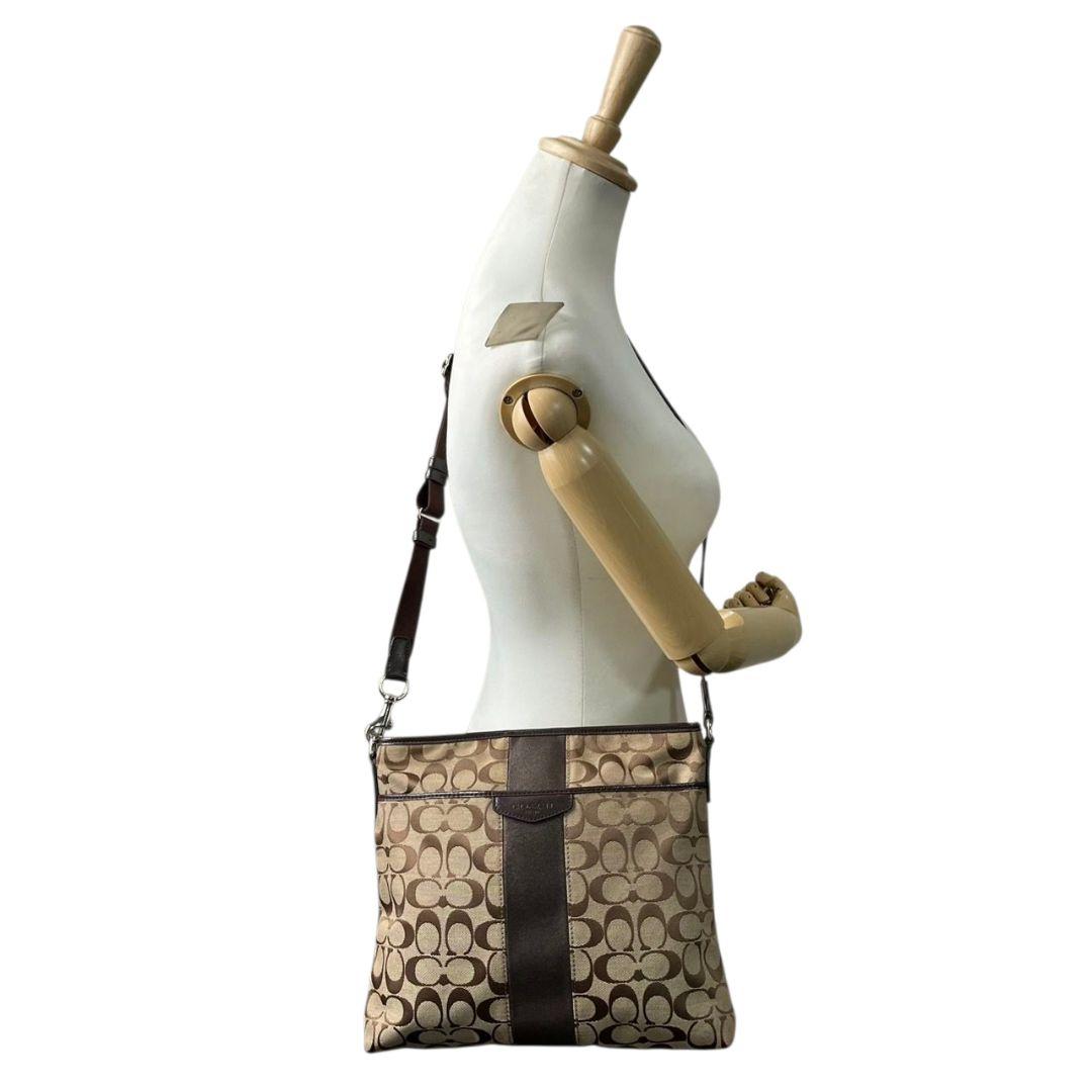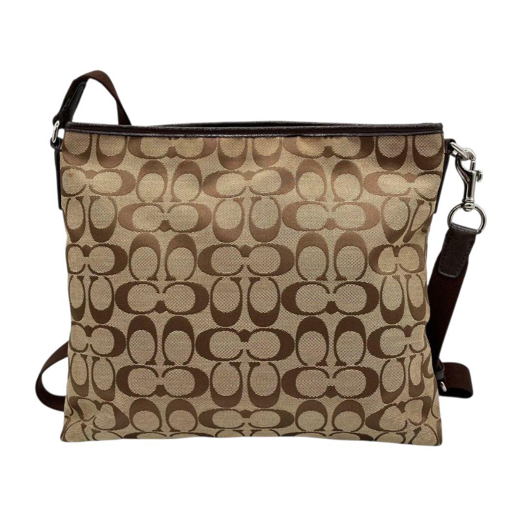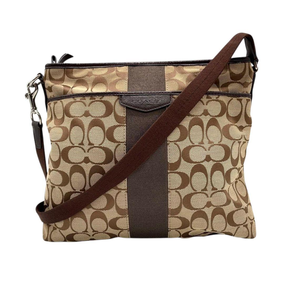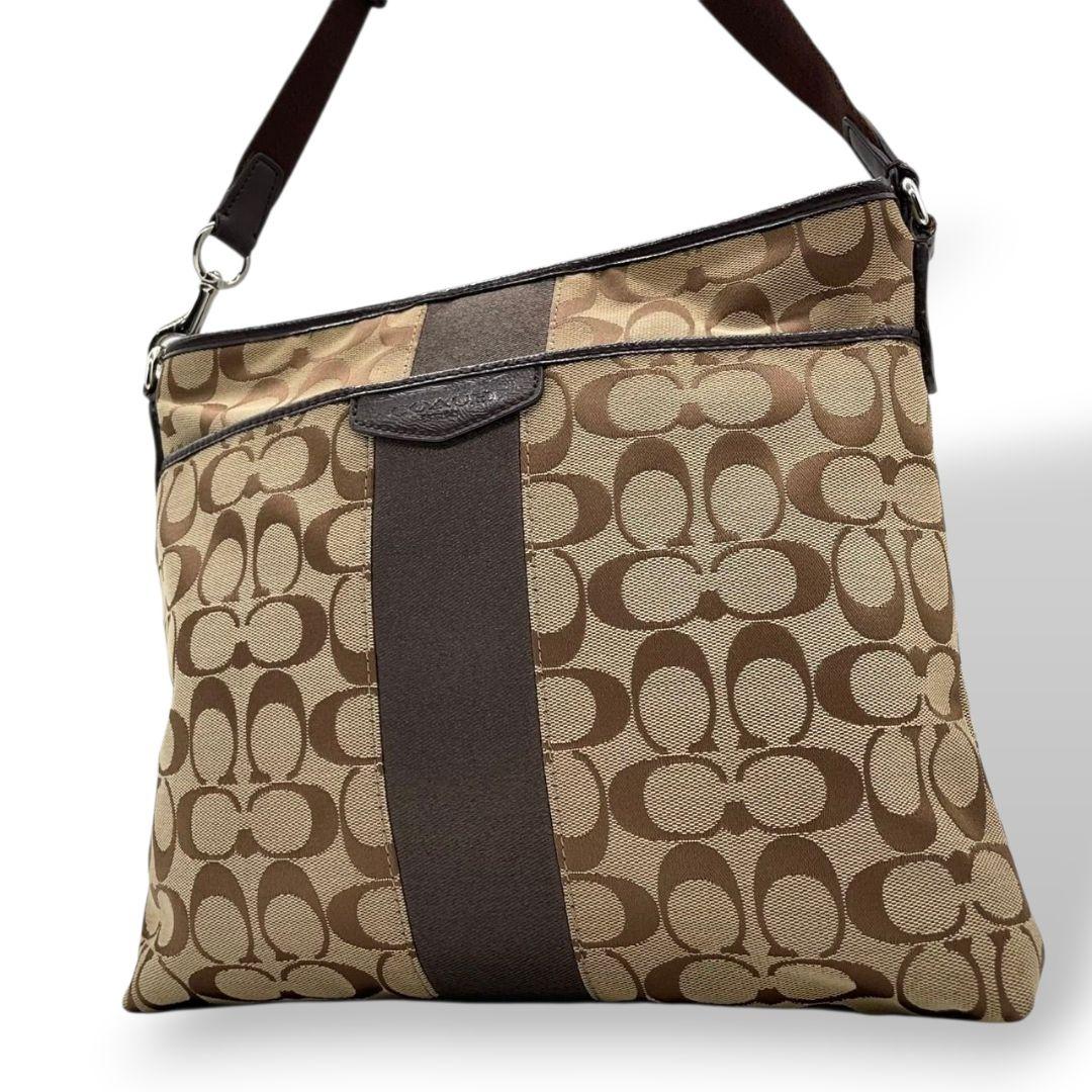 コーチ ショルダーバッグ 茶 シグネチャー 斜め掛け可 A4収納 T7 COACH キャンバス レザー 本革 シルバー金具 F28502 ブラウン