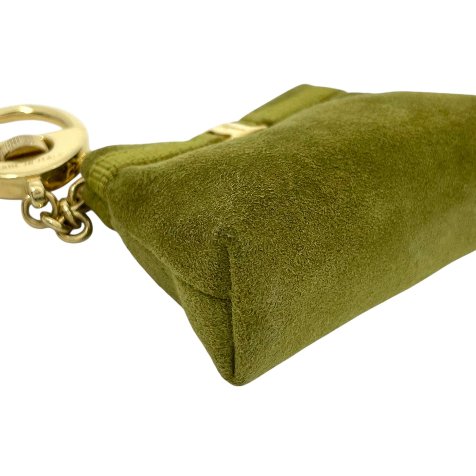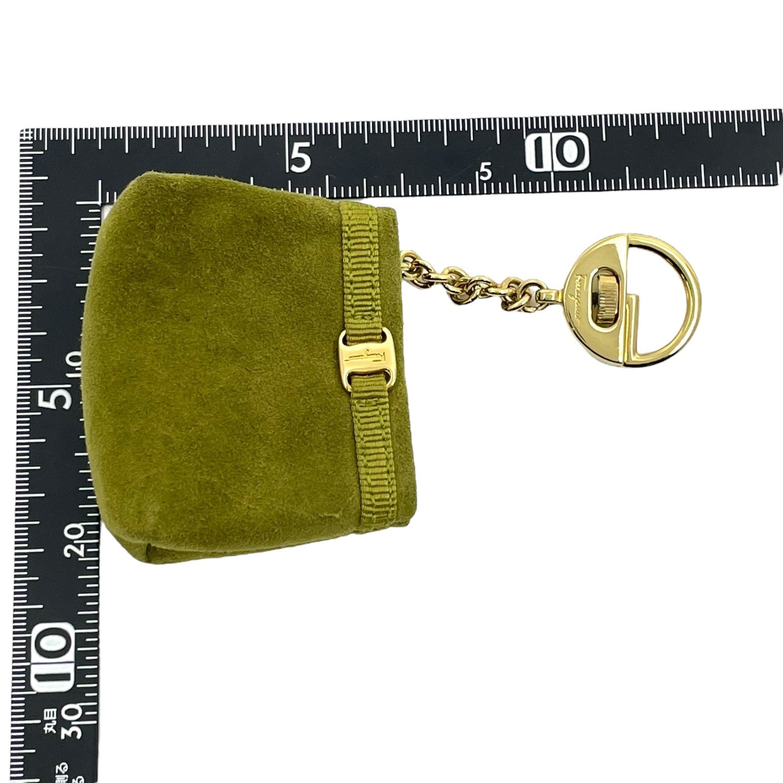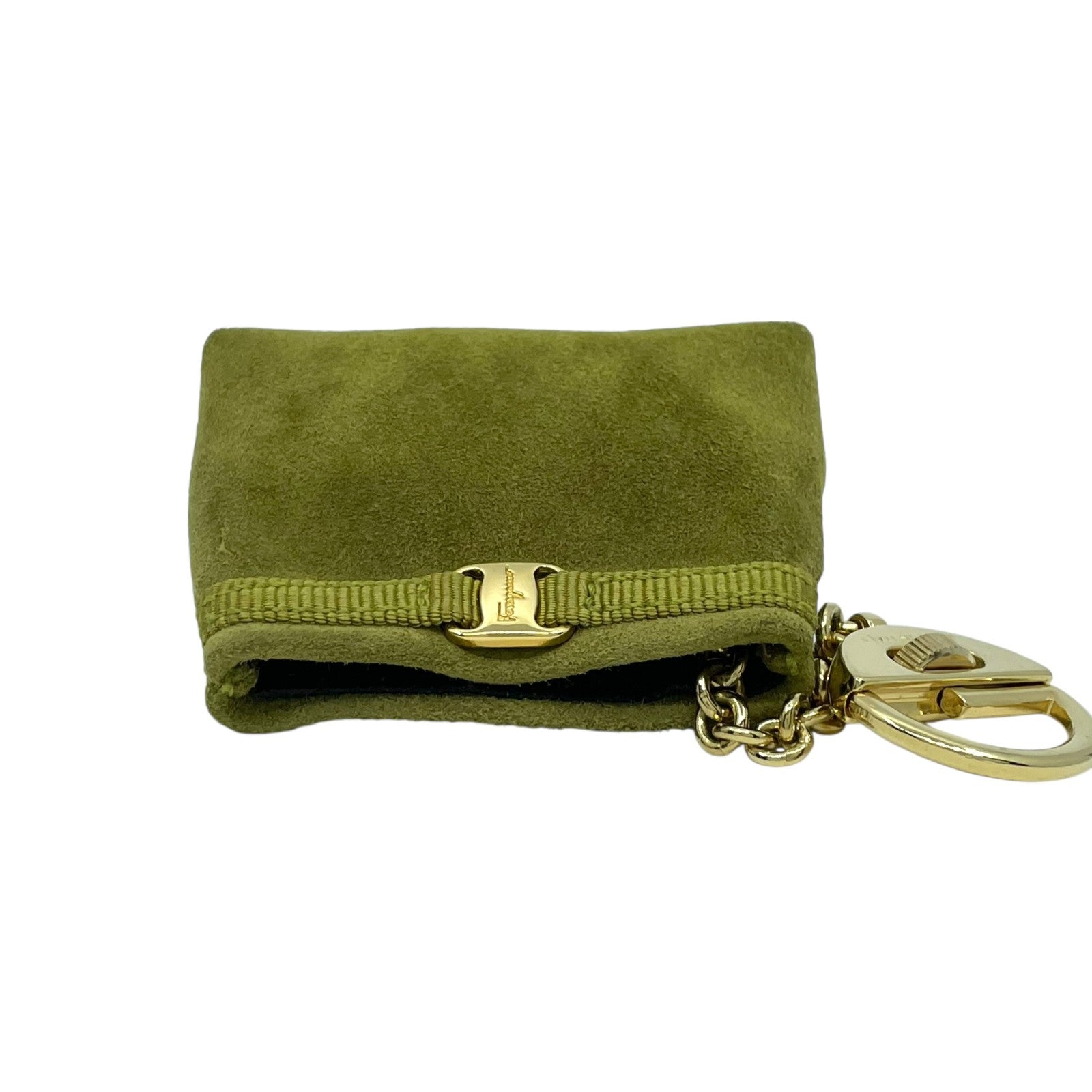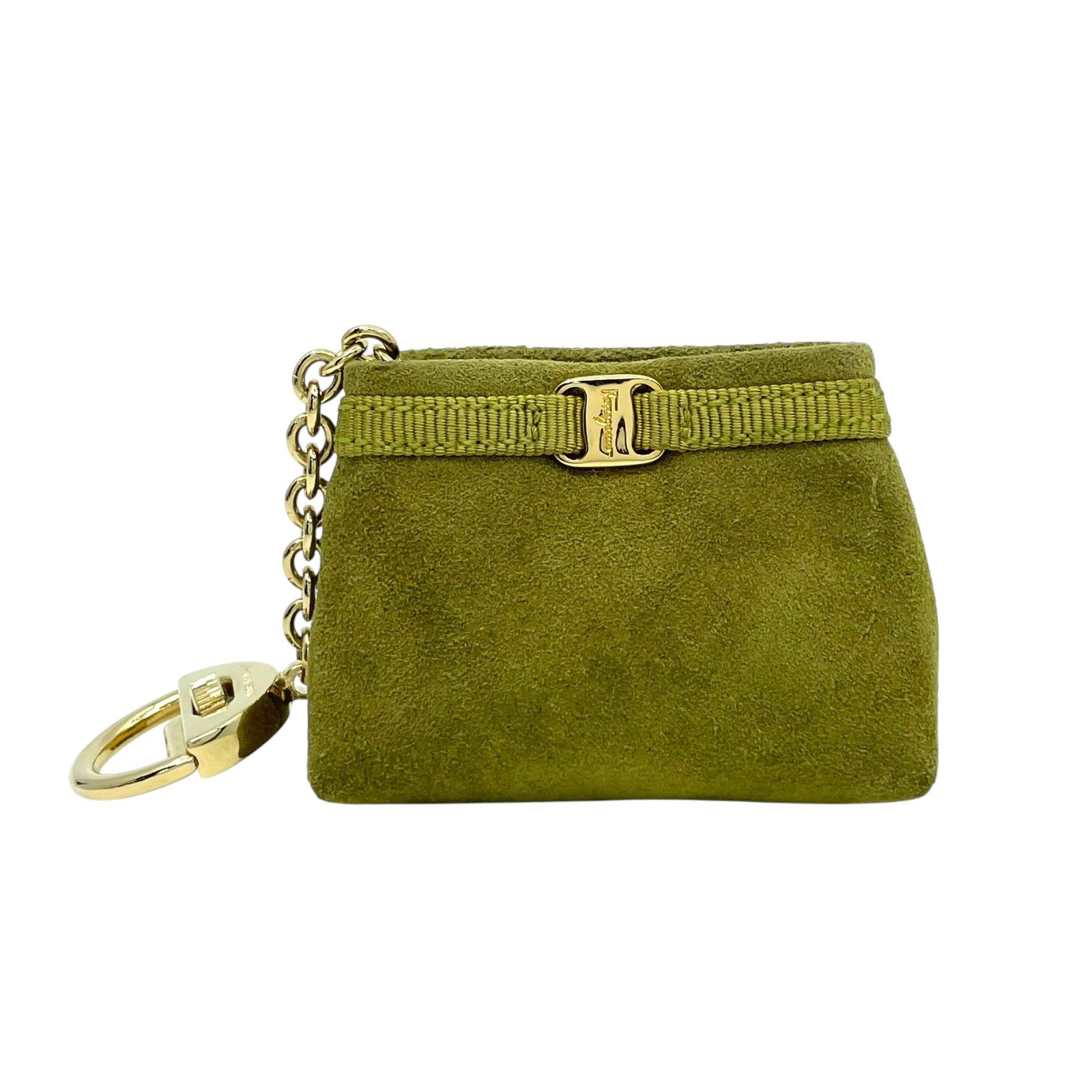 サルヴァトーレフェラガモ Ferragamo ヴァラリボン バッグチャーム キーホルダー コインケース 小物入れ スエード 緑 グリーン ゴールド金具 ボックス付 M3