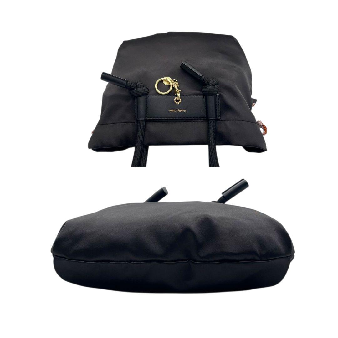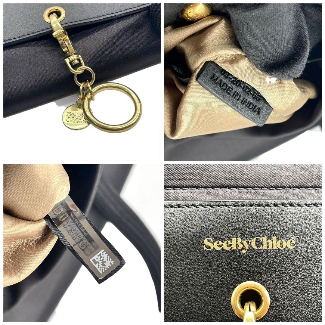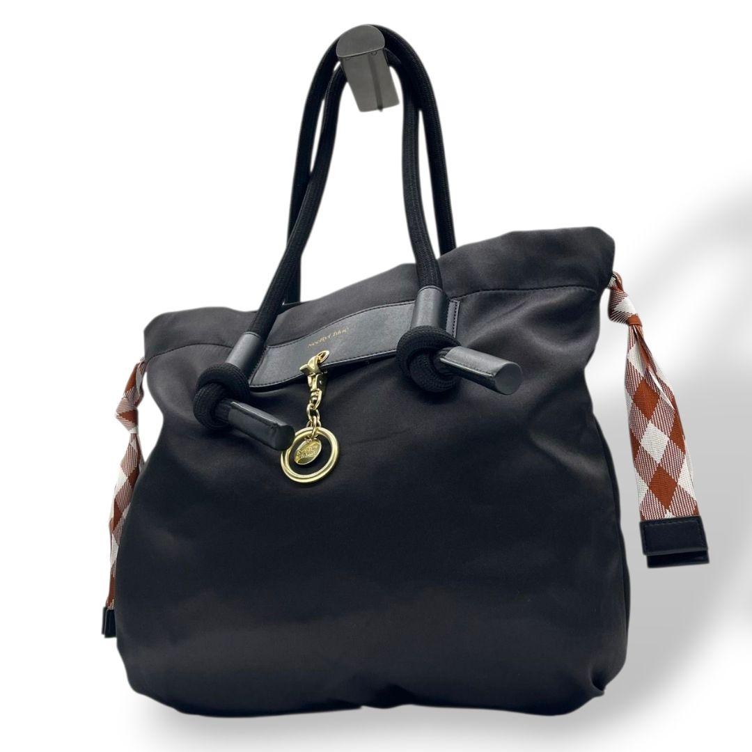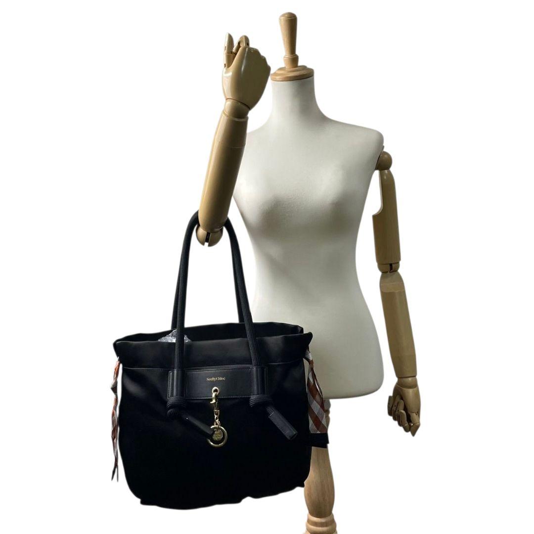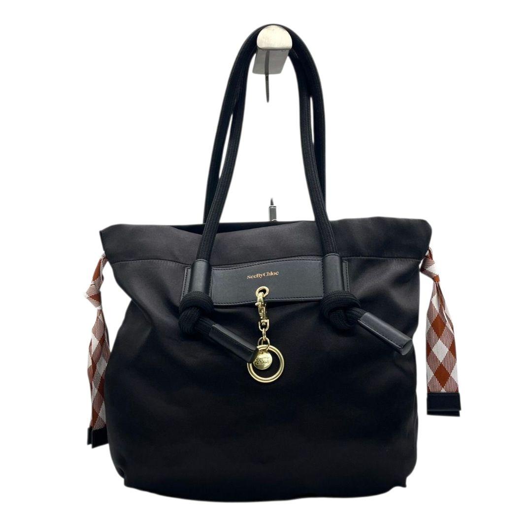 シーバイクロエ トートバッグ 黒 ロゴ チャーム キャンバス ワンショルダー u17 A4収納 ハンドバッグ 肩掛け可 肩かけ可 ブラック ゴールド金具 スカーフ レザー SeeByChloe