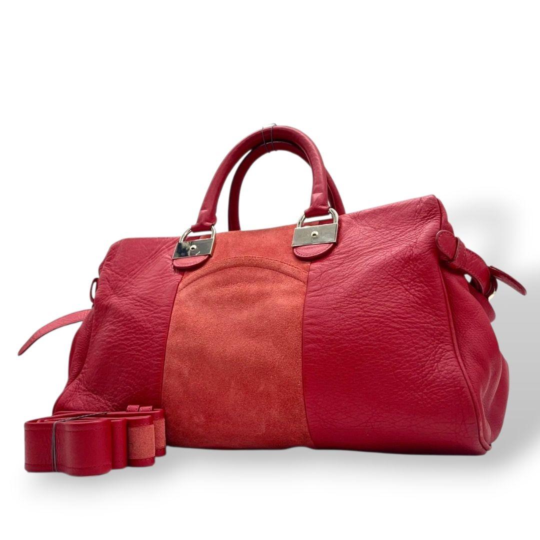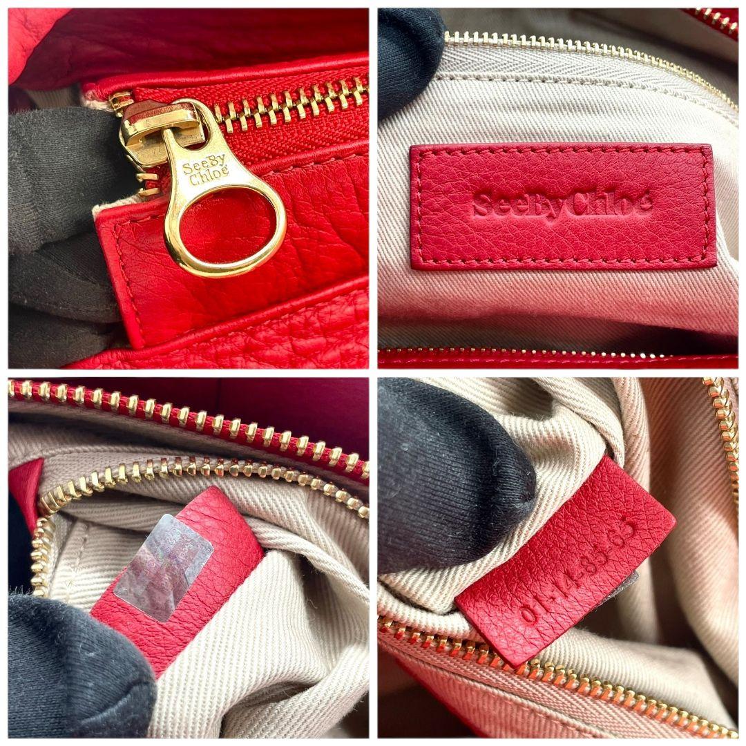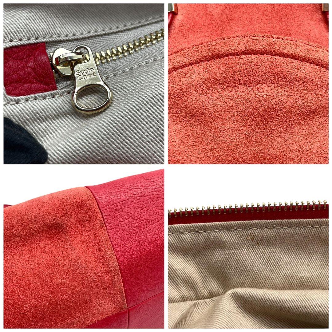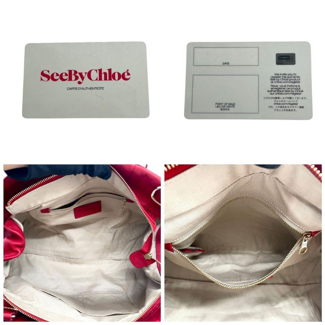 シーバイクロエ ハンドバッグ 赤 2way スエード レザー 自立可 u7 ショルダーバッグ トートバッグ ボストンバッグ 本革 レッド シルバー金具 SeeByChloe カード付き