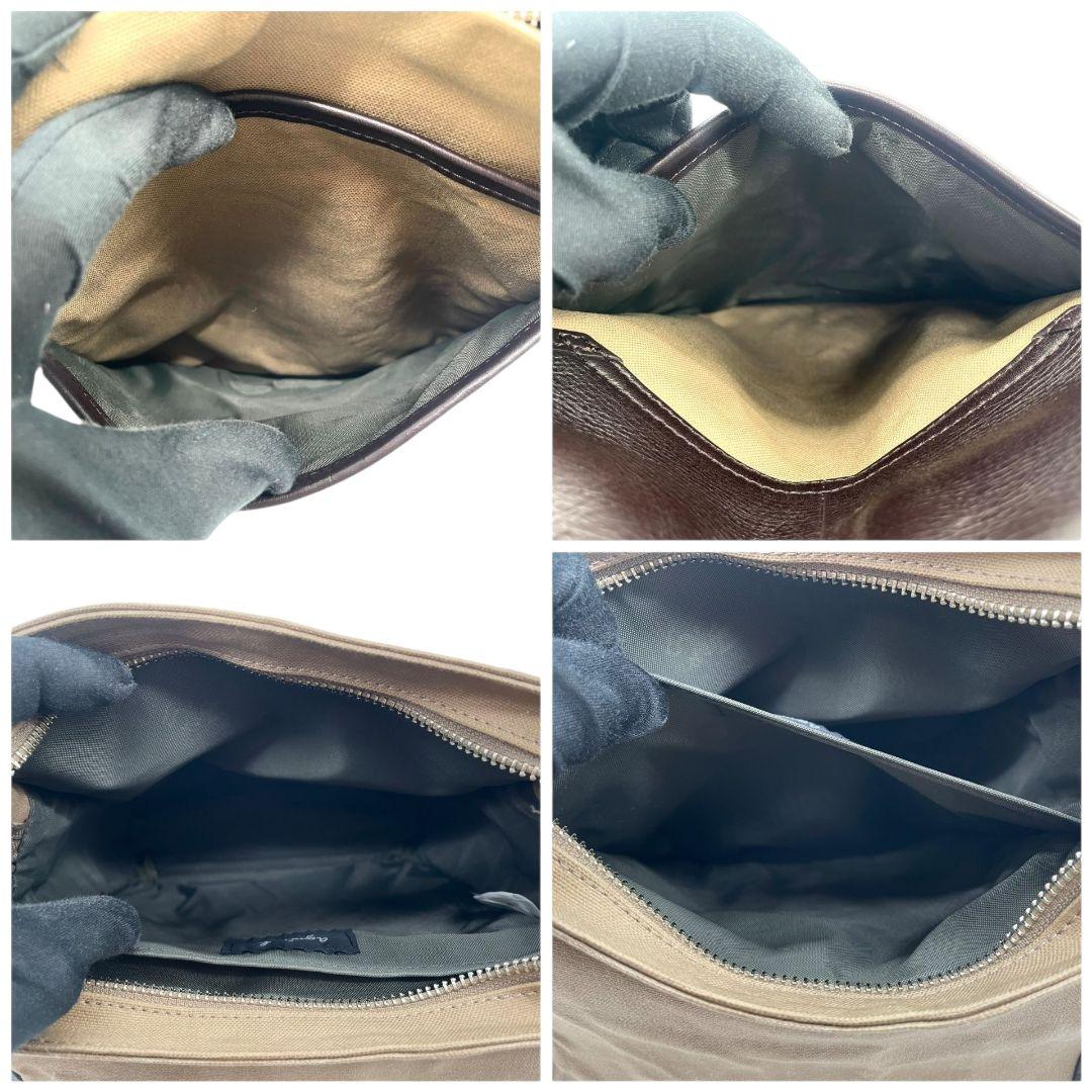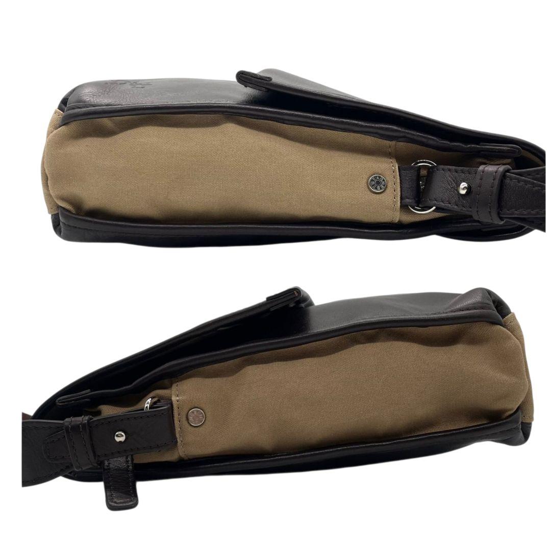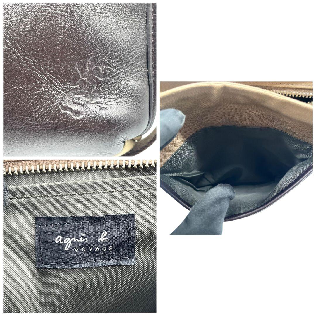 美品 アニエスベー ショルダーバッグ 茶 ブラウン ベージュ バイカラー フラップ レザー 本革 キャンバス 斜め掛け可 シルバー金具 ロゴ s20