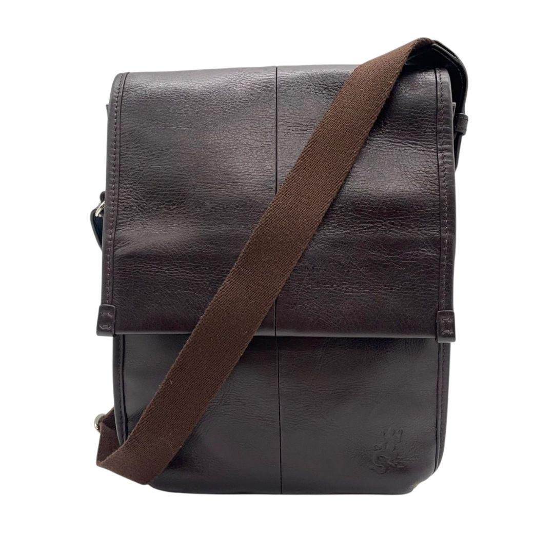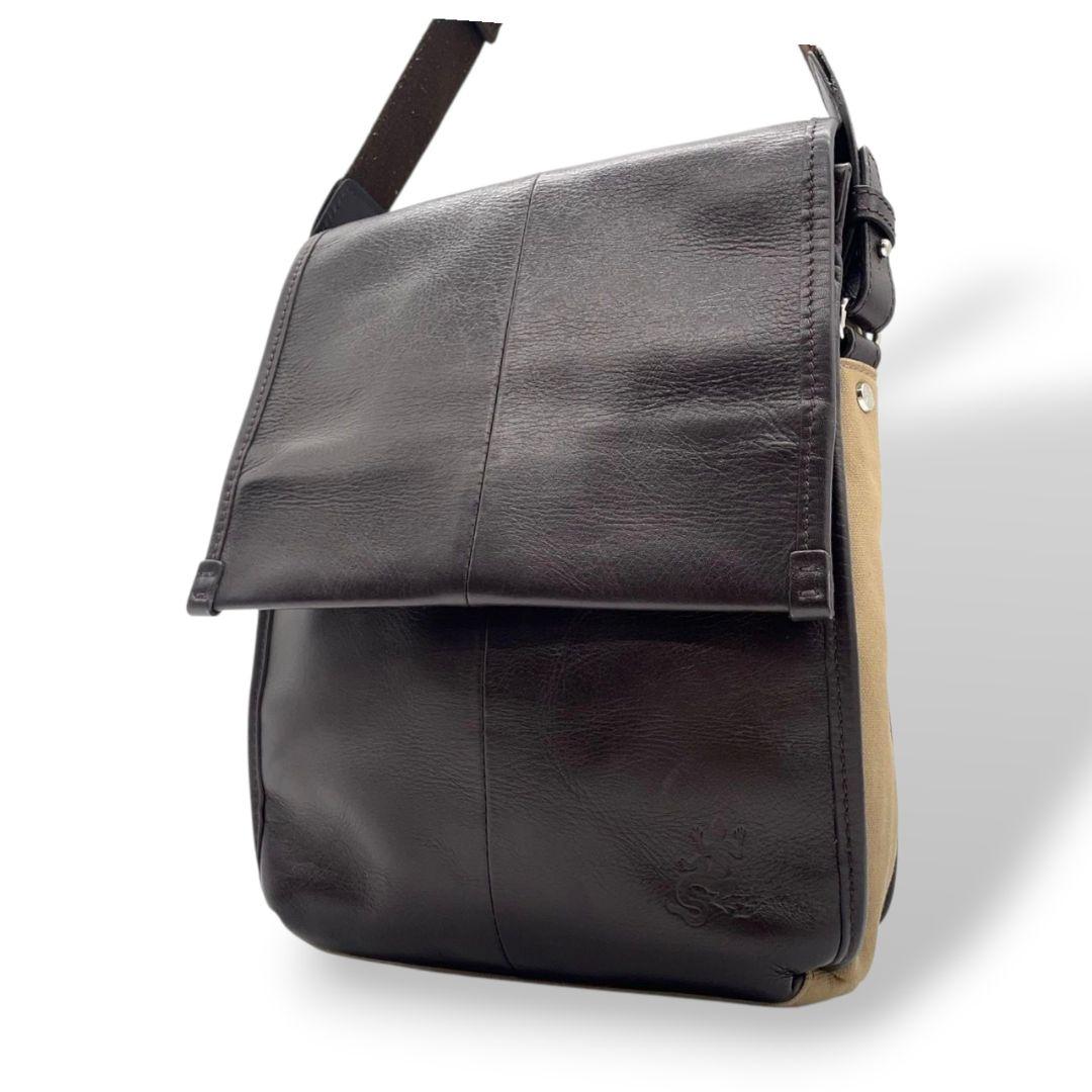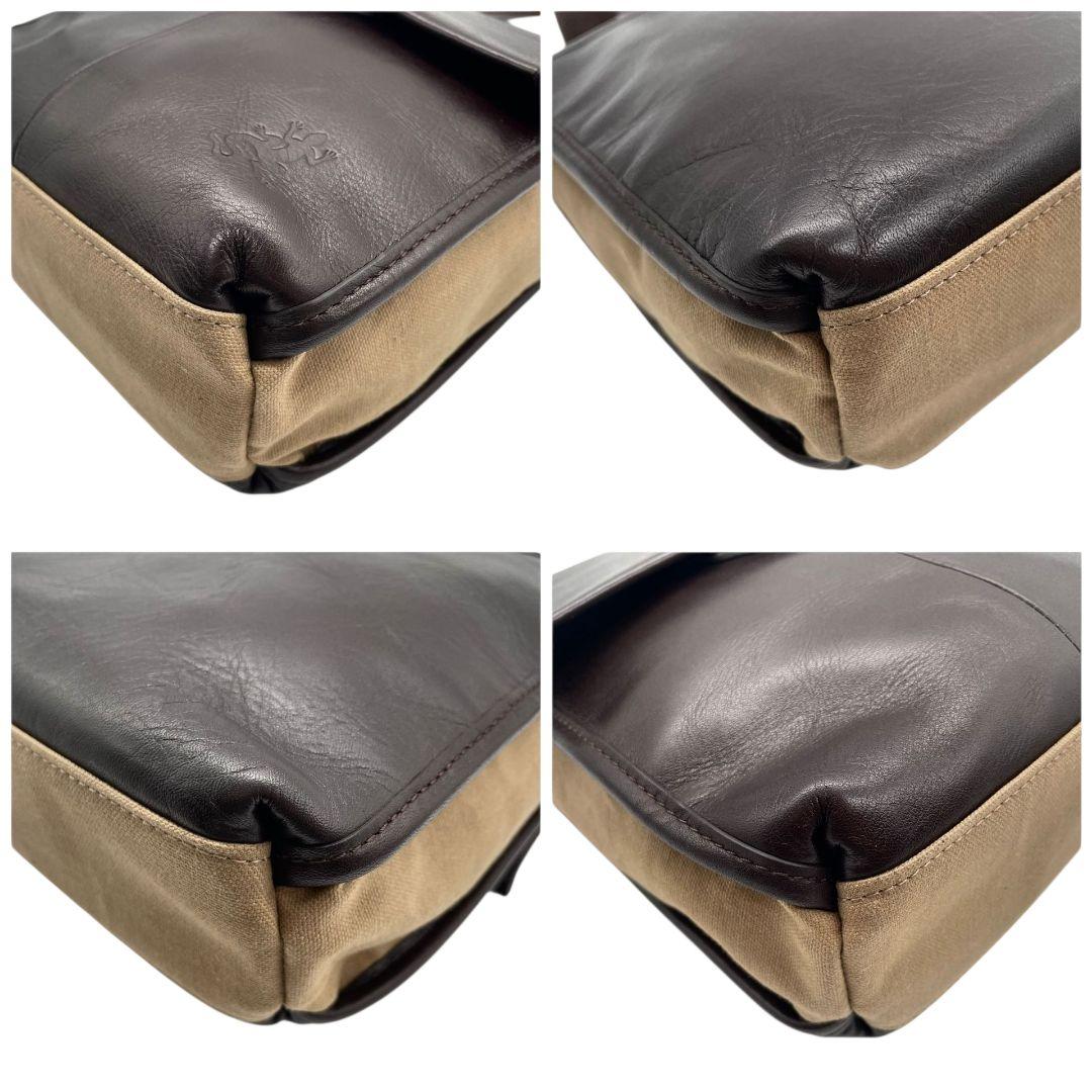 美品 アニエスベー ショルダーバッグ 茶 ブラウン ベージュ バイカラー フラップ レザー 本革 キャンバス 斜め掛け可 シルバー金具 ロゴ s20