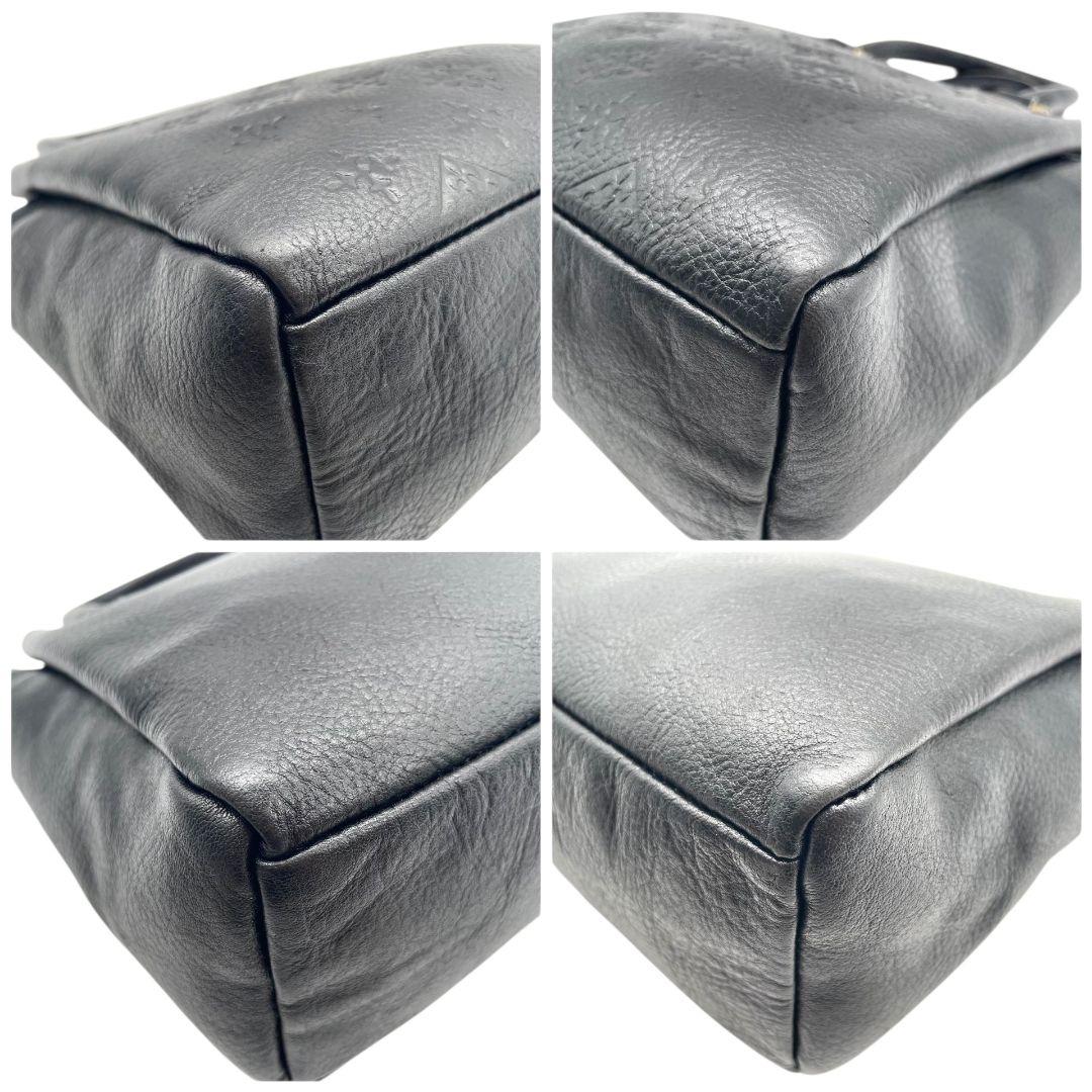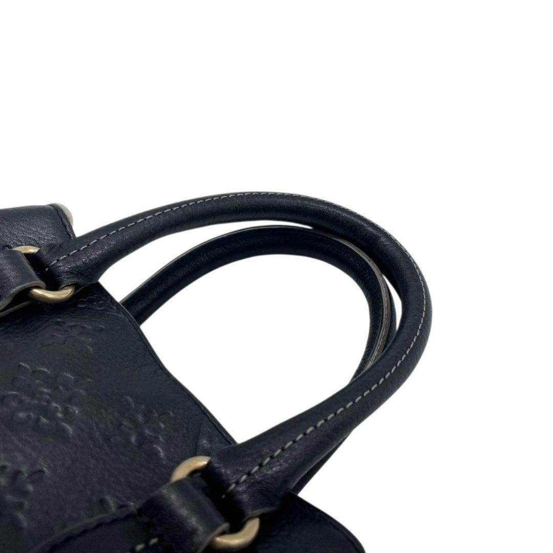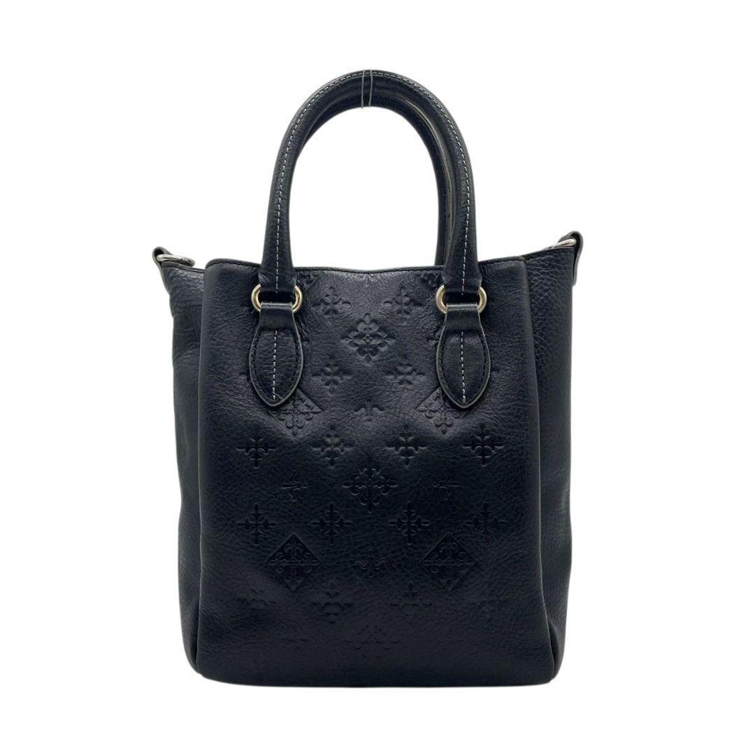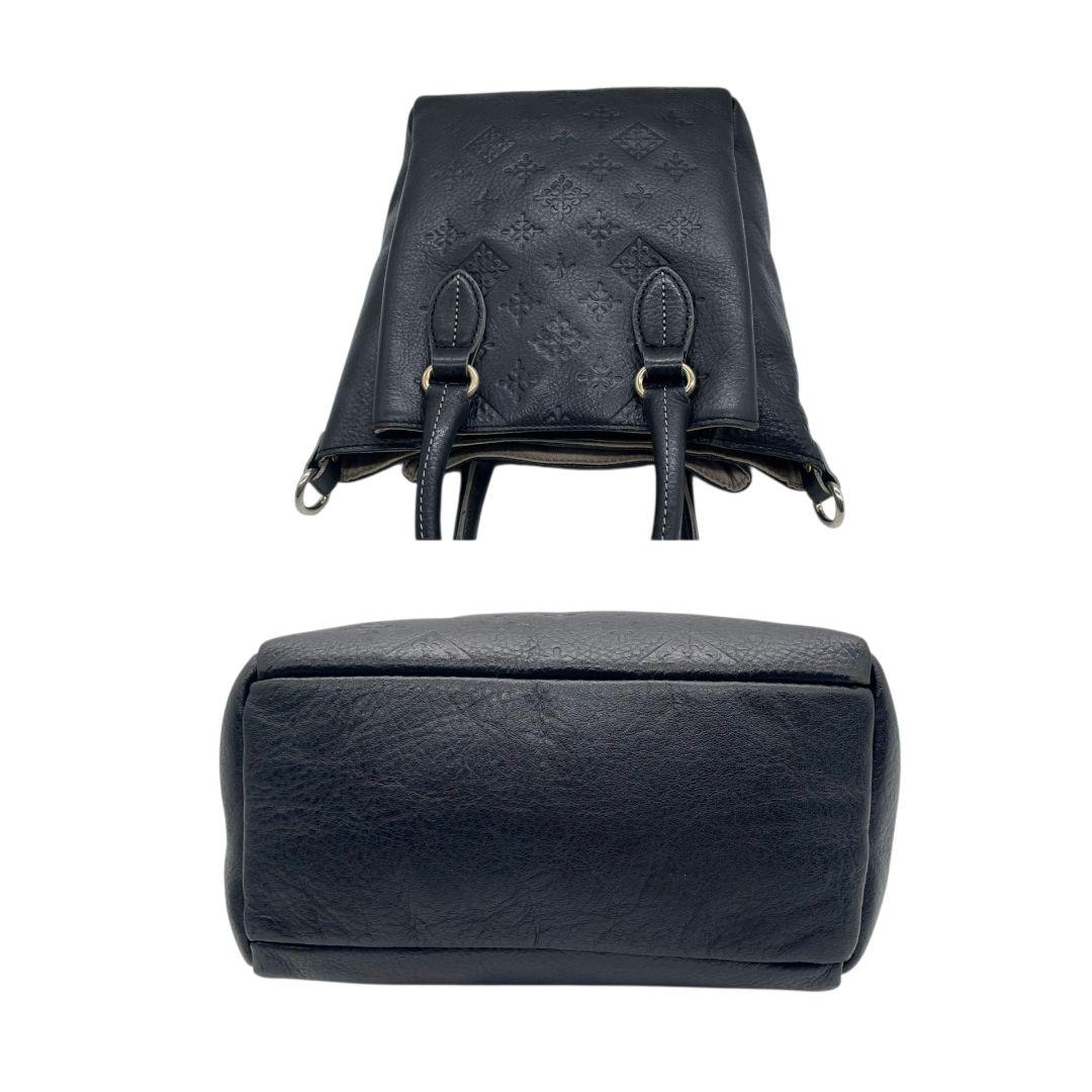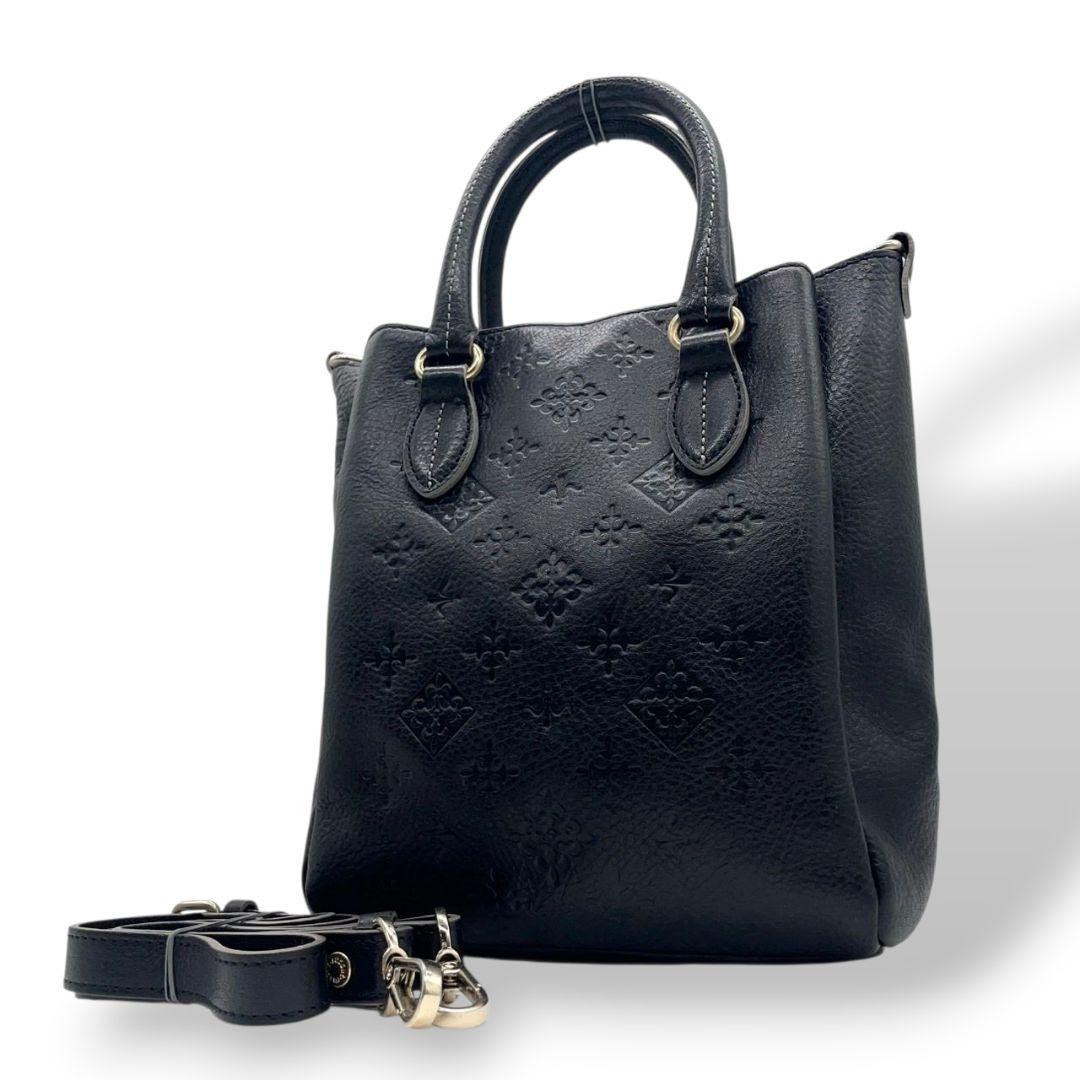 ラシット ハンドバッグ 黒 モノグラム 型押し 2way 斜め掛け可 s94 トートバッグ ショルダーバッグ 本革 ブラック シルバー金具 russet