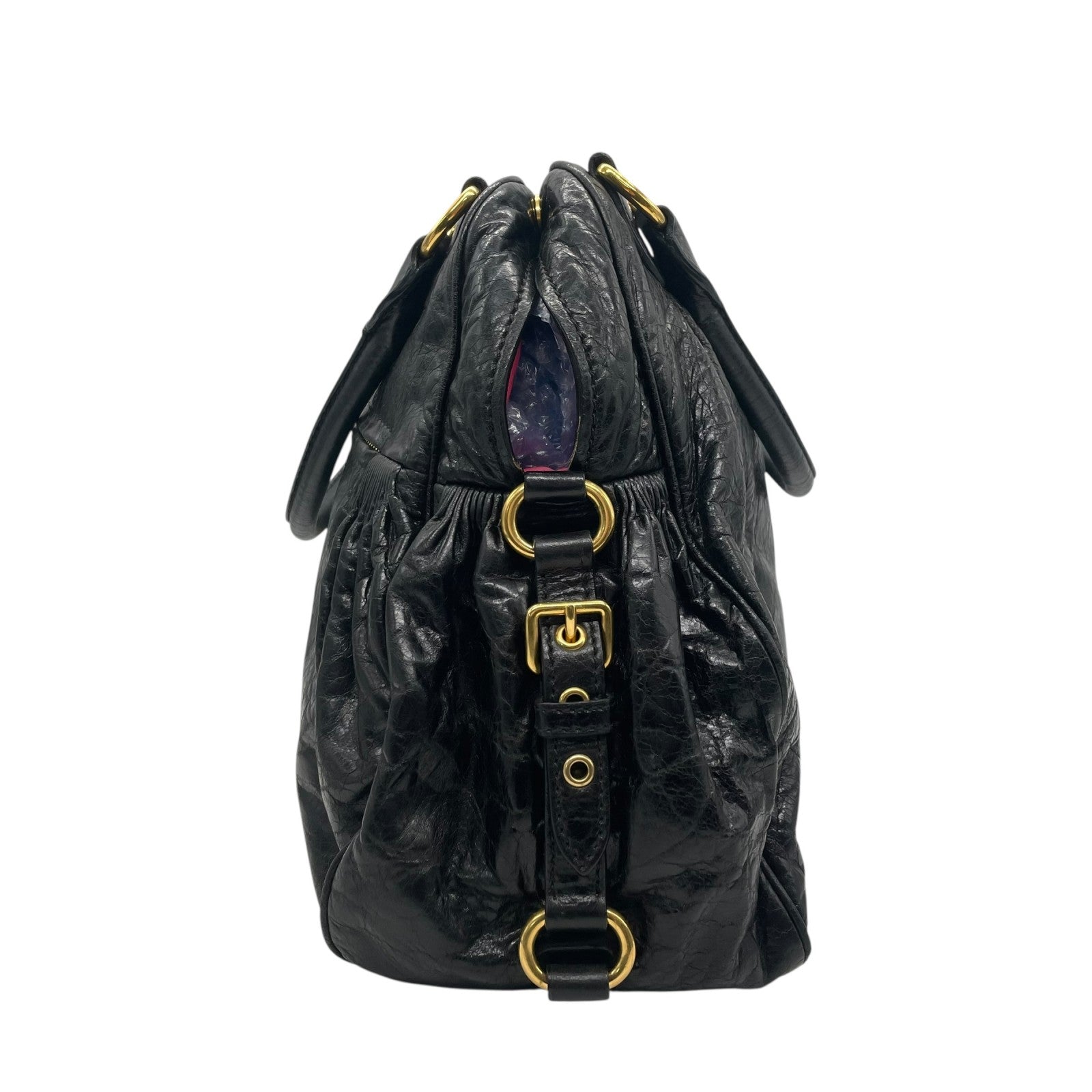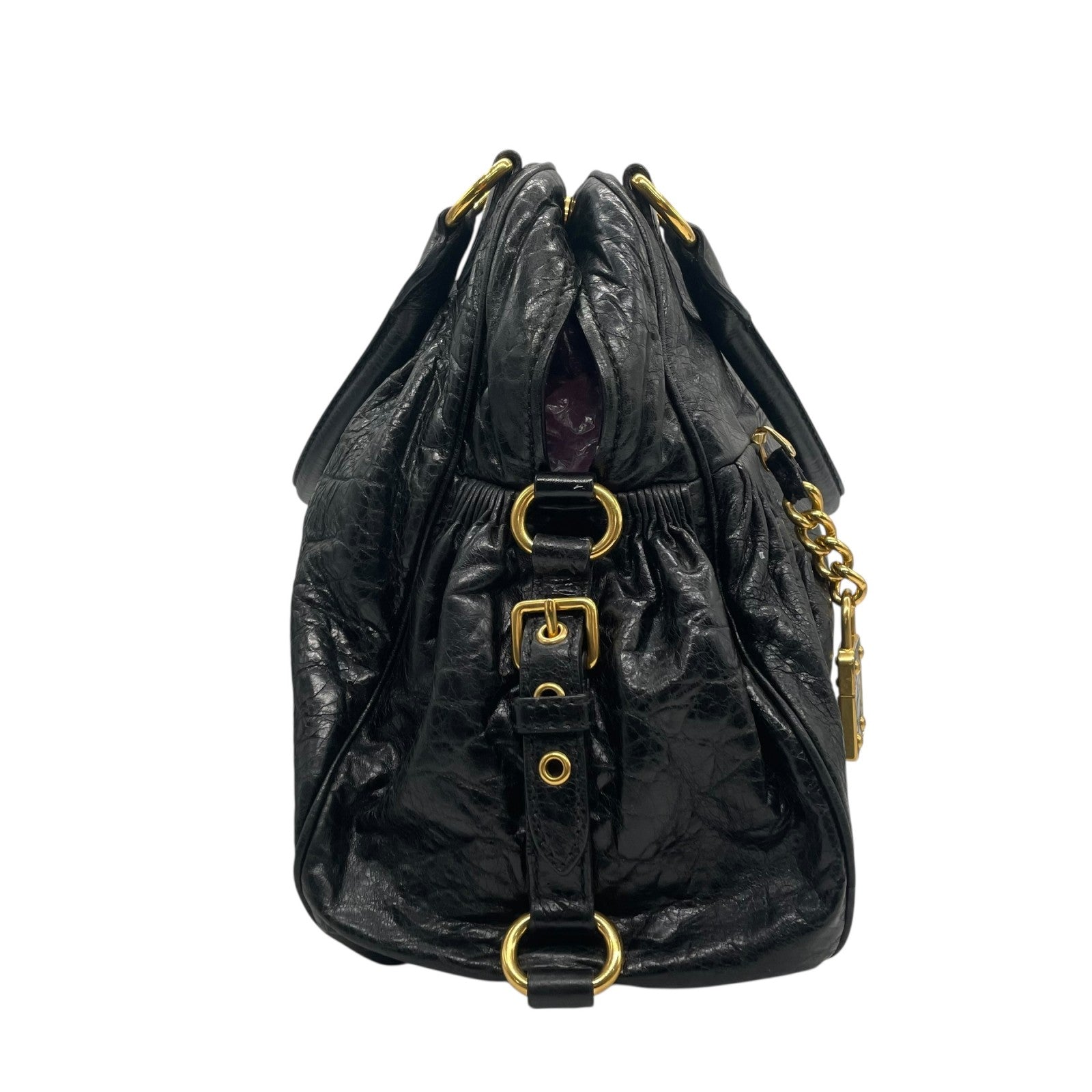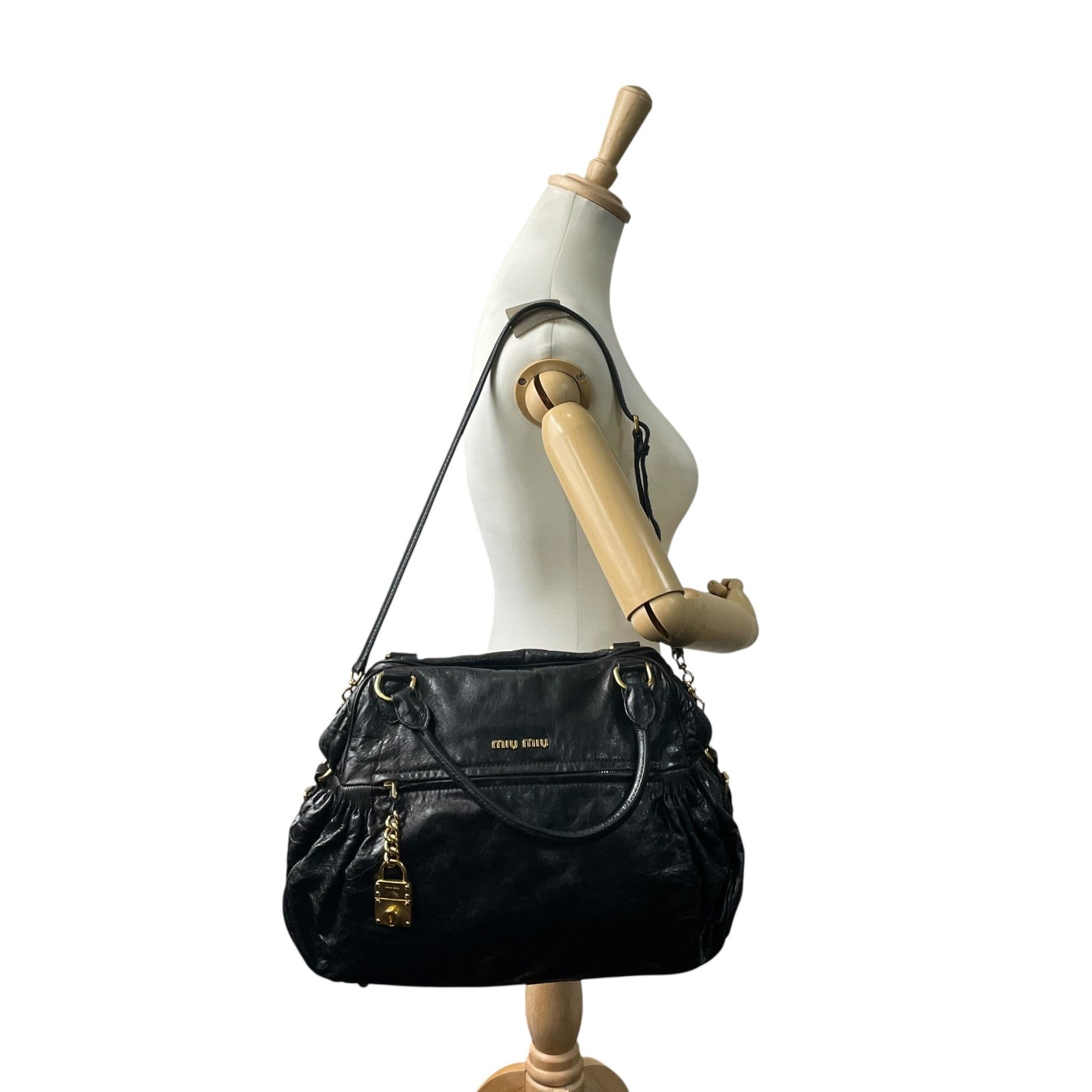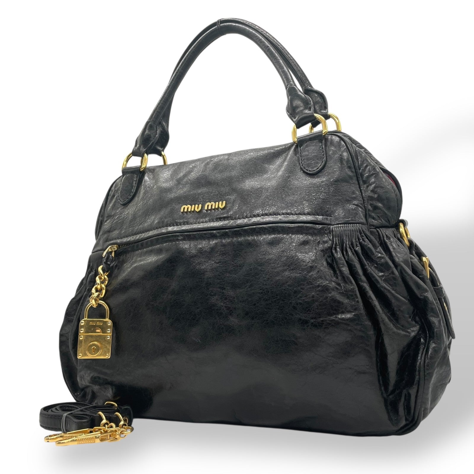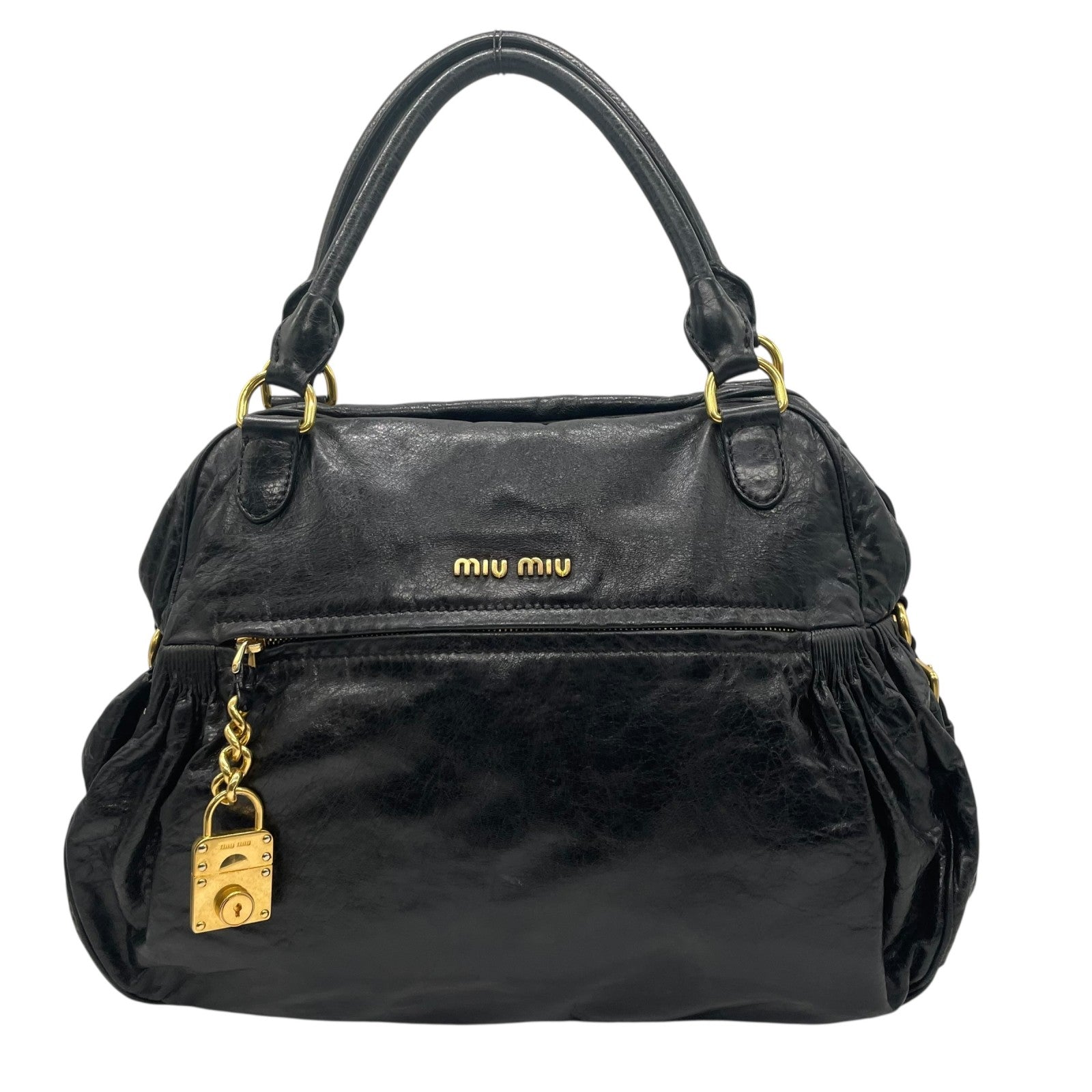 美品 miumiu ミュウミュウ 2WAY ハンドバッグ ショルダーバッグ 黒 ブラック レザー ゴールド金具 肩掛け可 カデナチャーム アーカイブ レディース ヴィンテージ D