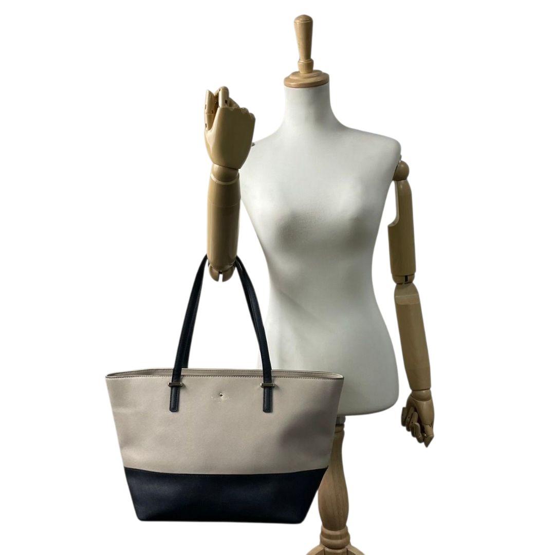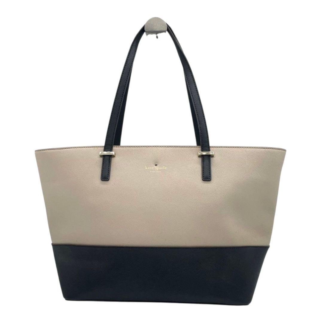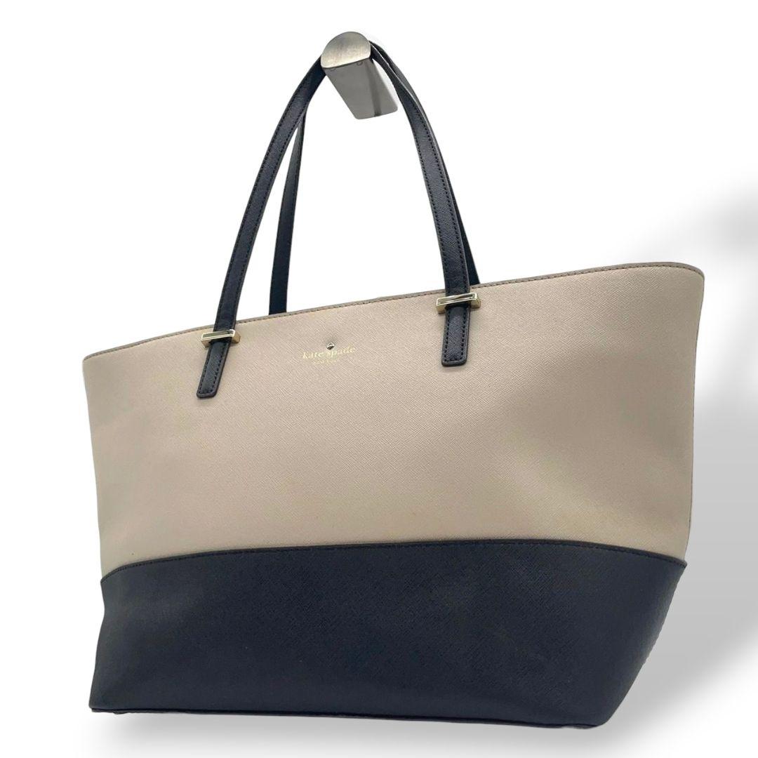 ケイトスペード トートバッグ グレージュ 黒 ブラック バイカラー ワンショルダー A4収納可 ハンドバッグ 肩掛け可 レザー 本革 ゴールド金具 ロゴ おしゃれ 通勤 通学