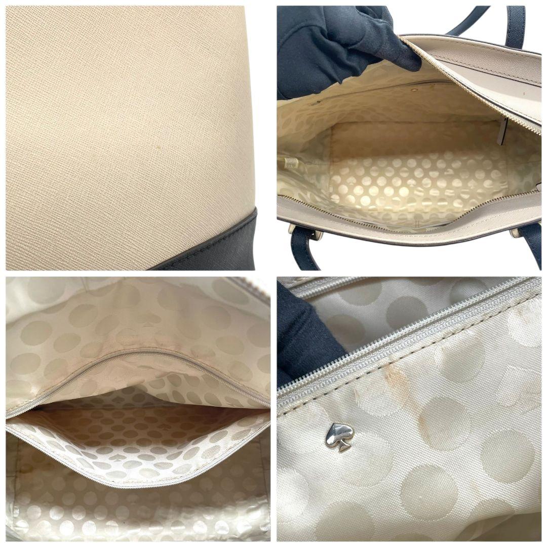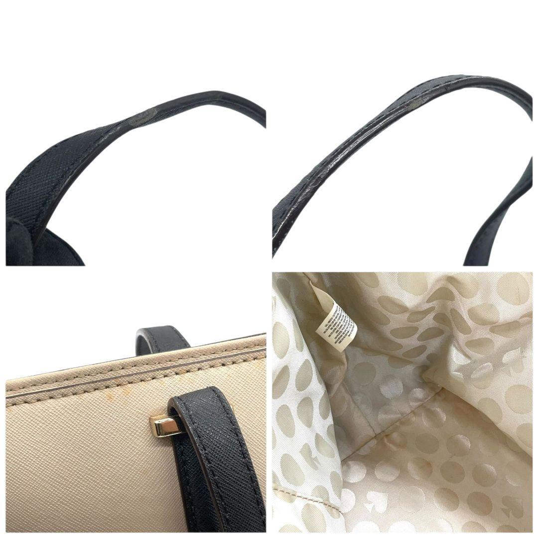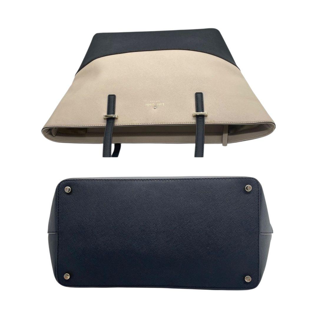 ケイトスペード トートバッグ グレージュ 黒 ブラック バイカラー ワンショルダー A4収納可 ハンドバッグ 肩掛け可 レザー 本革 ゴールド金具 ロゴ おしゃれ 通勤 通学