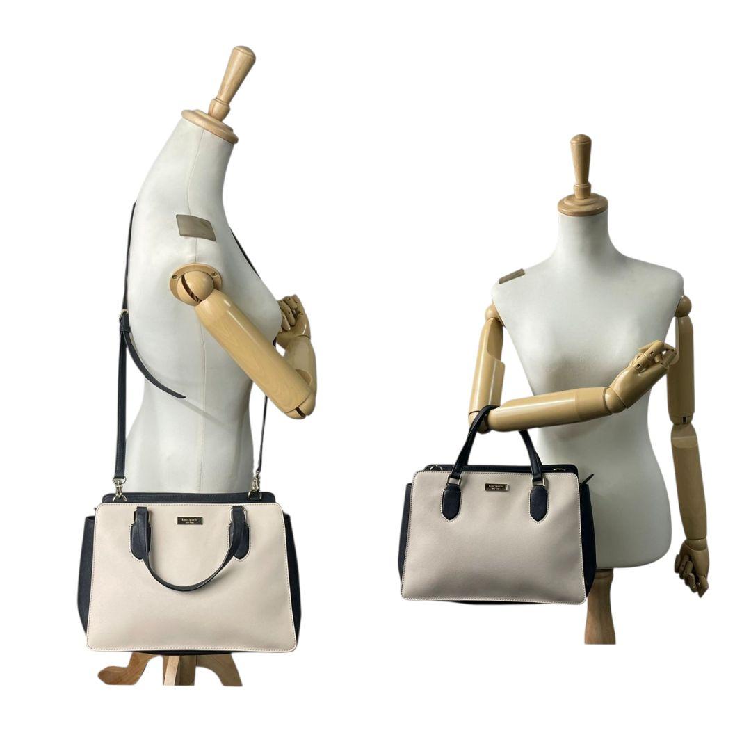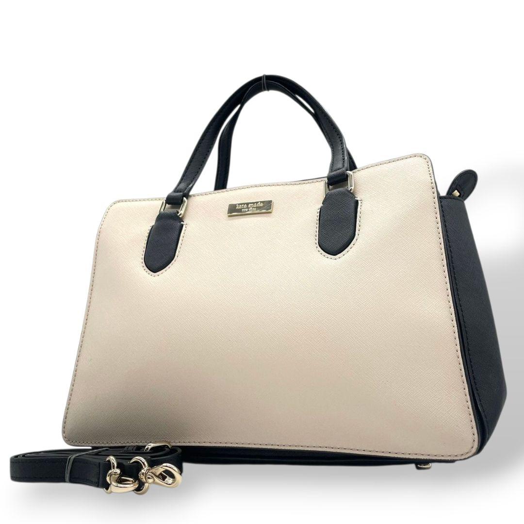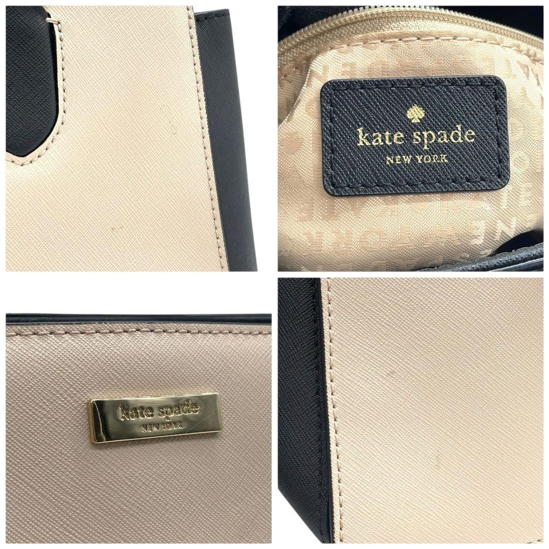 ケイトスペード トートバッグ グレー バイカラー 2way ハンドバッグ レザー u17 ショルダーバッグ 斜め掛け可 本革 グレージュ ブラック ゴールド金具 ロゴプレート kate spade