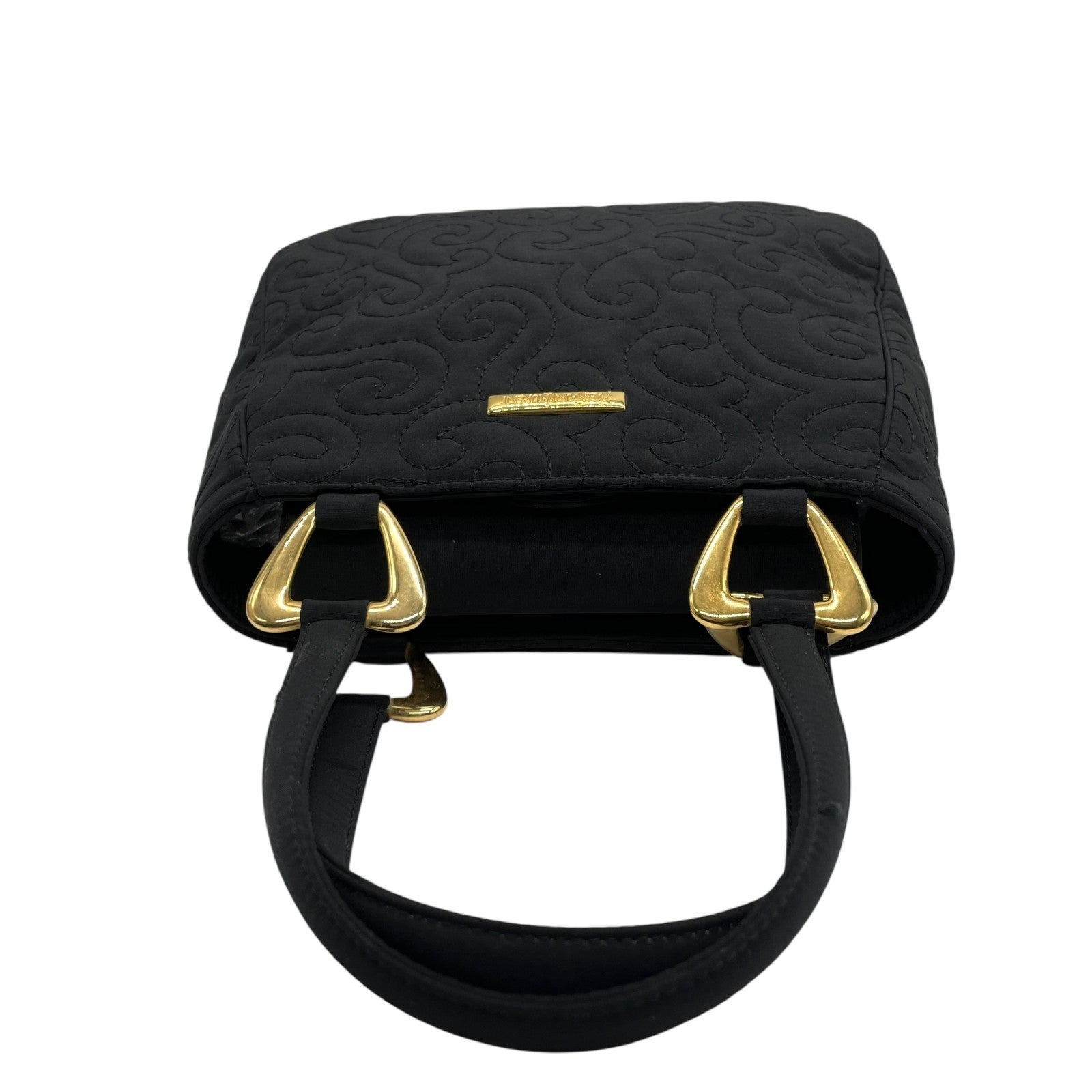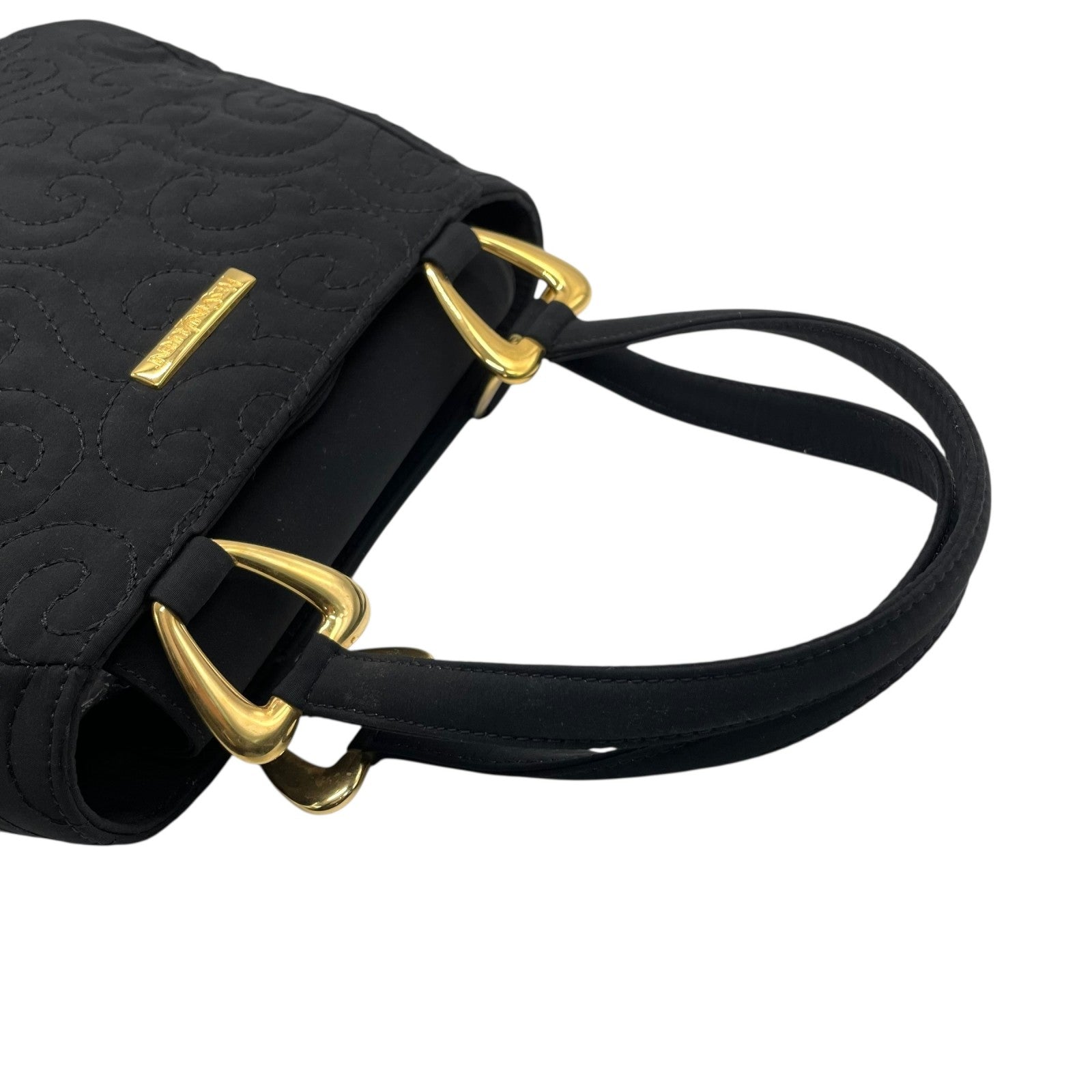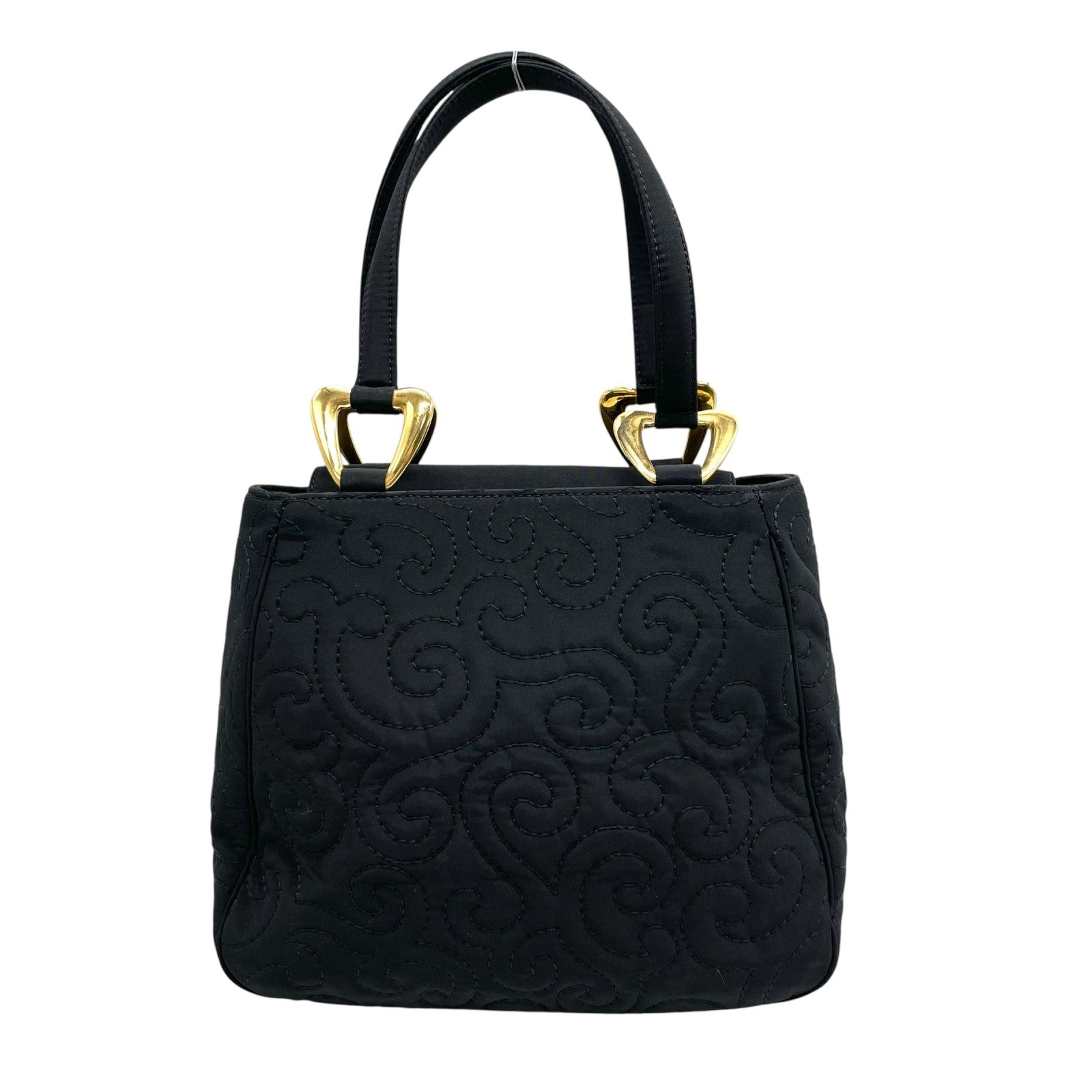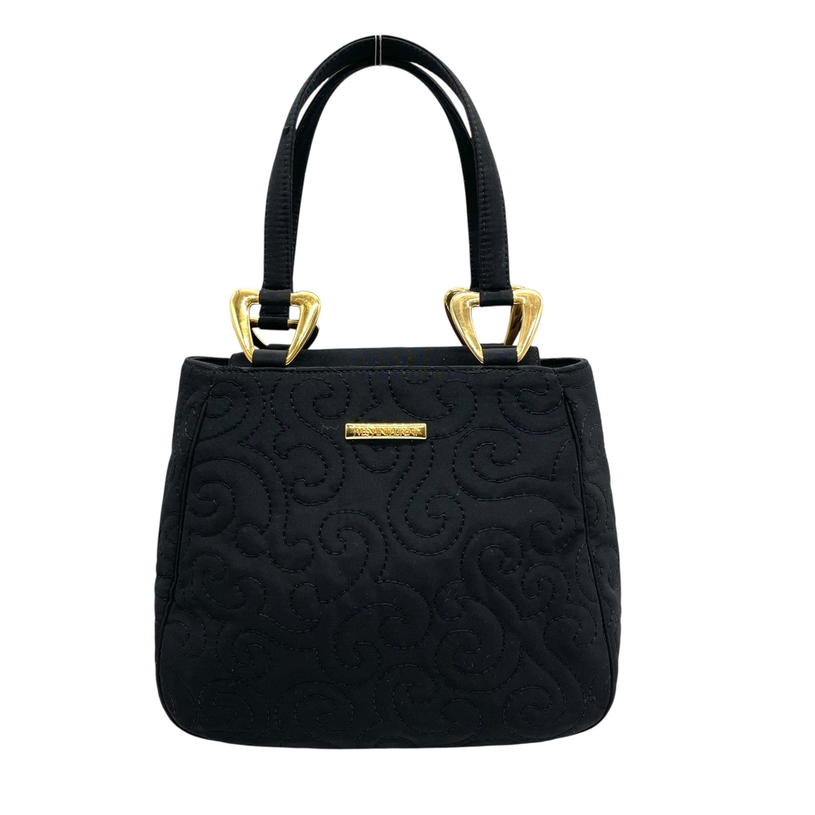 美品 希少 サンローラン Yves Saint Laurent ハンドバッグ ブラック 黒 ゴールド金具 金金具 キルティング調 スワール柄 高級 上品 レディース ヴィンテージ C4