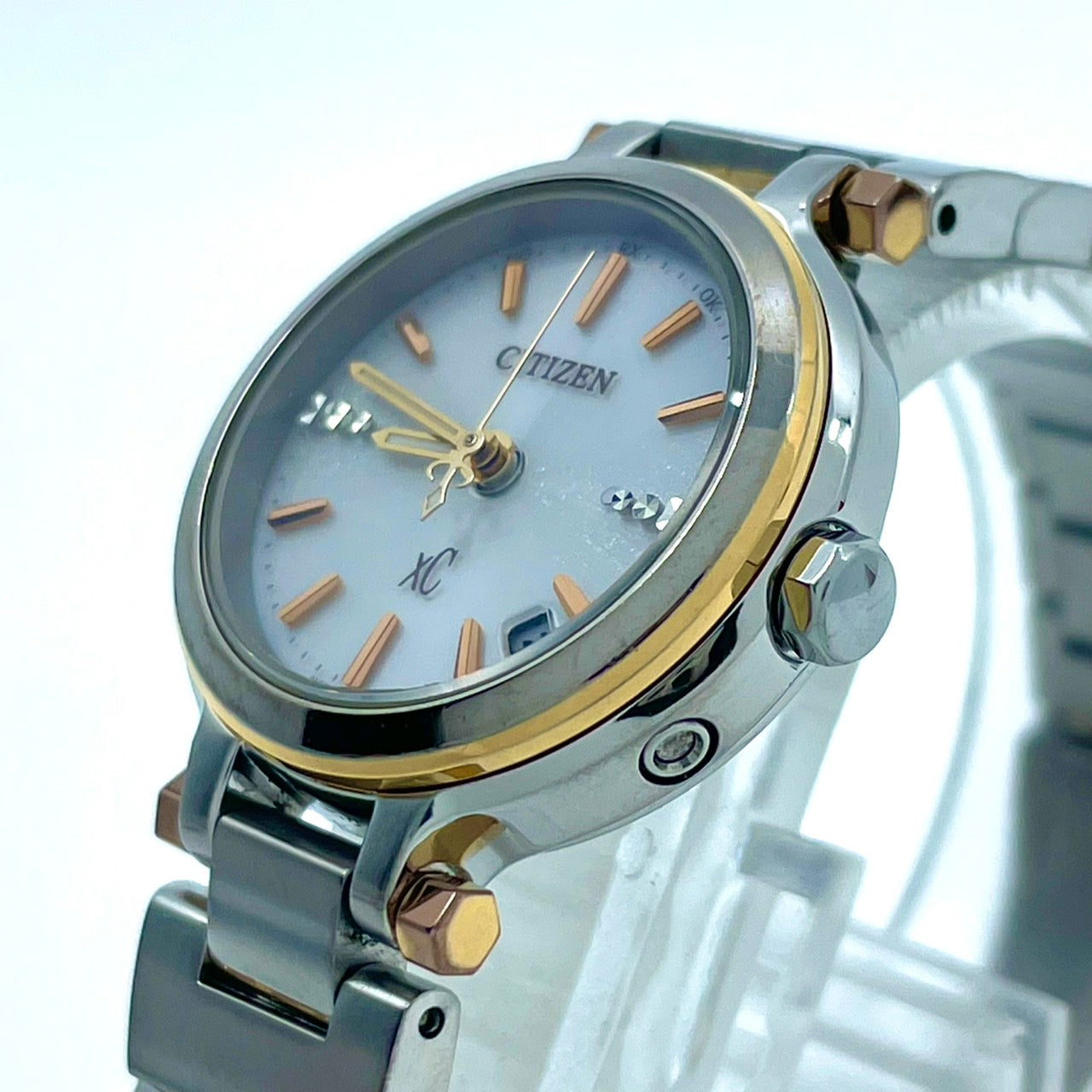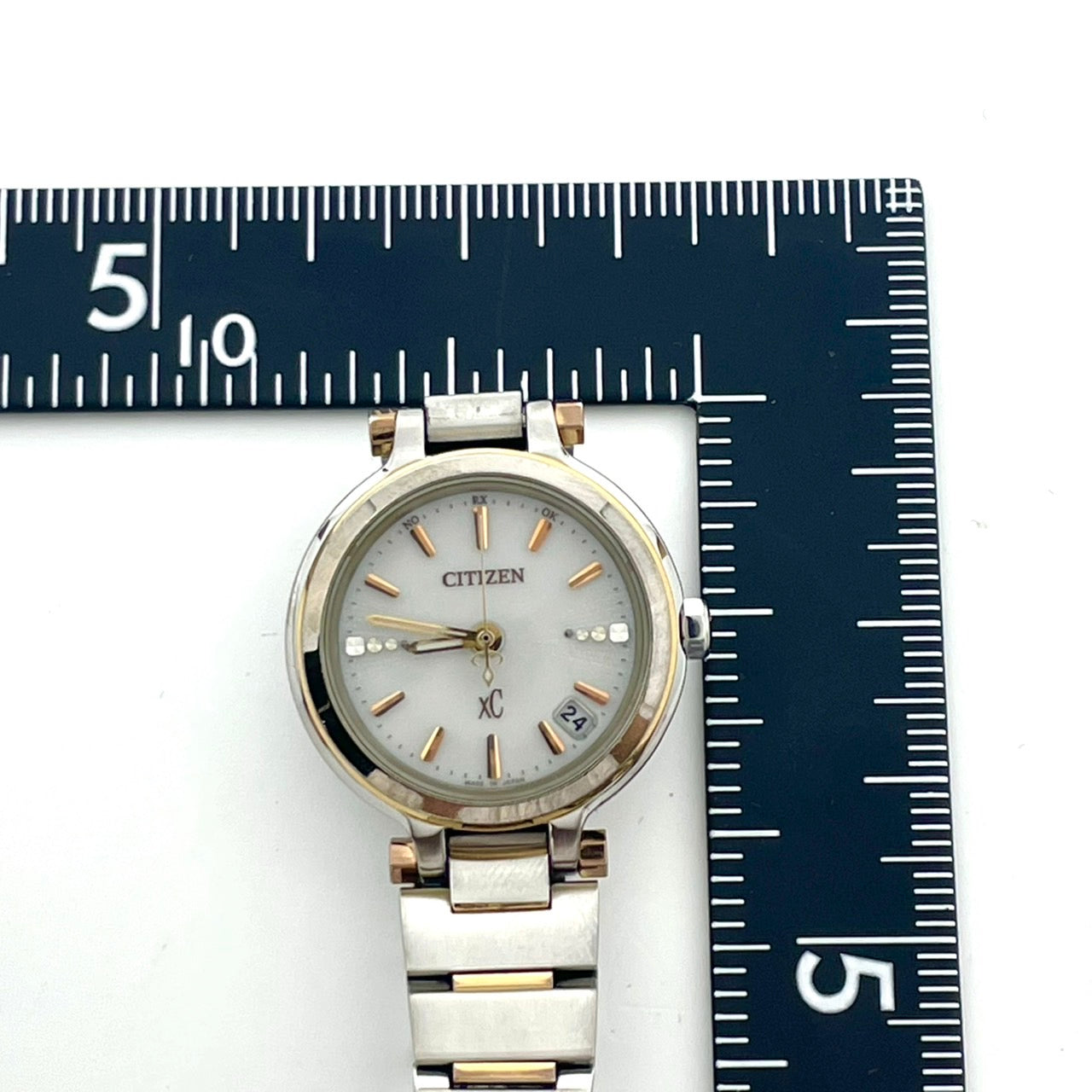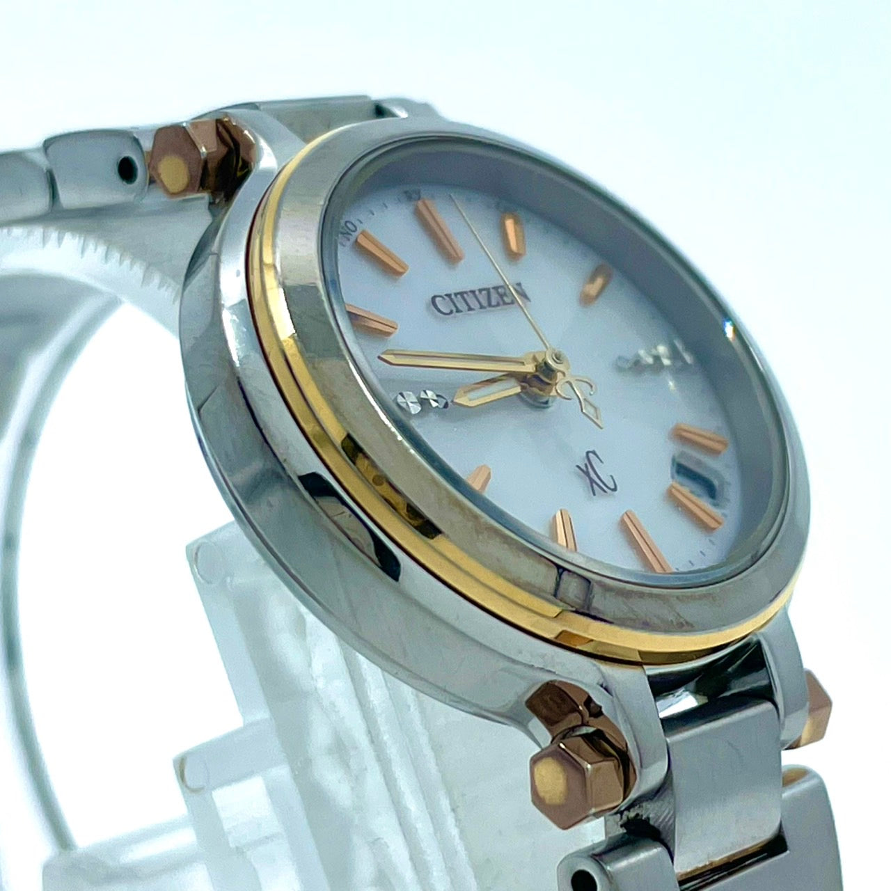 【稼働/美品】シチズン XC クロスシー 腕時計 H058-T017908 レディース エコドライブ ソーラー電波 シルバー ゴールド コンビ デイト表示 ラウンド ダイヤモンド エレガント ドレスウォッチ ビジネス クリーニング済 G6