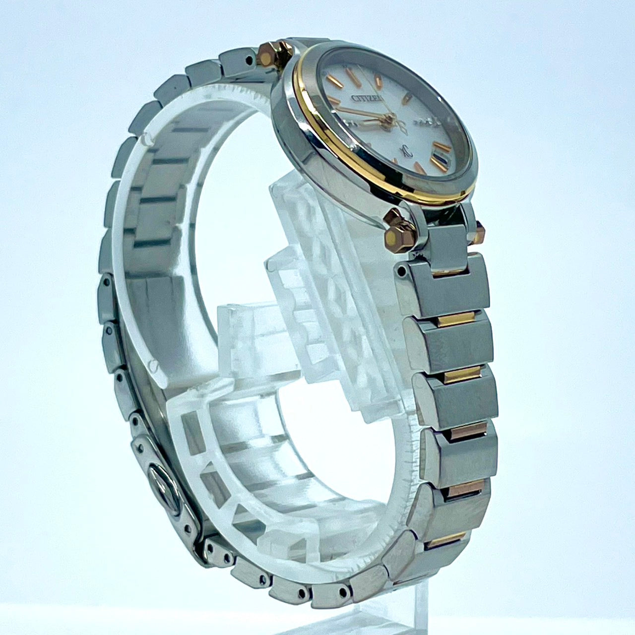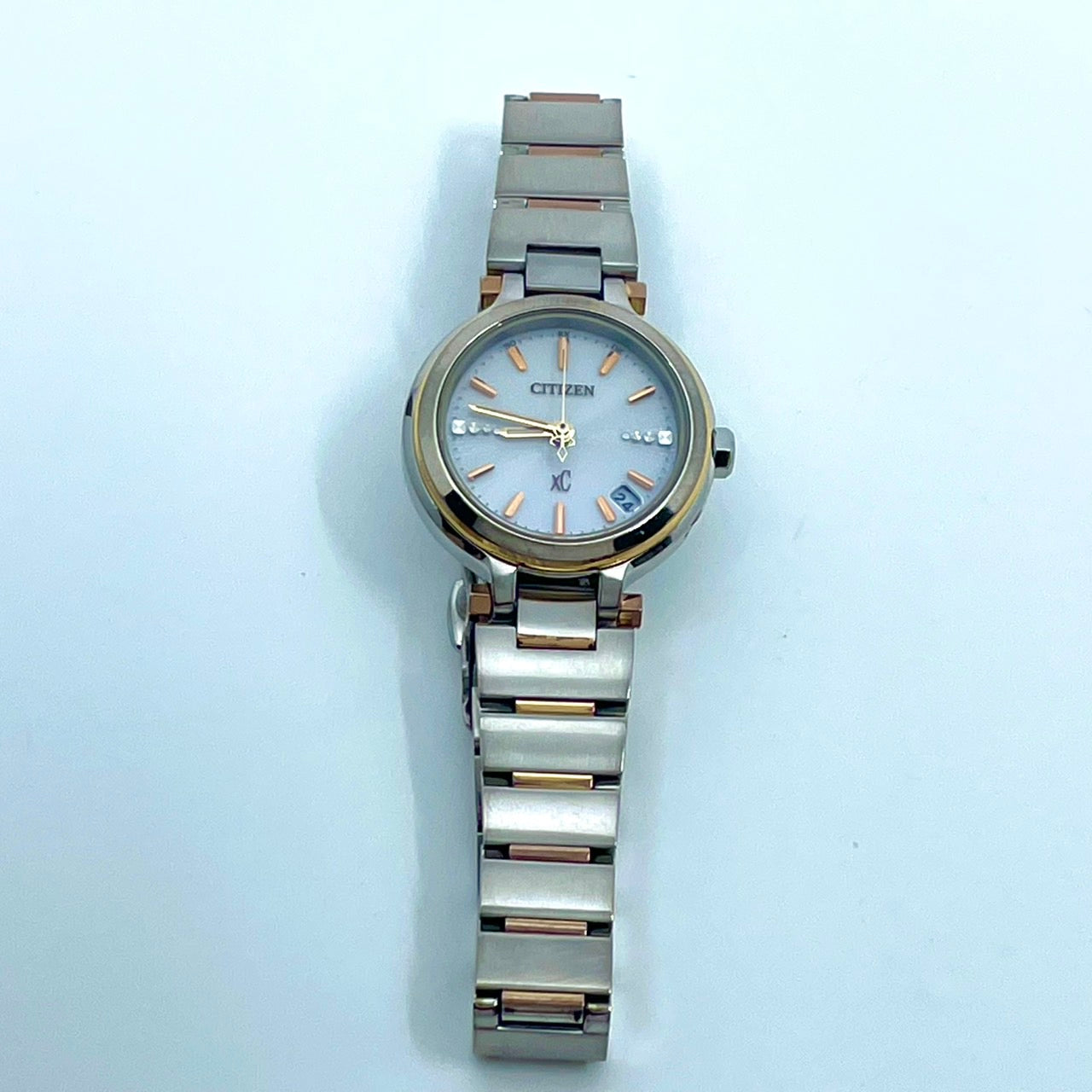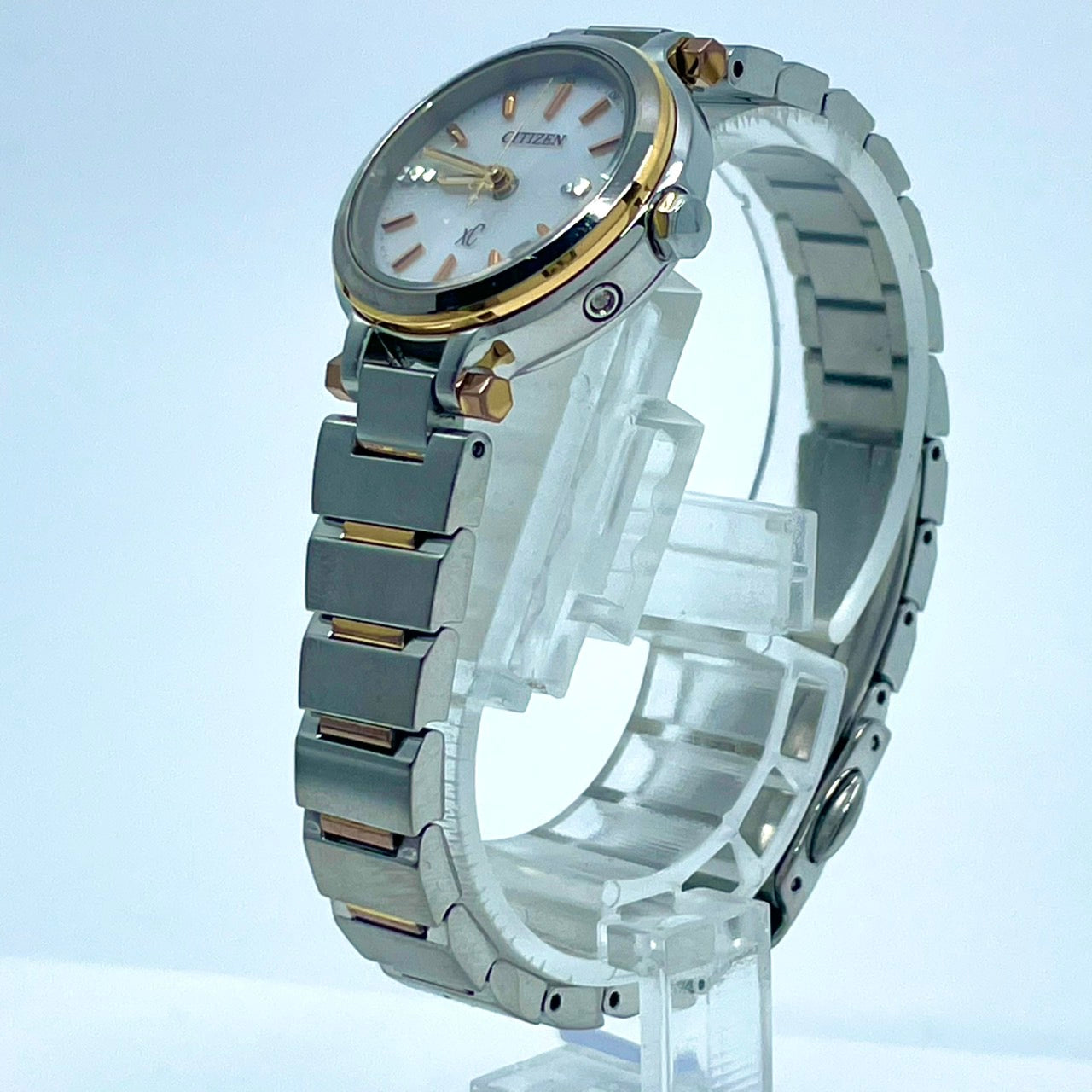 【稼働/美品】シチズン XC クロスシー 腕時計 H058-T017908 レディース エコドライブ ソーラー電波 シルバー ゴールド コンビ デイト表示 ラウンド ダイヤモンド エレガント ドレスウォッチ ビジネス クリーニング済 G6