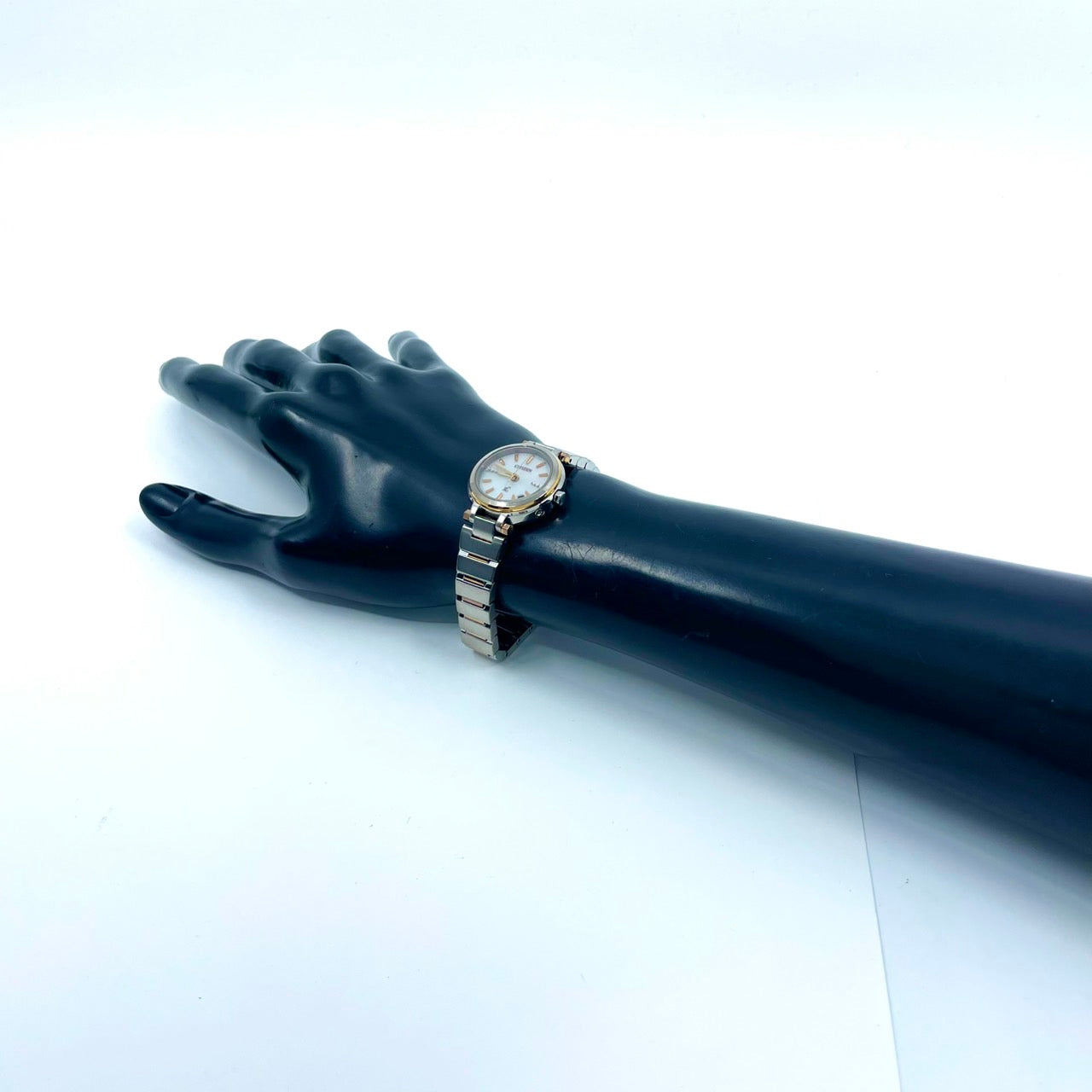 | 商品説明 | 商品説明 【稼働美品/クリーニング済】本商品はCITIZEN XC(シチズン クロスシー)のエコドライブ電波レディース腕時計です。 シルバーとゴールドのコンビカラーが上品なラウンドケースに、ダイヤモンドがきらめくホワイトの文字盤を合わせた、エレガントで高級感のあるデザインです。 特徴 ブランド:CITIZEN (シチズン) モデル:XC (クロスシー) H058-T017908 ムーブメント:エコドライブ(ソーラー電波) ケース形状:ラウンド ケースカラー:シルバー/ゴールド 文字盤カラー:ホワイト 素材:ステンレススチール (DURATECT) 仕様:アナログ表示 / デイト表示 / ダイヤモンド / 電波受信機能 / ソーラー充電 状態:稼働品 / クリーニング済み CITIZENの先進技術「エコドライブ」と「電波受信機能」を搭載し、時刻合わせや電池交換が不要。 ビジネスシーンから特別な日まで、あらゆる場面で手元を美しく彩る、機能性とデザイン性を兼ね備えた逸品です。 |