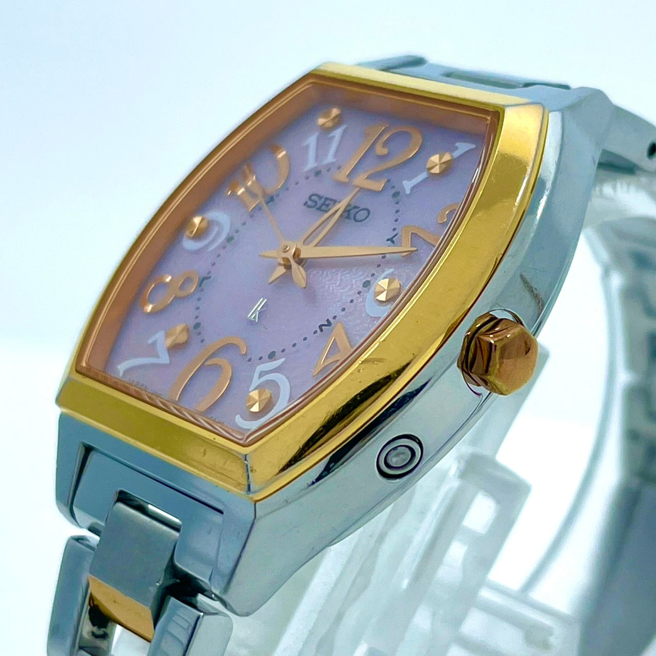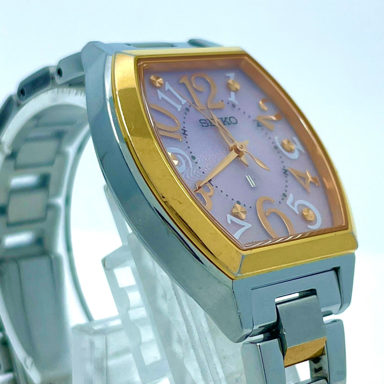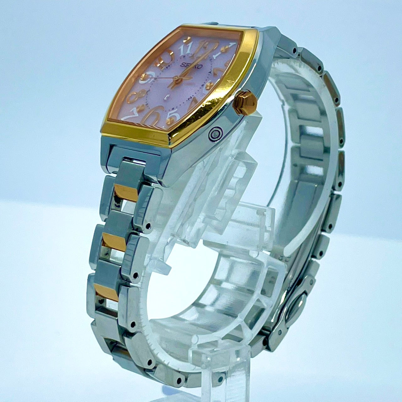 【稼働/美品】セイコー ルキア 3B51-0AE0 レディース 腕時計 ソーラー電波 トノー型 ピンク文字盤 シルバー ゴールド コンビ ステンレス エレガント クラシック ビジネス オフィス ファッションウォッチ クリーニング済 G6