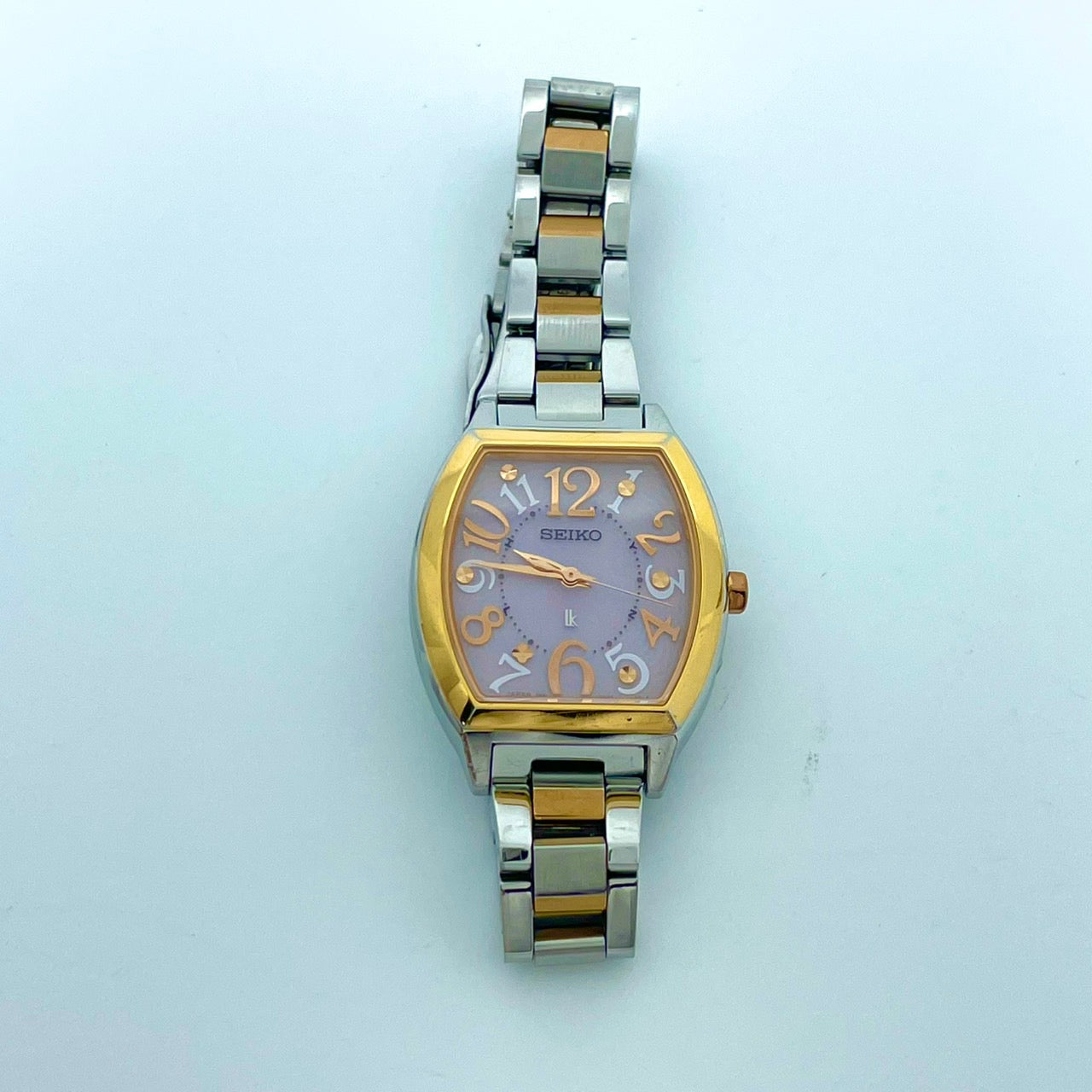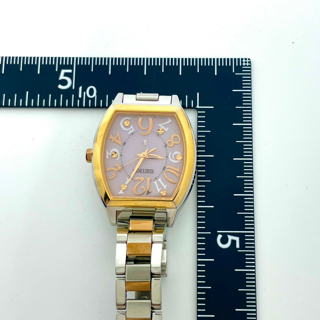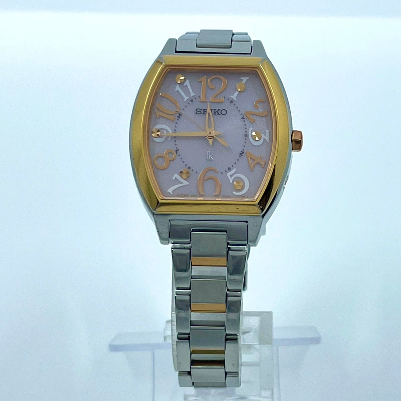 【稼働/美品】セイコー ルキア 3B51-0AE0 レディース 腕時計 ソーラー電波 トノー型 ピンク文字盤 シルバー ゴールド コンビ ステンレス エレガント クラシック ビジネス オフィス ファッションウォッチ クリーニング済 G6