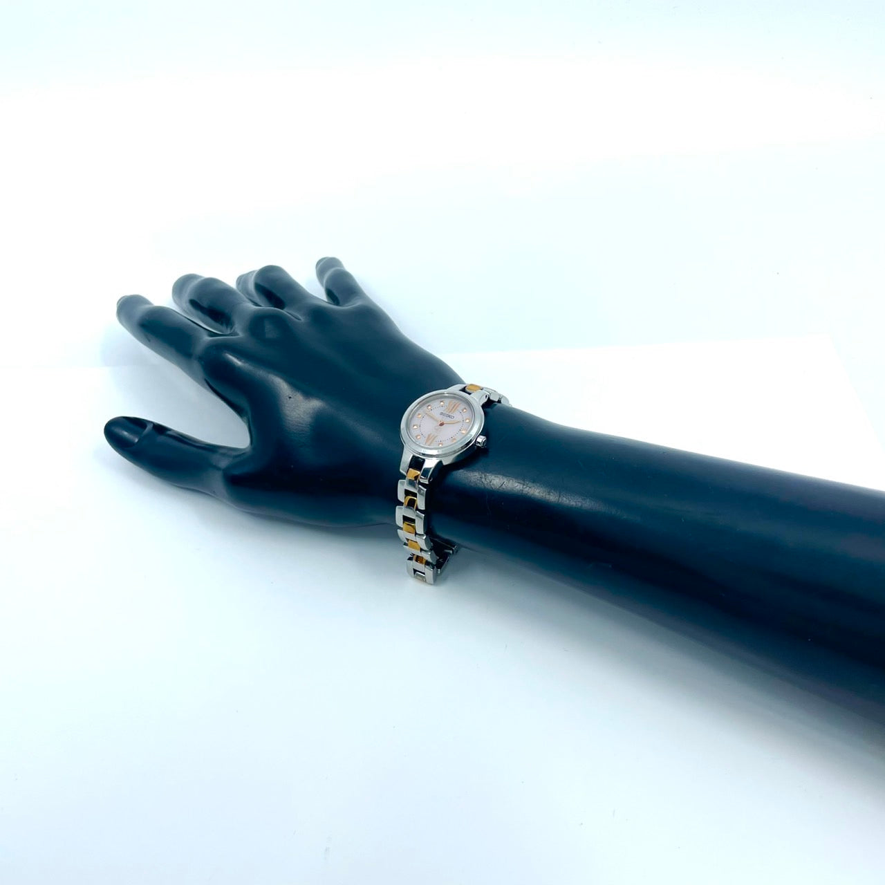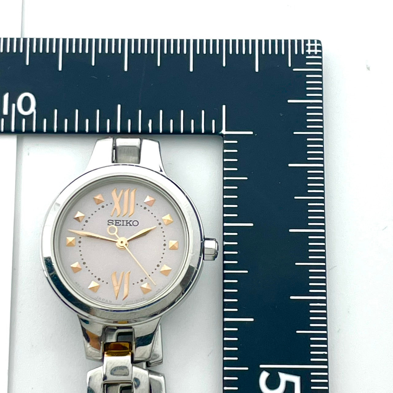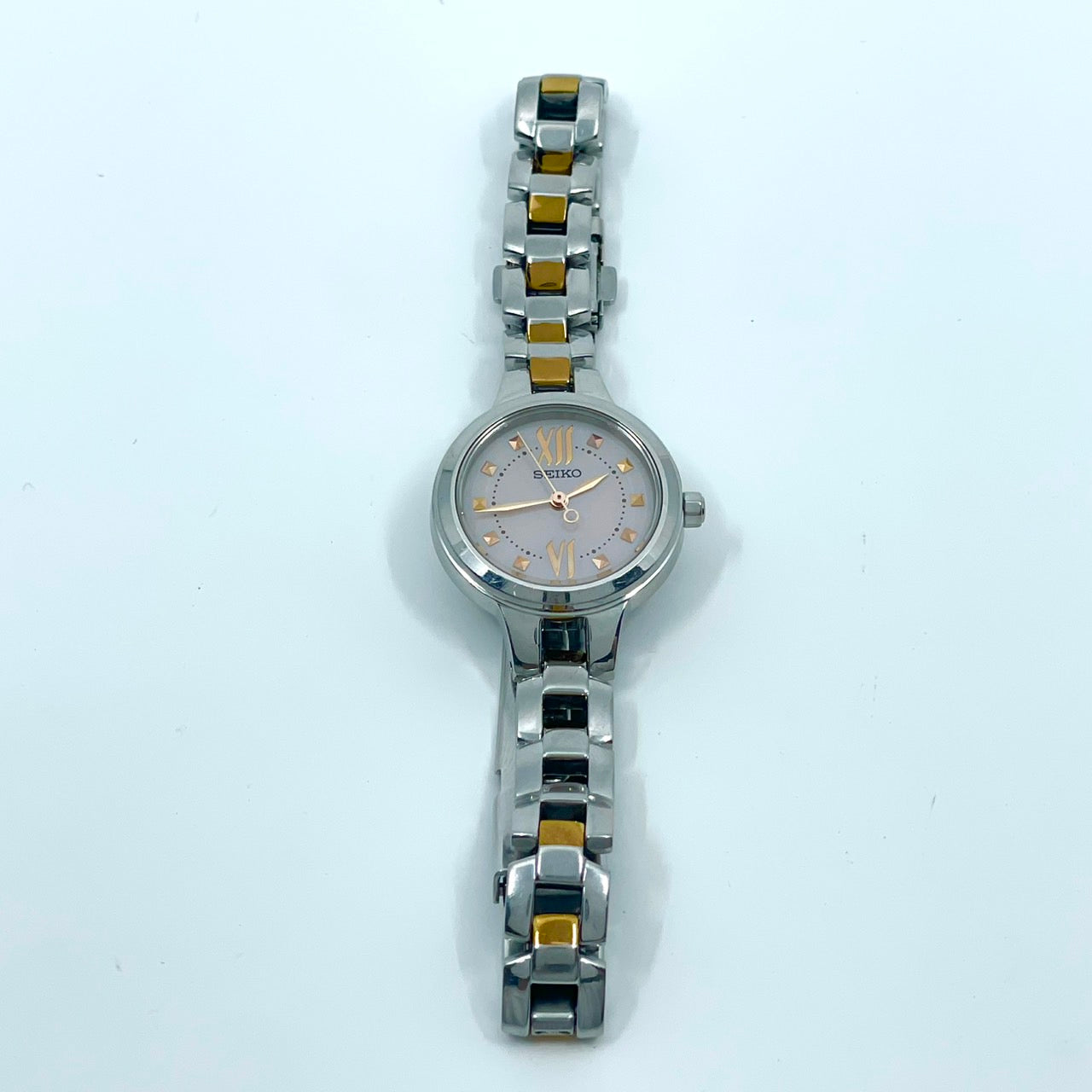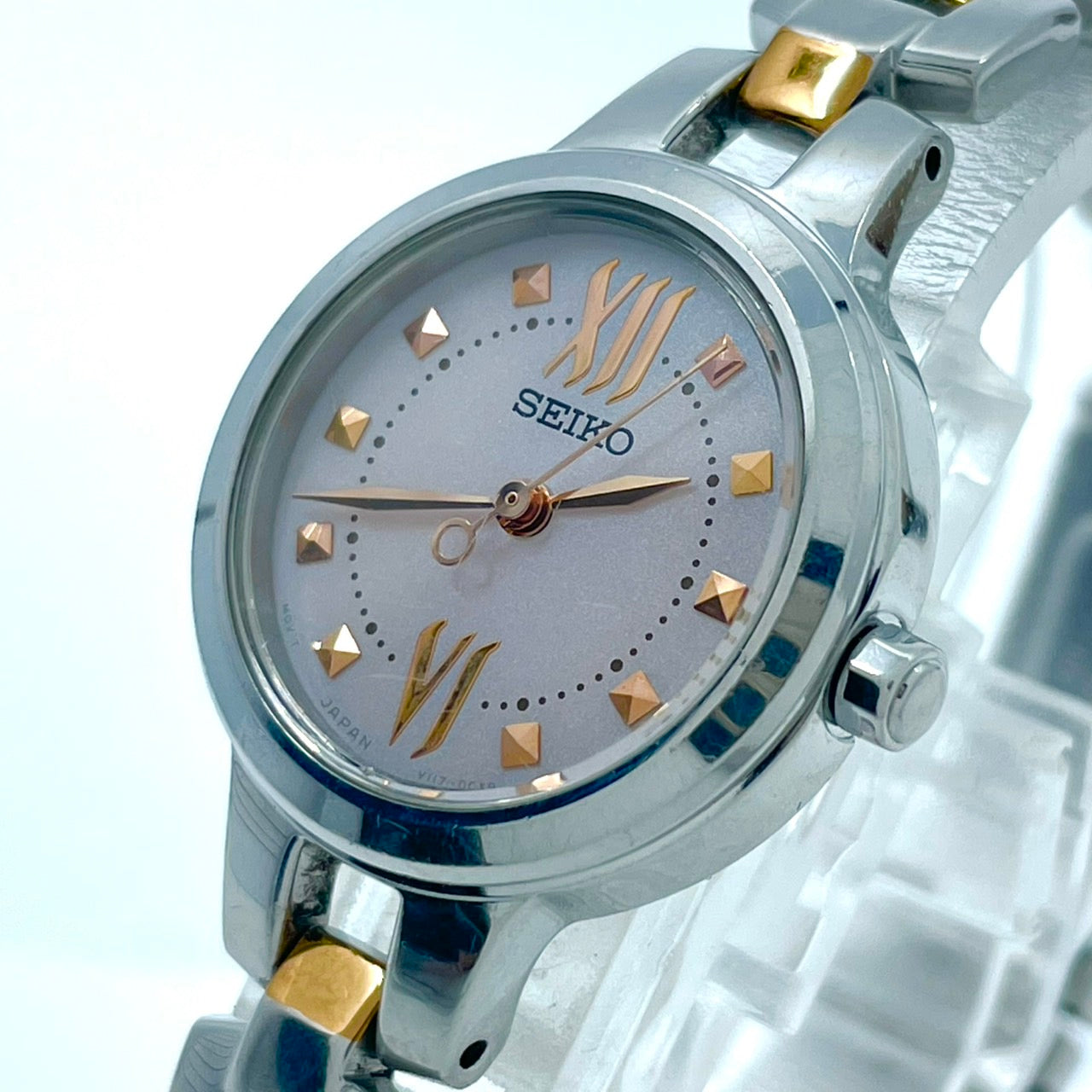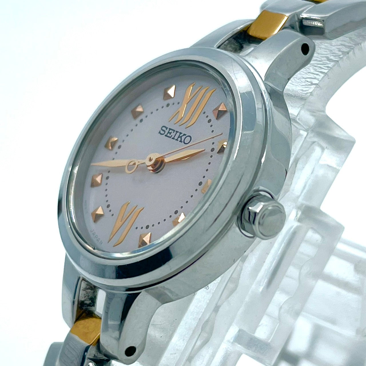 【稼働/美品】セイコー 腕時計 V117-0BH0 レディース ソーラー シルバー ピンク文字盤 ゴールドアクセント コンビ ラウンド ステンレス エレガント ドレスウォッチ クラシック ビジネス オフィス ファッションウォッチ クリーニング済 G6