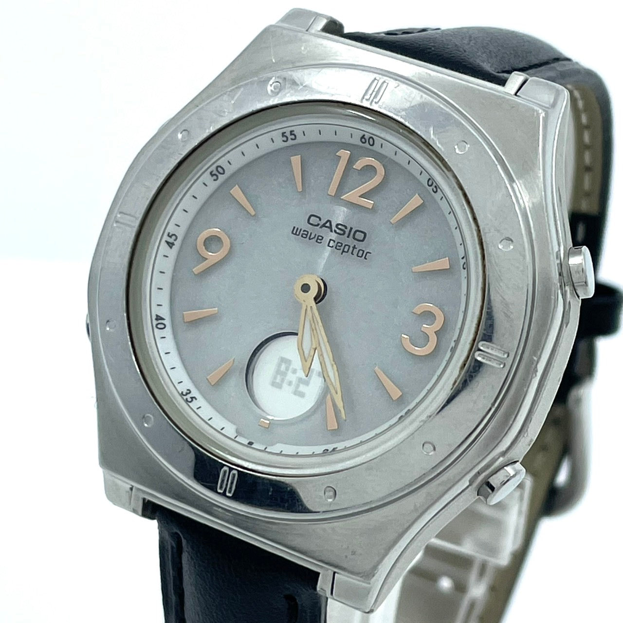 【新品ベルト(社外品)/稼働品】CASIO wave ceptor カシオ ウェーブセプター レディース 腕時計 LWA-M141 電波ソーラー アナデジ シルバー ブラックレザー ラウンド クラシック ビジネス カジュアル 多機能 クリーニング済み G6