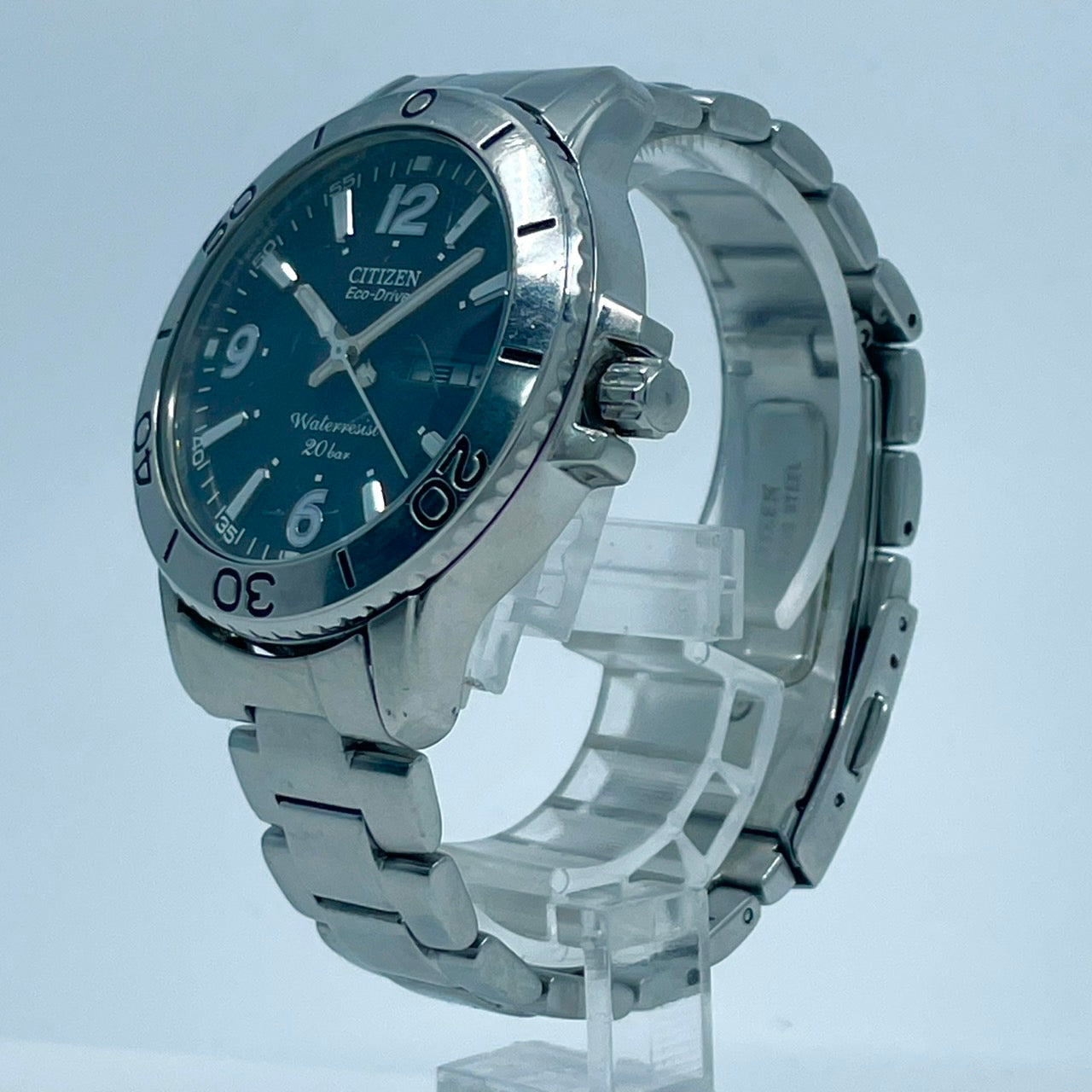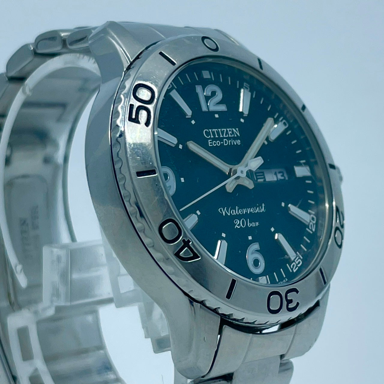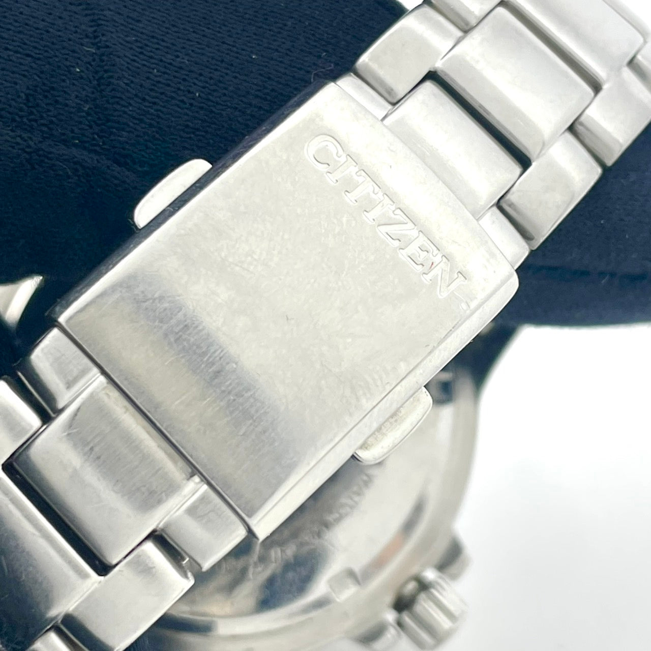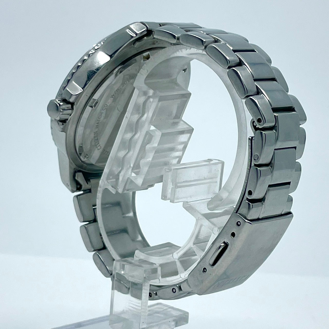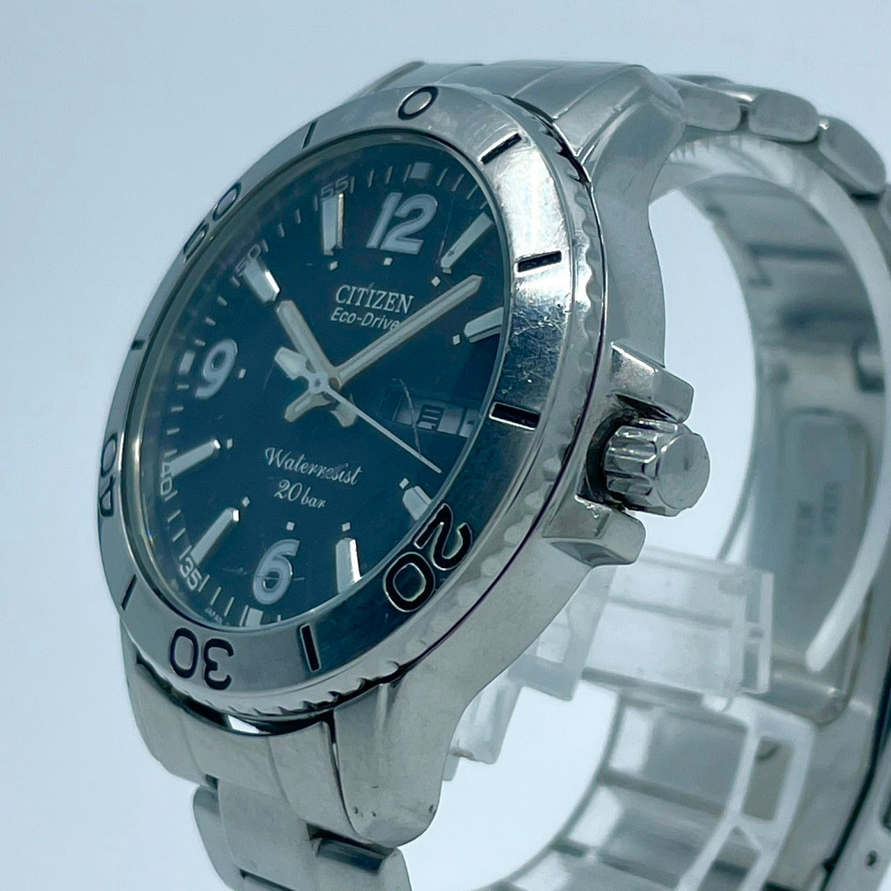 【稼働/美品】シチズン エコドライブ 腕時計 E101-K004888 メンズ ブラック文字盤 ソーラー デイデイト 20気圧防水 アナログ ラウンド シルバー ステンレス ビジネス カジュアル スポーティー アウトドアウォッチ クリーニング済 G6