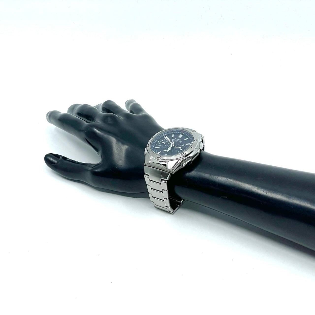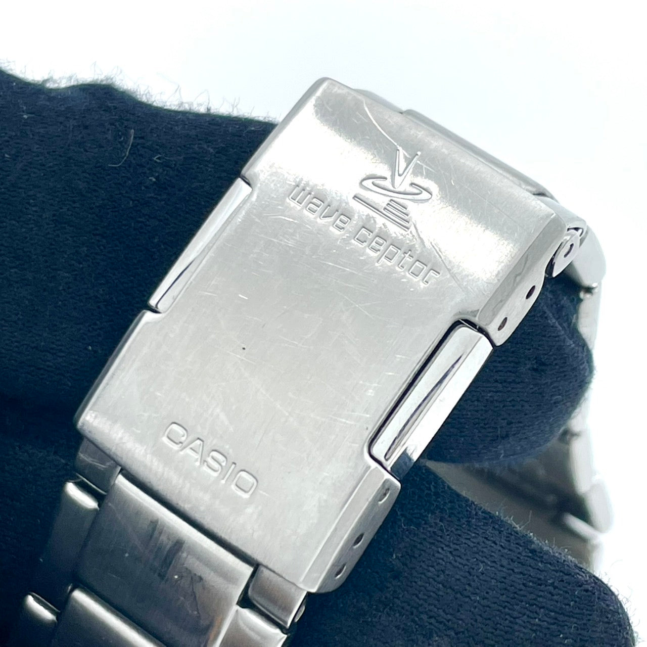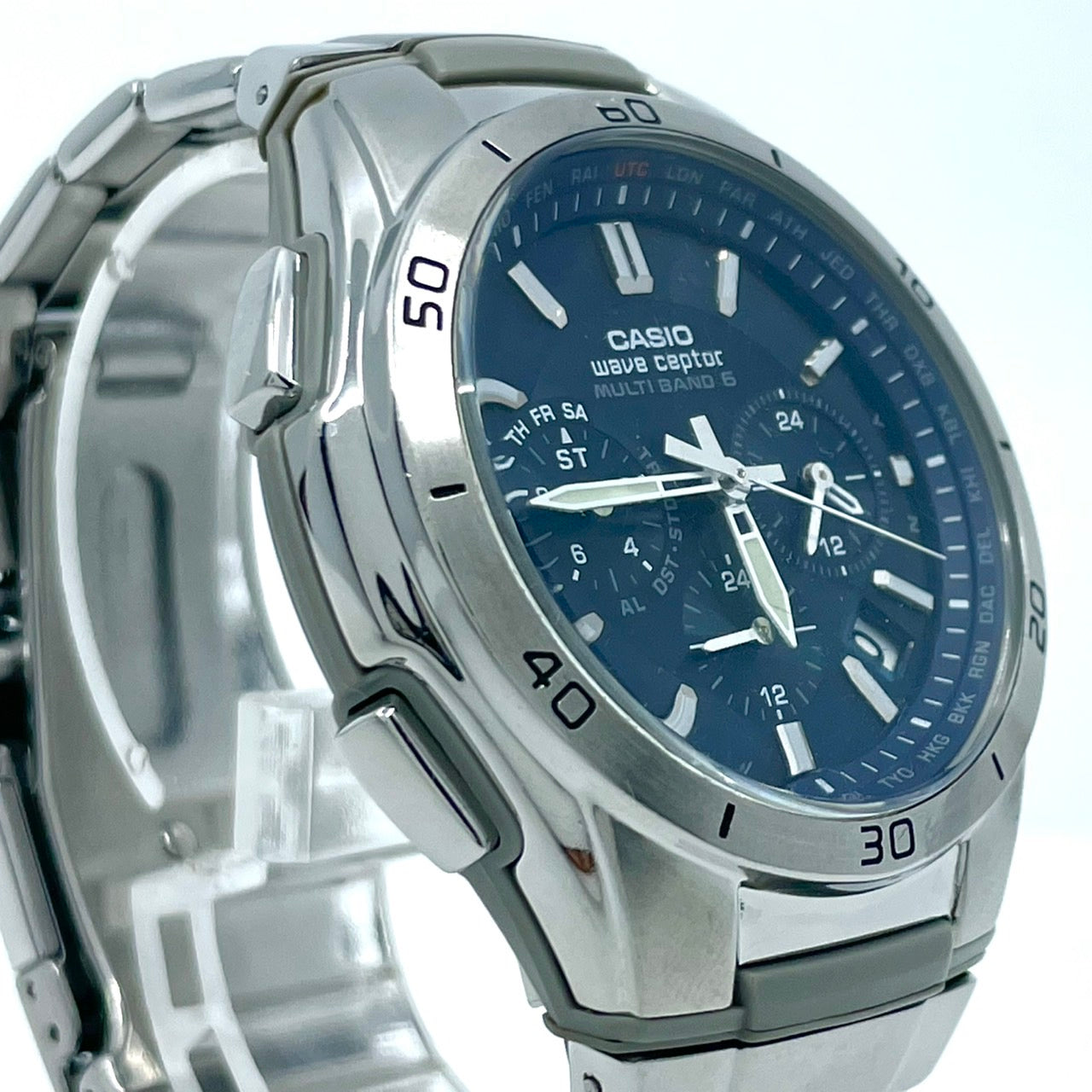 【稼働品】CASIO wave ceptor カシオ ウェーブセプター メンズ 腕時計 WVQ-M410 電波ソーラー クロノグラフ ネイビー シルバー 多機能 ワールドタイム MULTI BAND 6 ビジネス カジュアル アナログ クリーニング済 G6