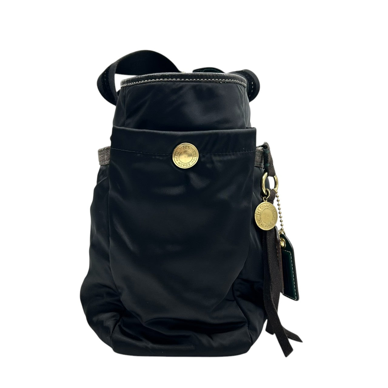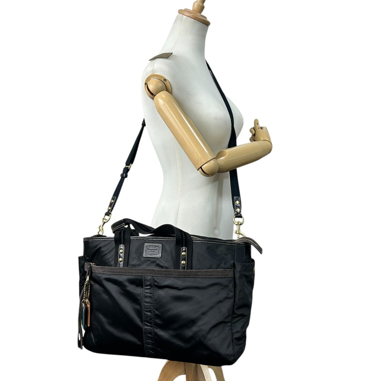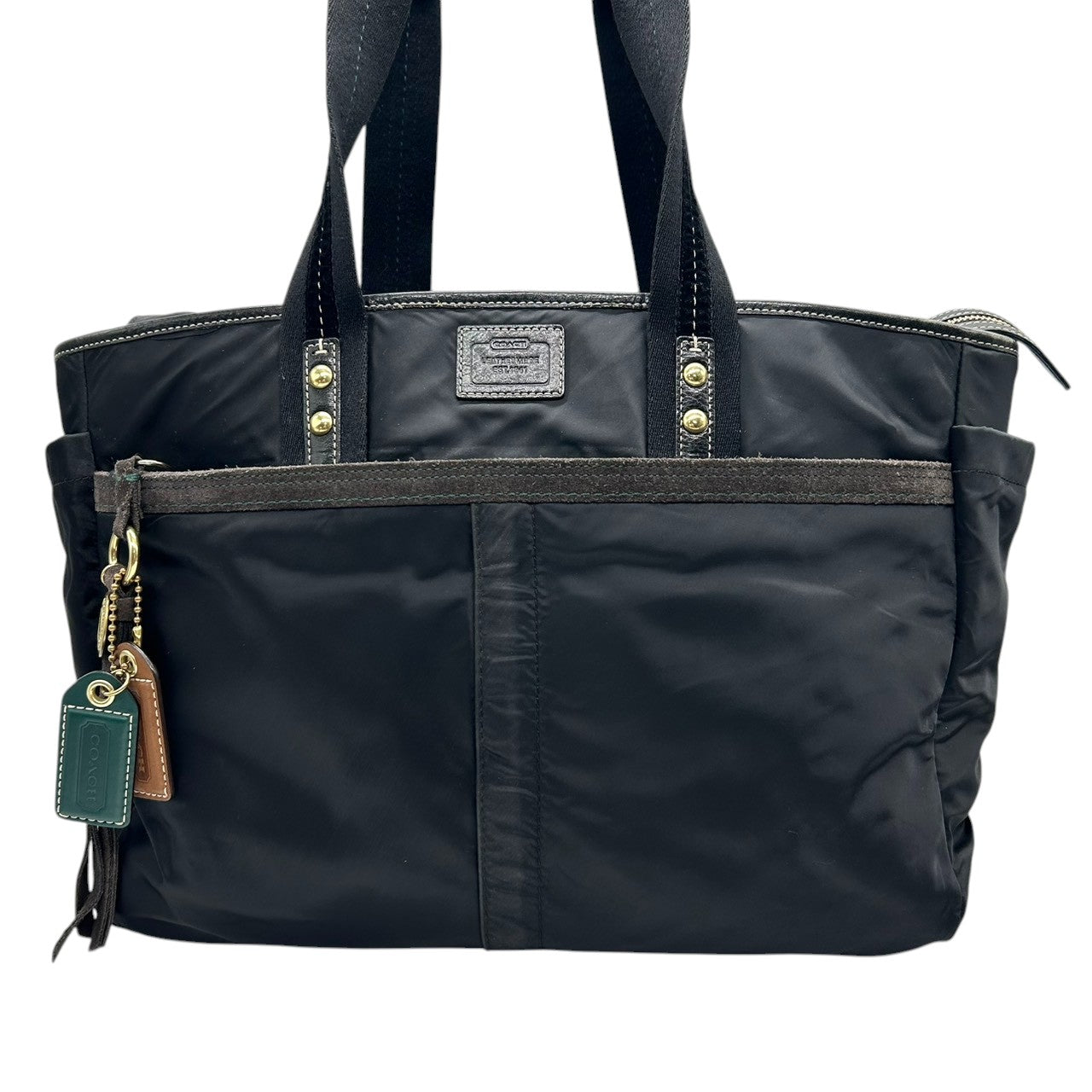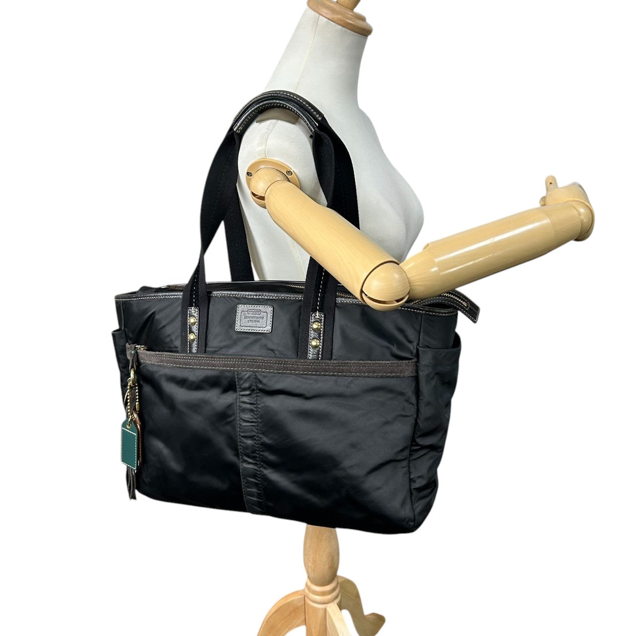 【美品】コーチ トートバッグ ハンプトンズ ウィークエンド 10102 ナイロン レザー ブラック 2WAY ビジネスバッグ A4収納可 大容量 斜め掛け可 メンズ 通勤 通学 旅行 チャーム付き クリーニング済み s57
