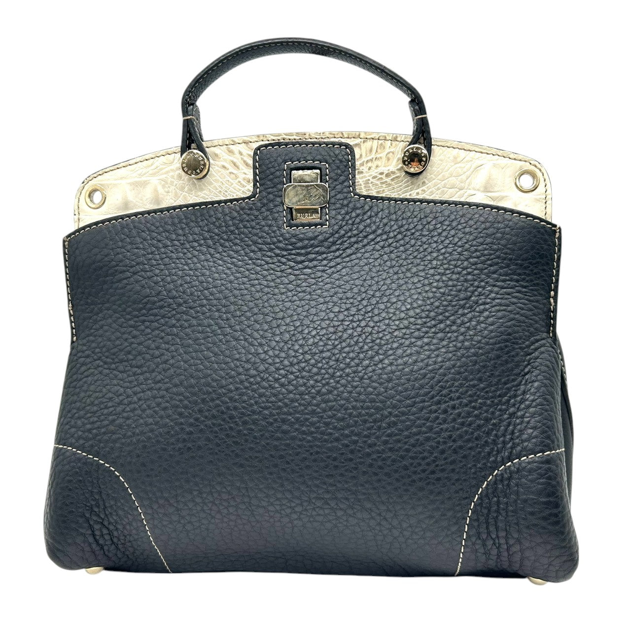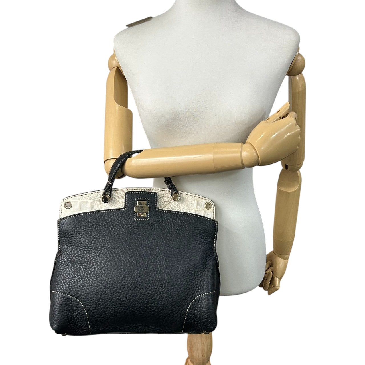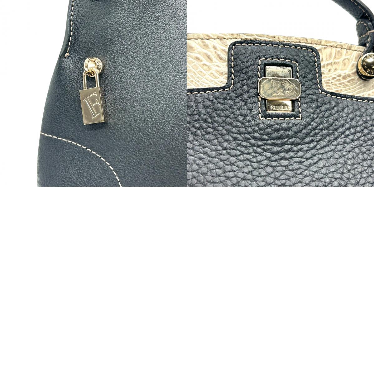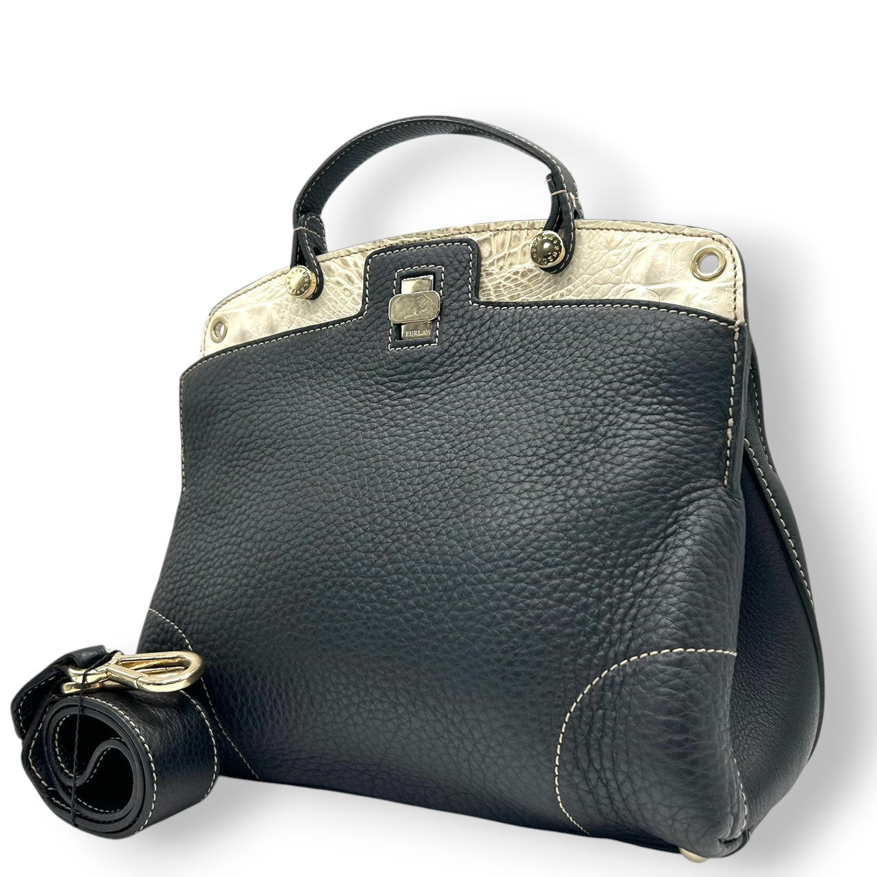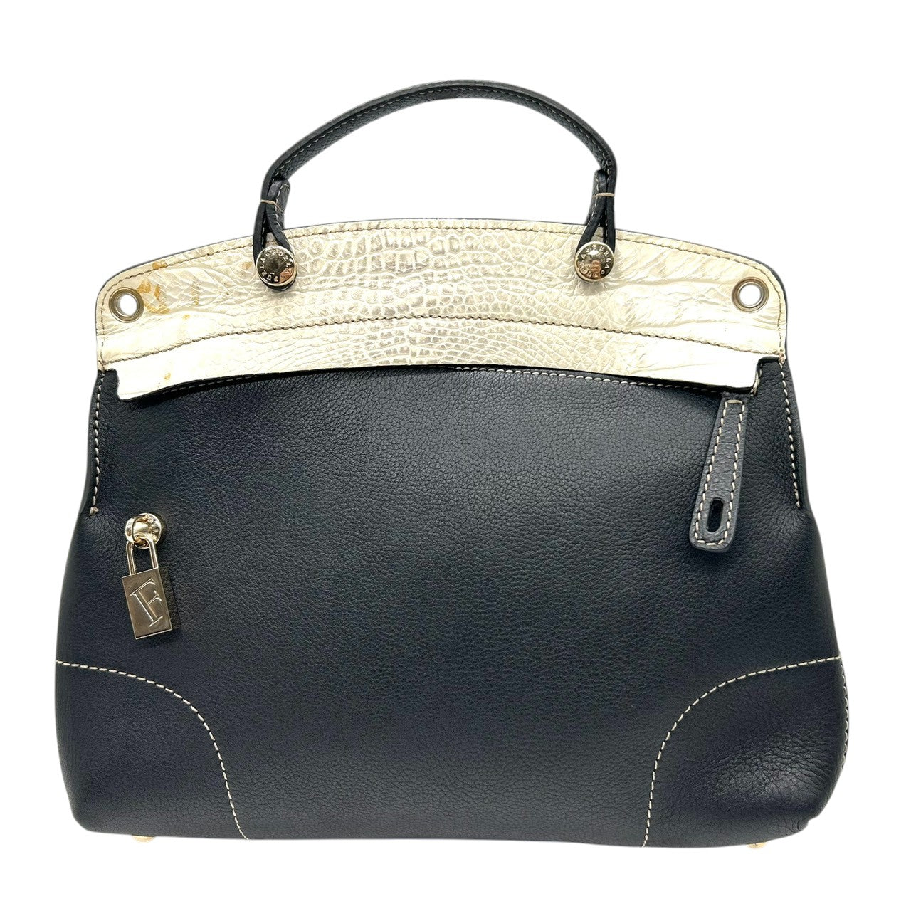 フルラ 2WAY ハンドバッグ ショルダーバッグ レザー 型押しレザー ブラック ホワイト バイカラー ターンロック レディース エレガント フォーマル イタリア製 上品 高級感 通勤 お出かけ クリーニング済み 自立可 s40