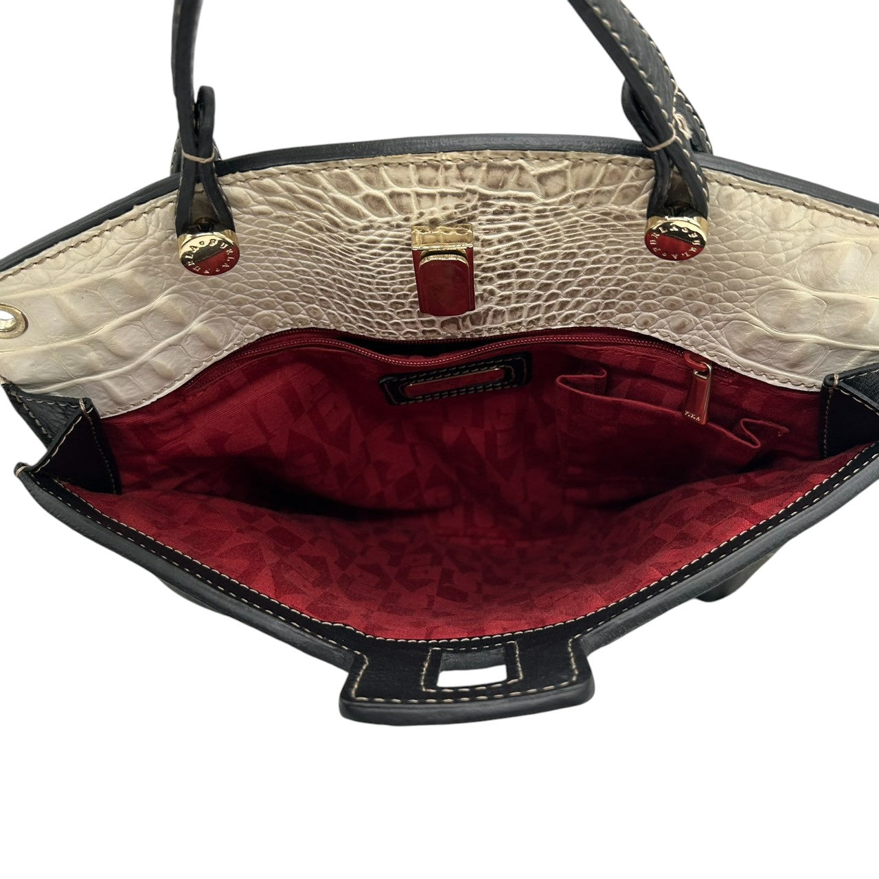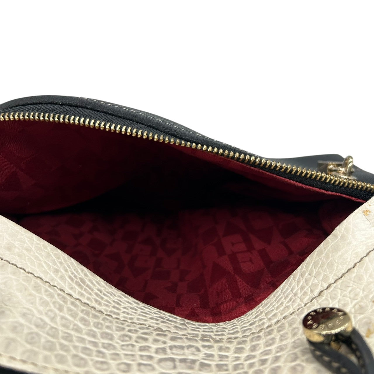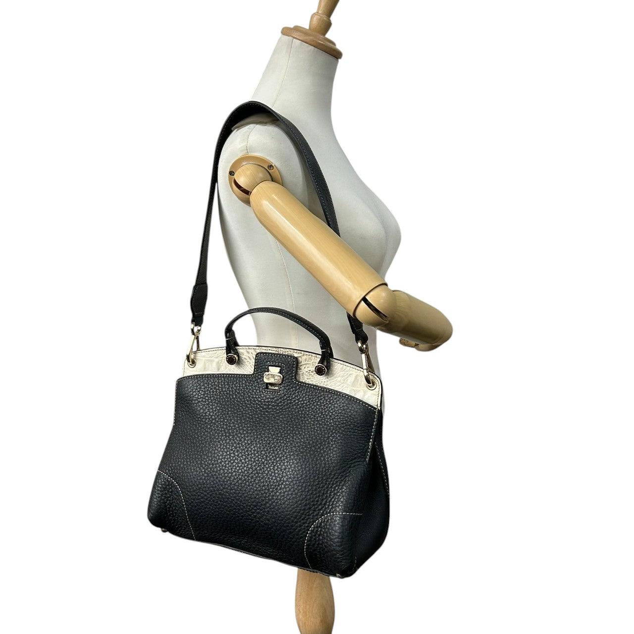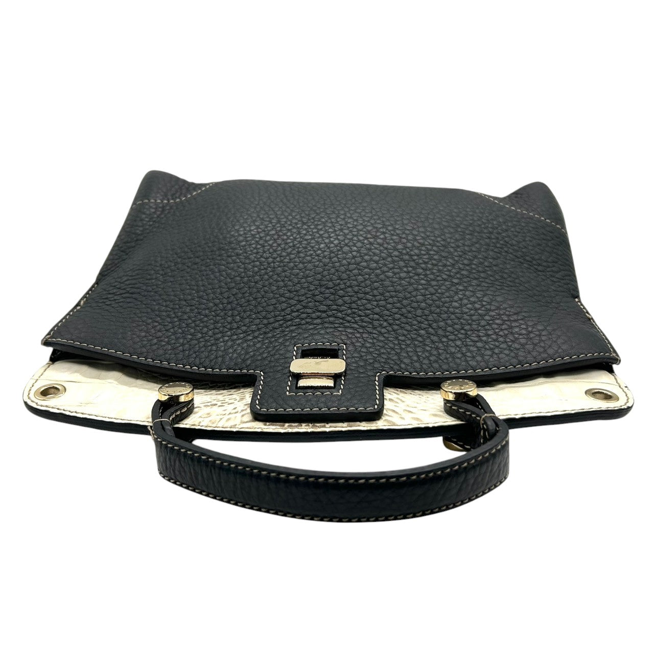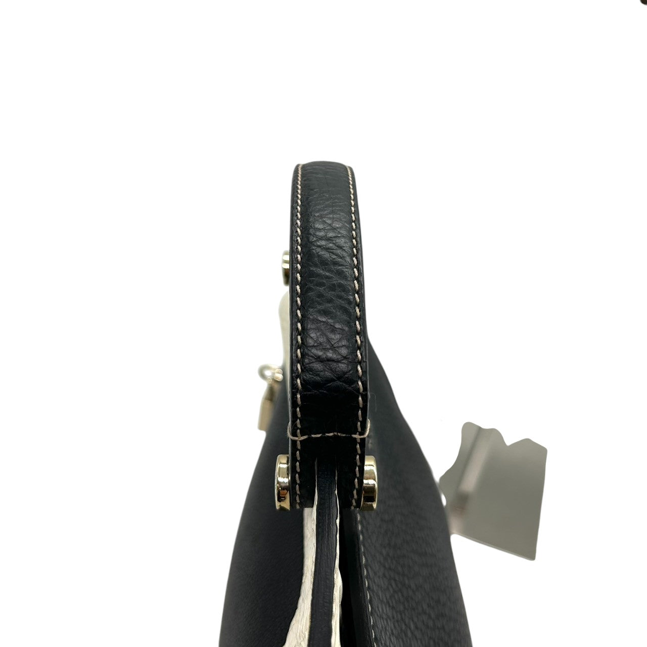 フルラ 2WAY ハンドバッグ ショルダーバッグ レザー 型押しレザー ブラック ホワイト バイカラー ターンロック レディース エレガント フォーマル イタリア製 上品 高級感 通勤 お出かけ クリーニング済み 自立可 s40