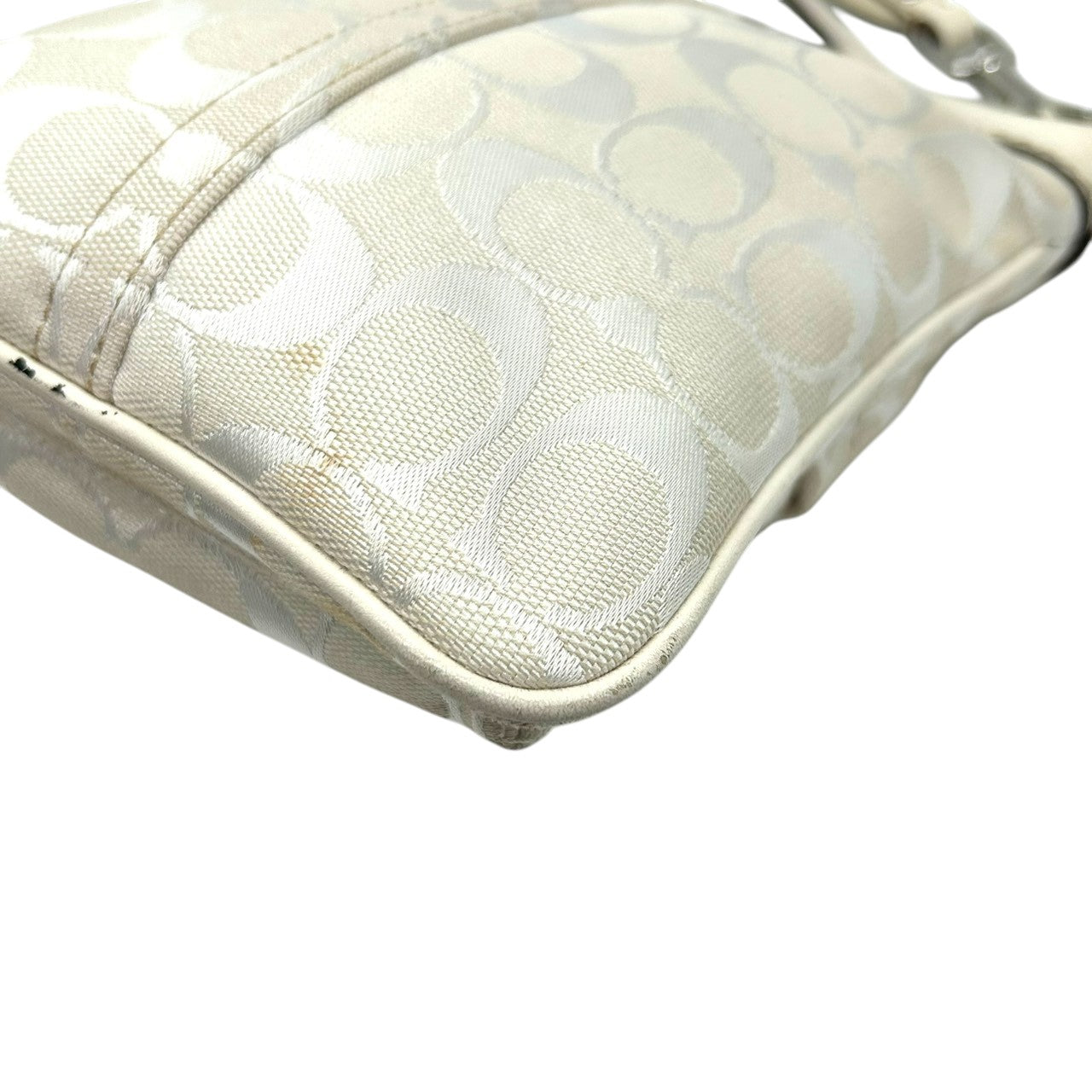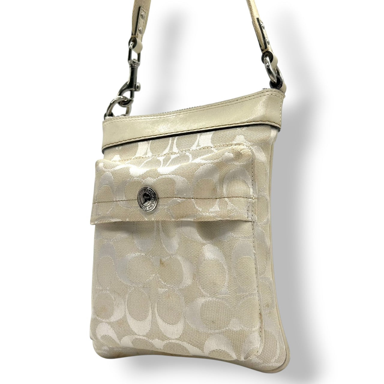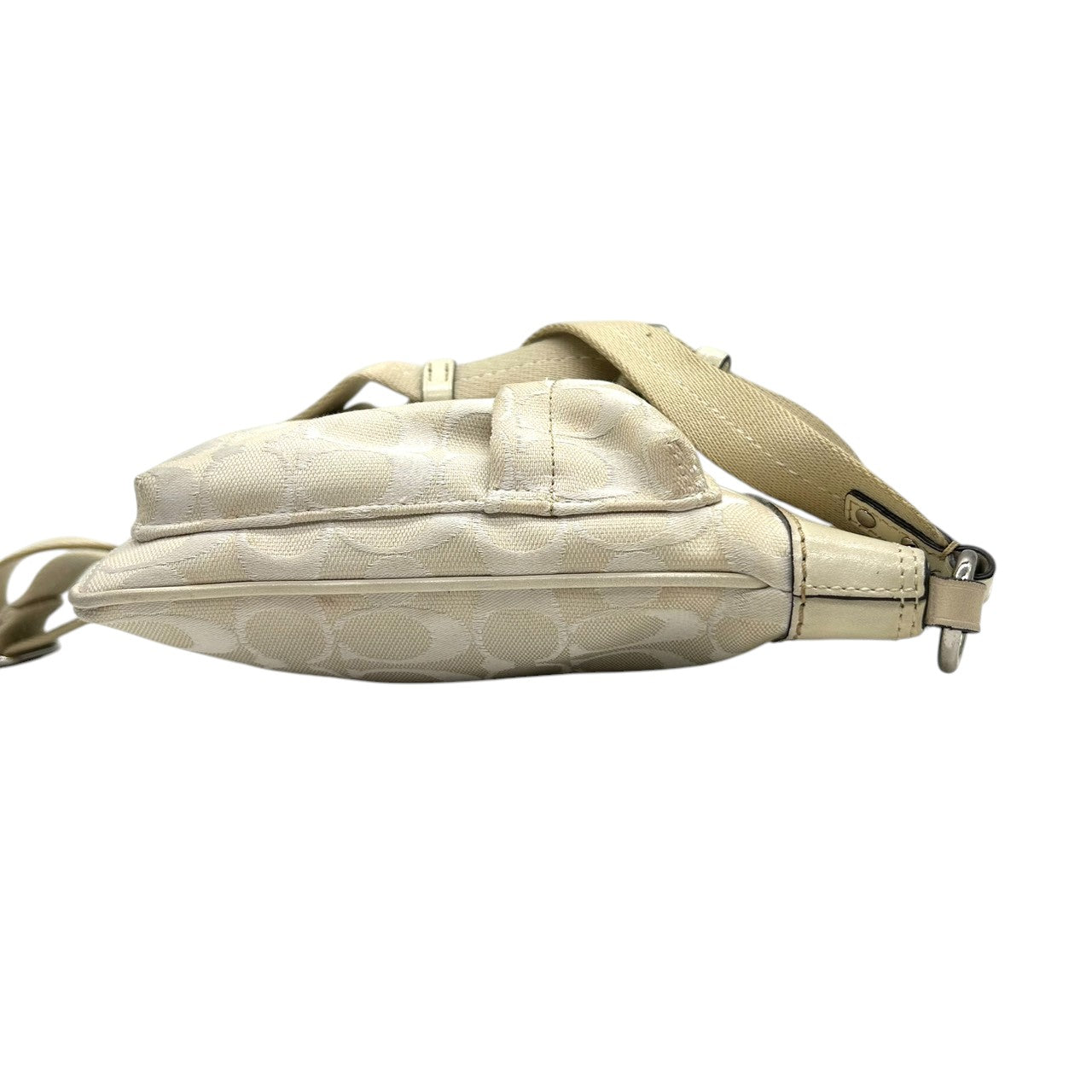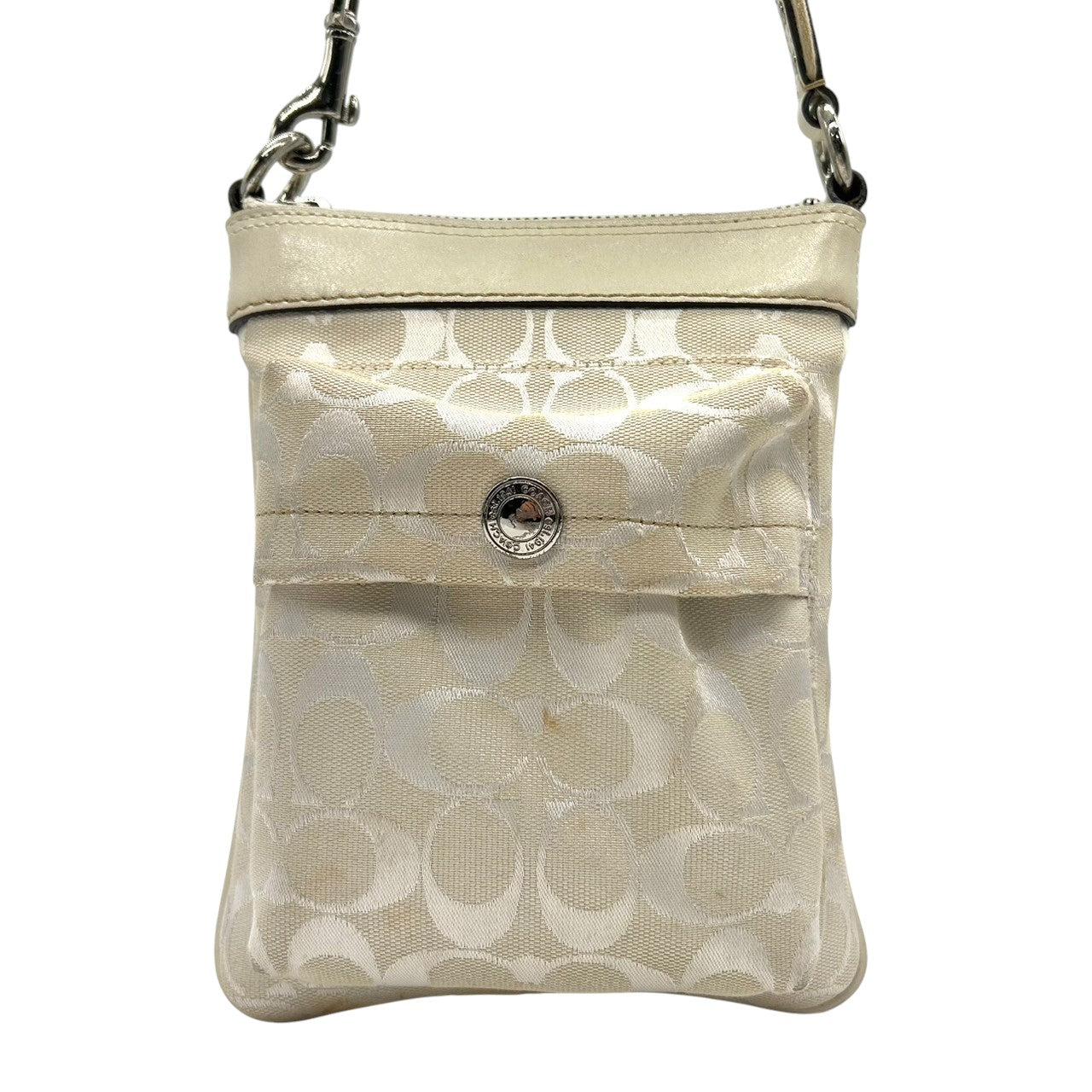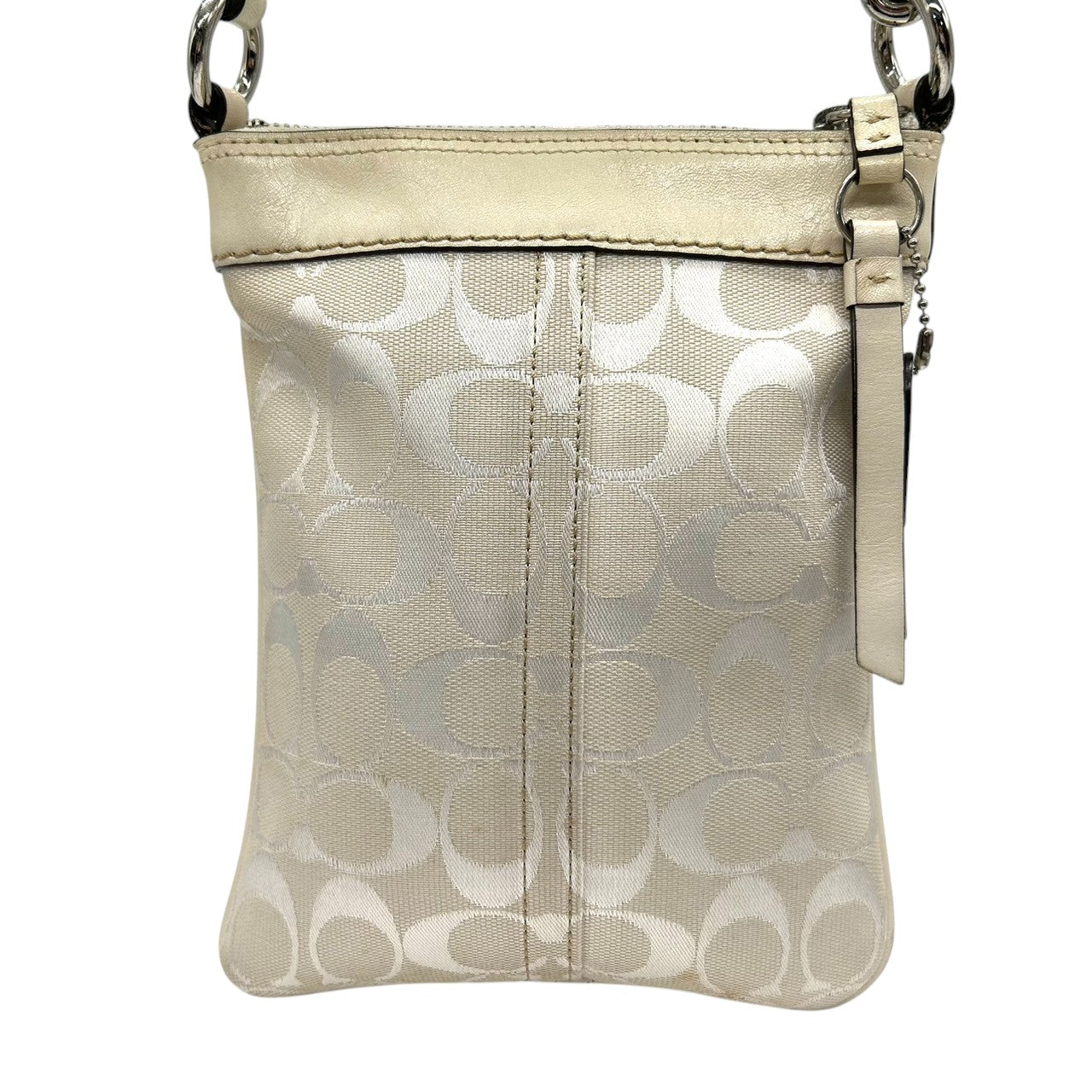 コーチ ショルダーバッグ シグネチャー キャンバス レザー 6442 アイボリー 斜め掛け可 ポシェット サコッシュ ミニショルダー コンパクト 軽量 レディース カジュアル シンプルデザイン クリーニング済み E2