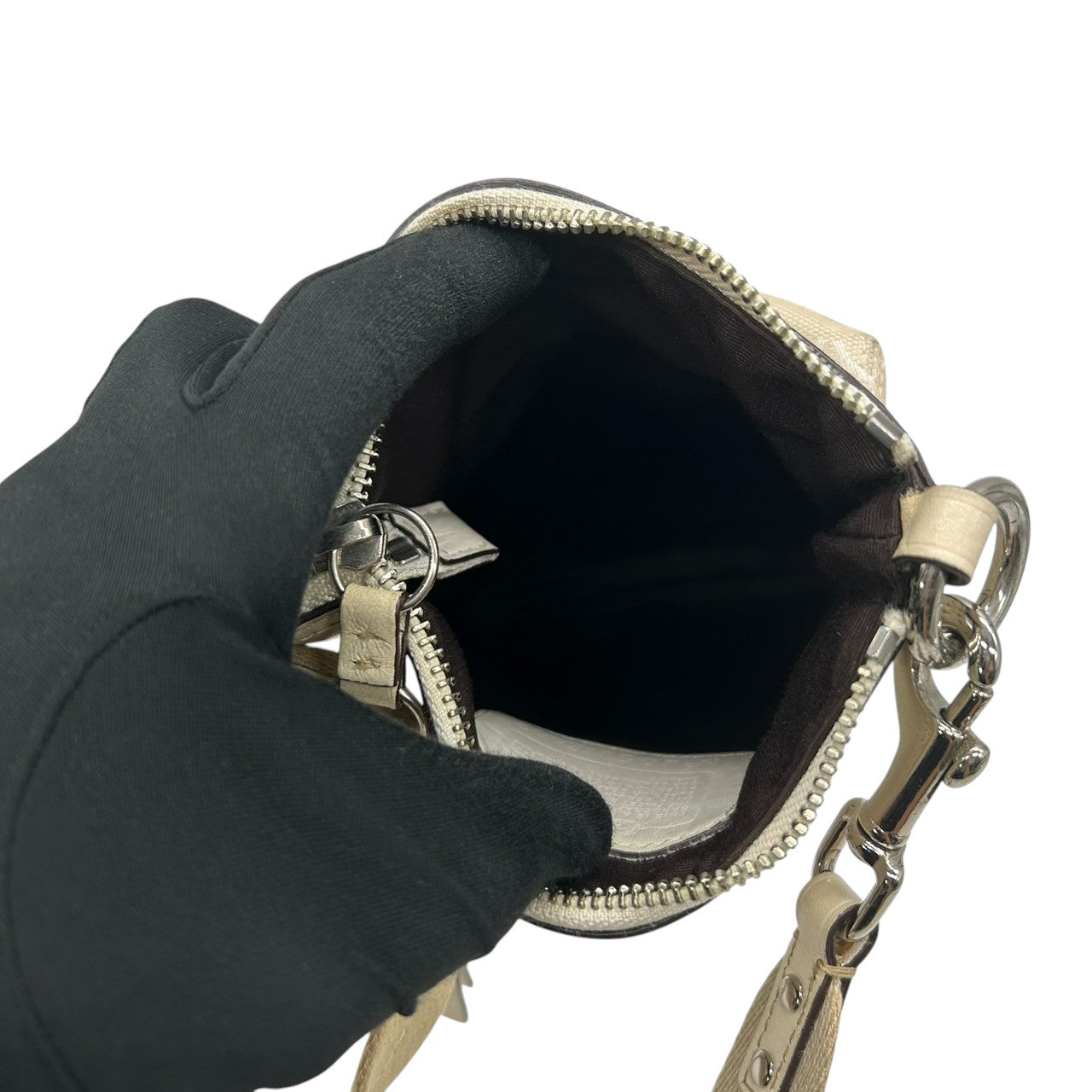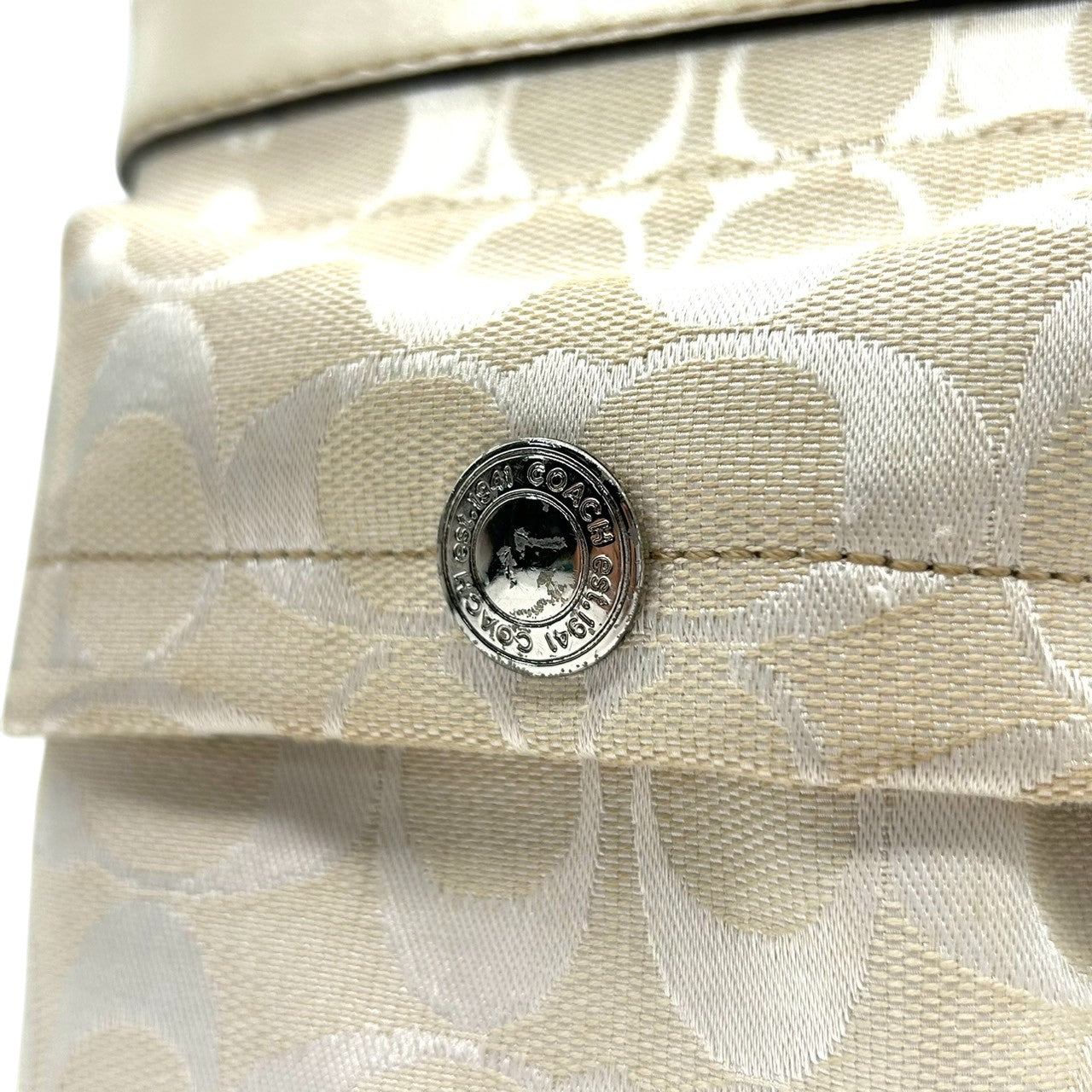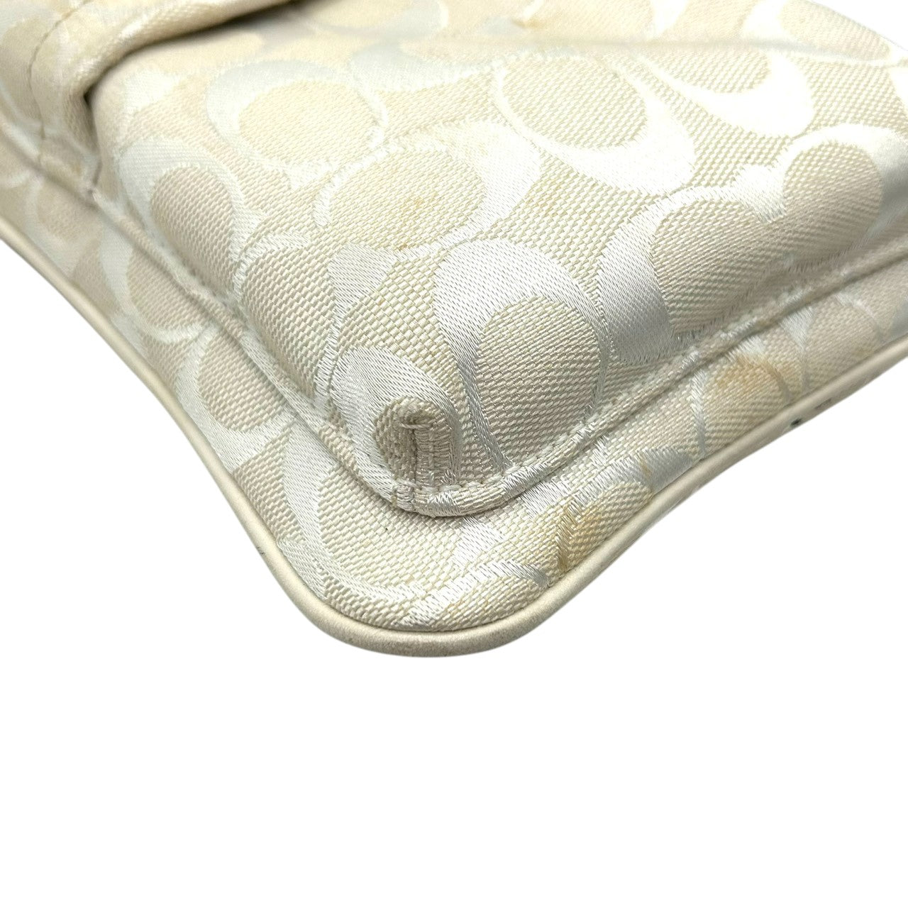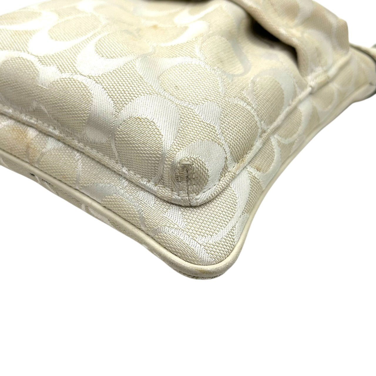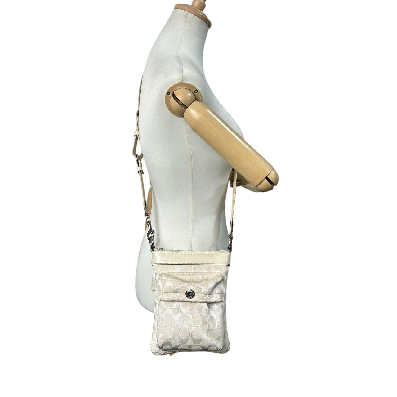 コーチ ショルダーバッグ シグネチャー キャンバス レザー 6442 アイボリー 斜め掛け可 ポシェット サコッシュ ミニショルダー コンパクト 軽量 レディース カジュアル シンプルデザイン クリーニング済み E2