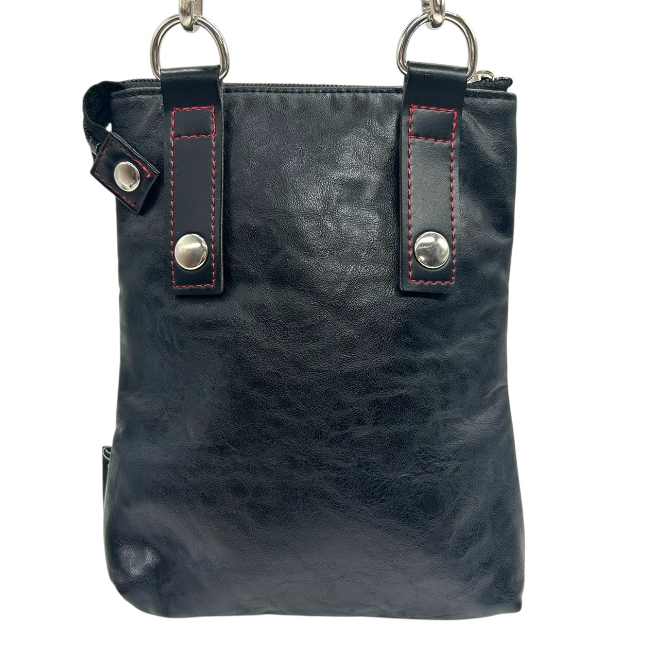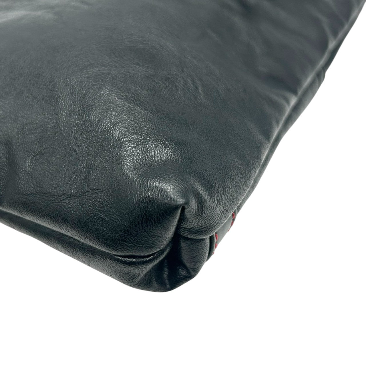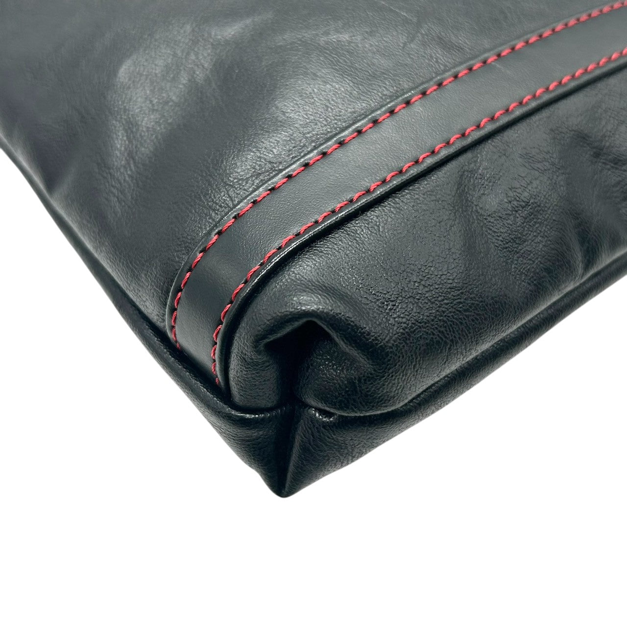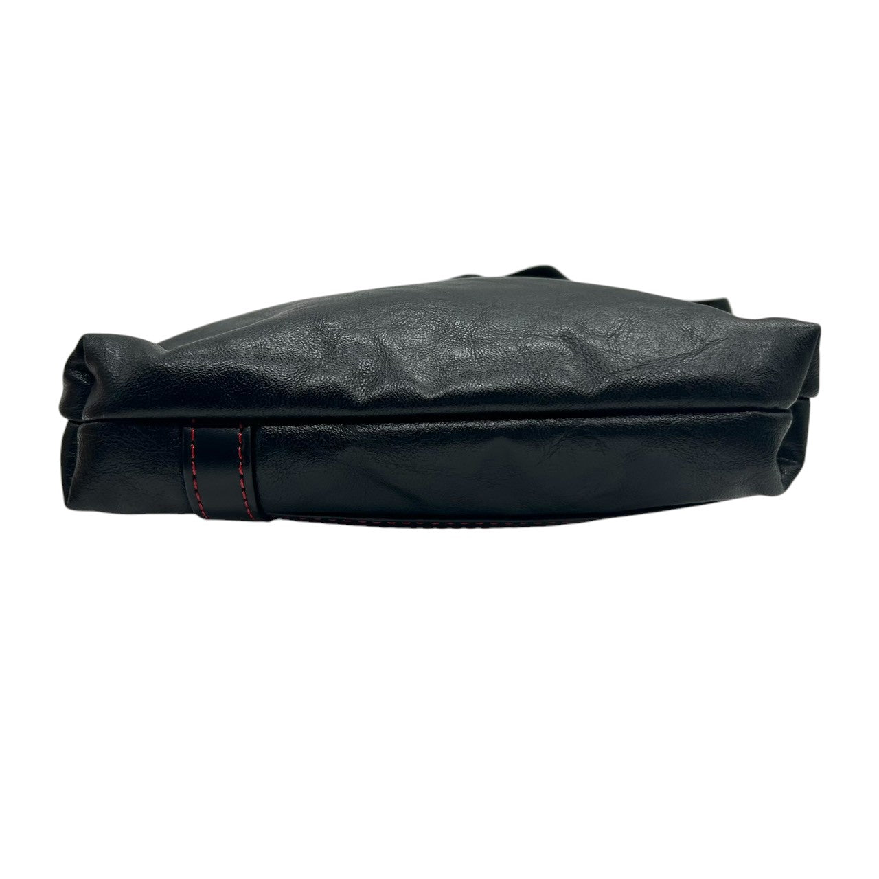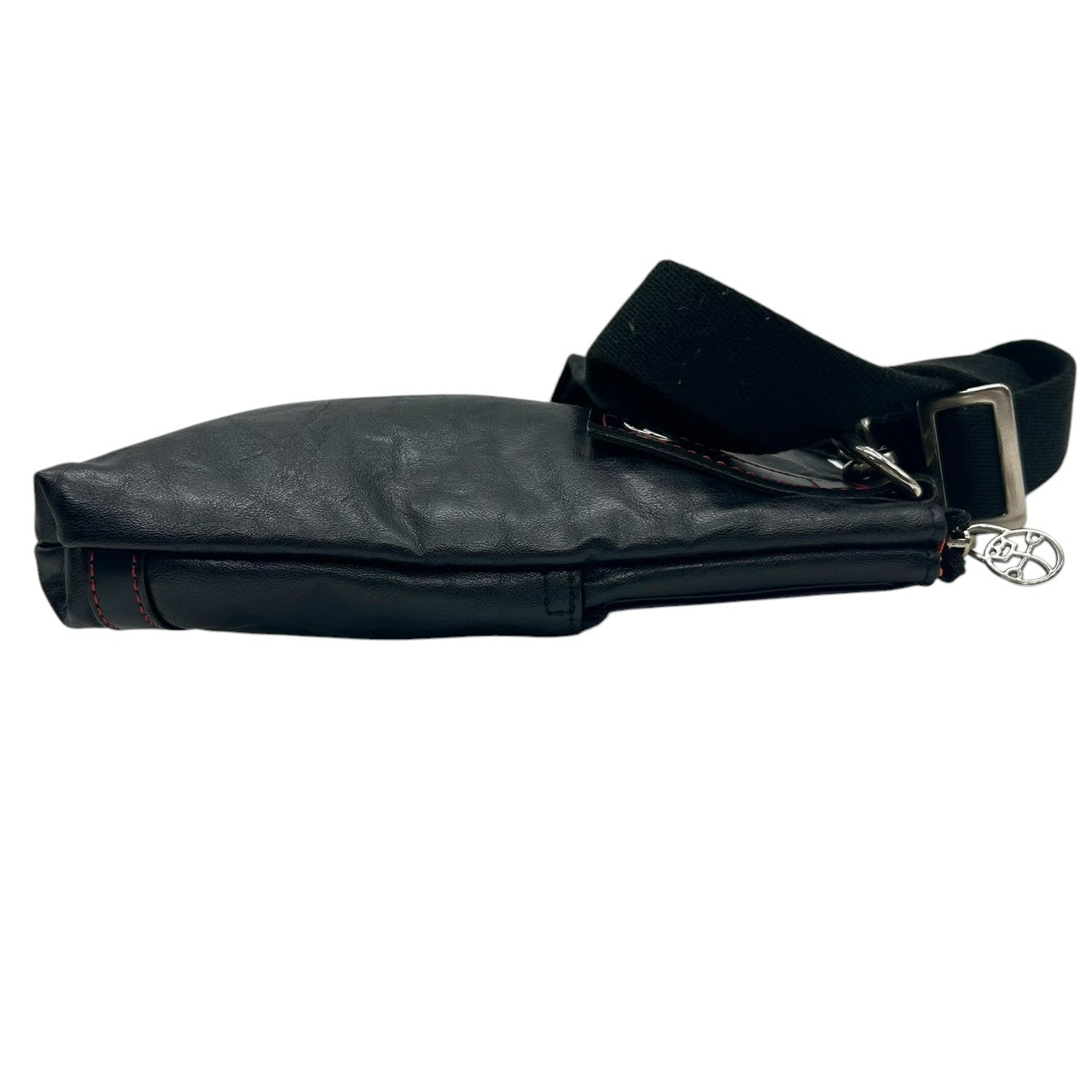 【美品】カステルバジャック ショルダーバッグ ポシェット レザー 本革 ブラック レッドステッチ ロゴ 型押し メンズ レディース ユニセックス 斜め掛け可 コンパクト 軽量 ミニショルダー カジュアル クリーニング済み 61153 U8