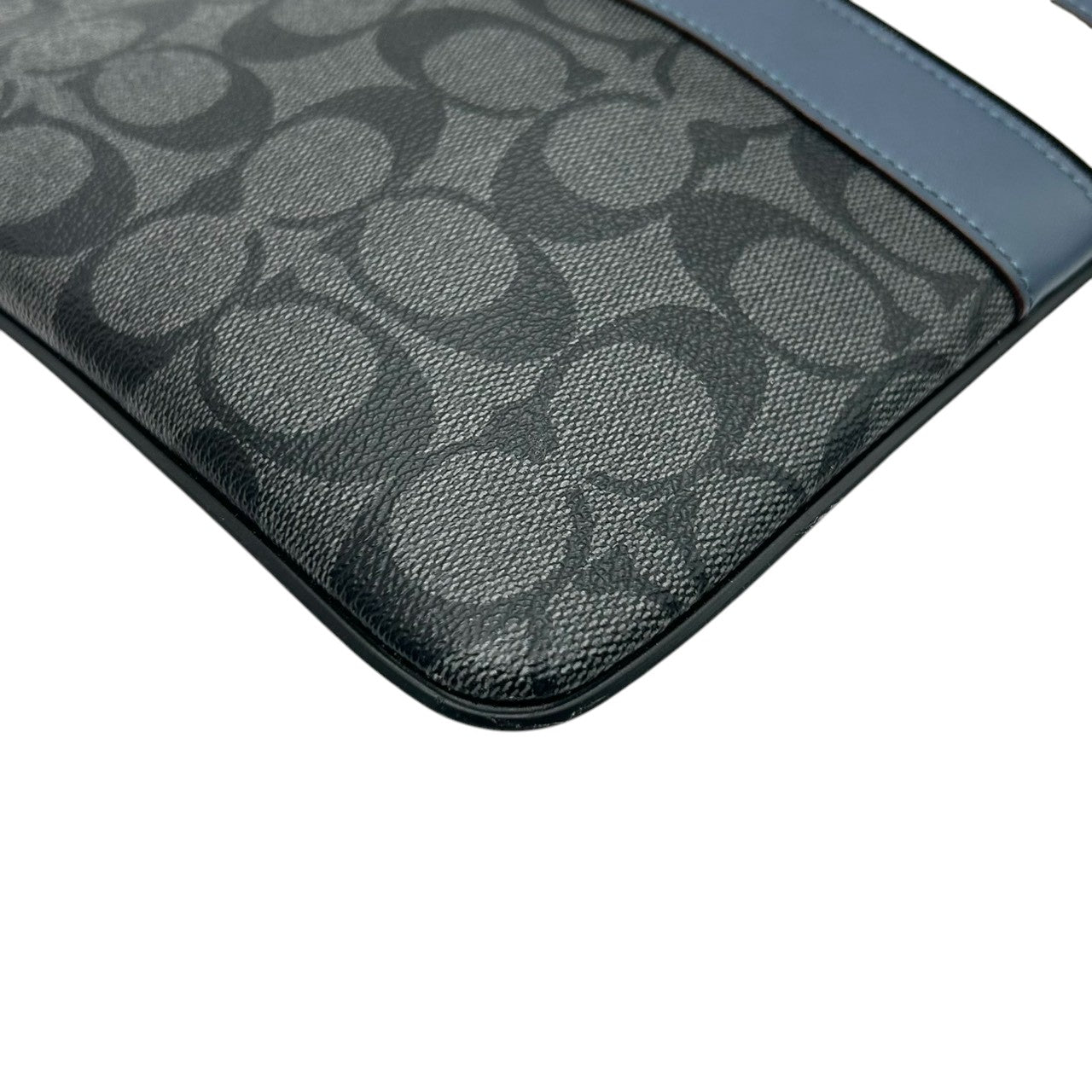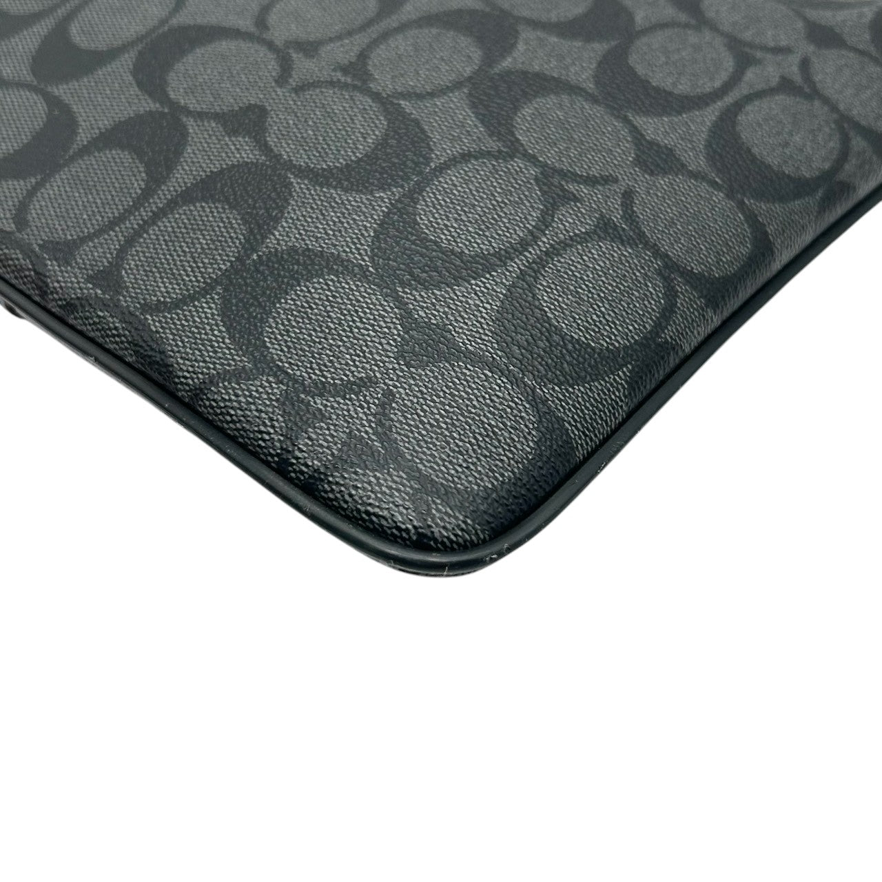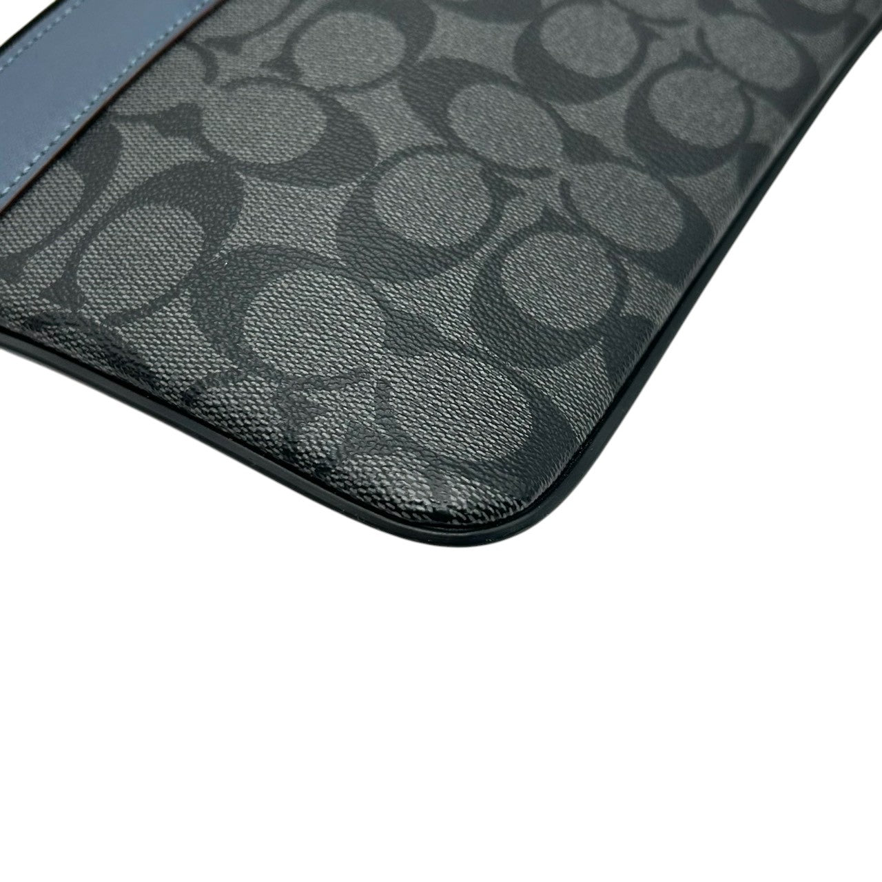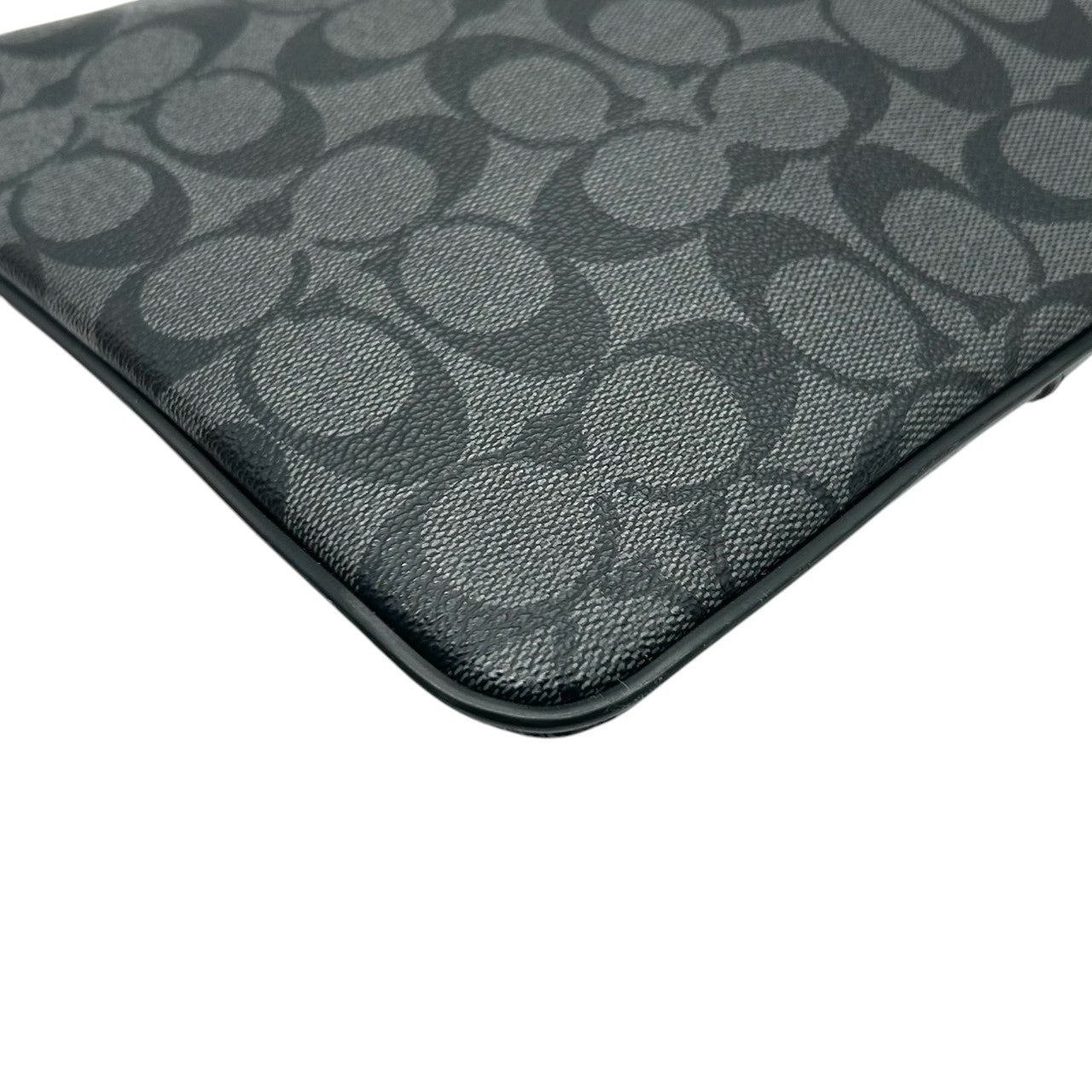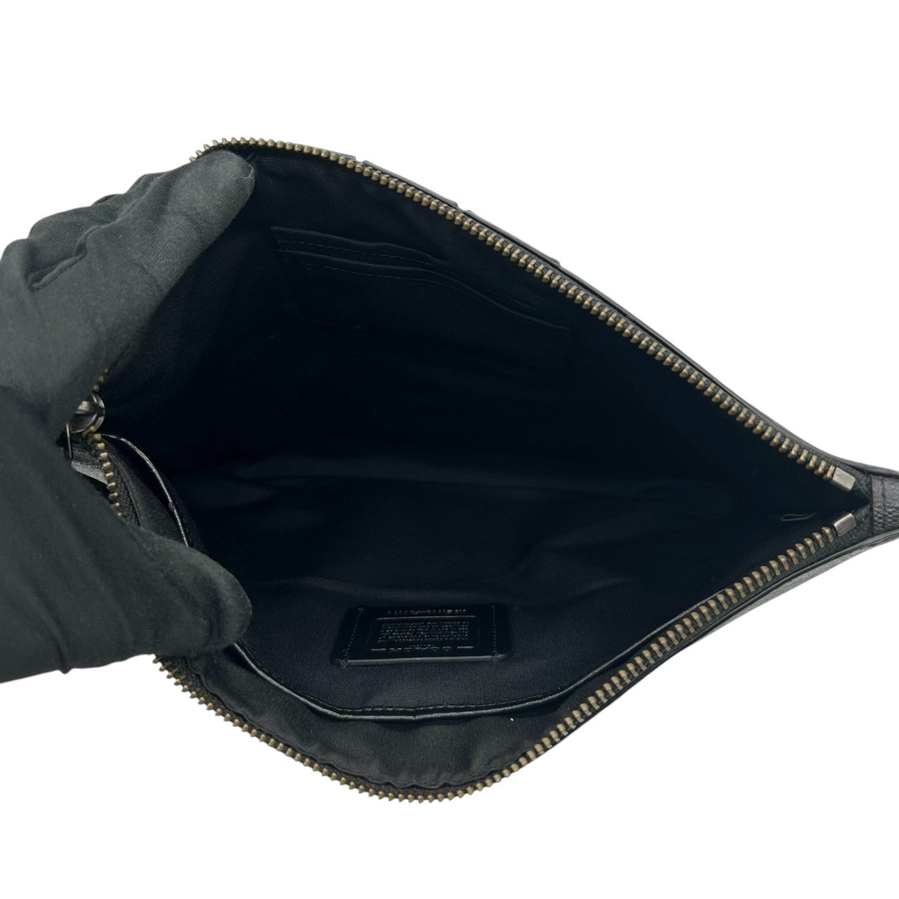 【美品】コーチ クラッチバッグ F25071 シグネチャー ストライプ PVC レザー ブラック ブルー セカンドバッグ A4収納可 薄型 メンズ レディース ユニセックス ビジネス カジュアル バッグインバッグ クリーニング済み U4