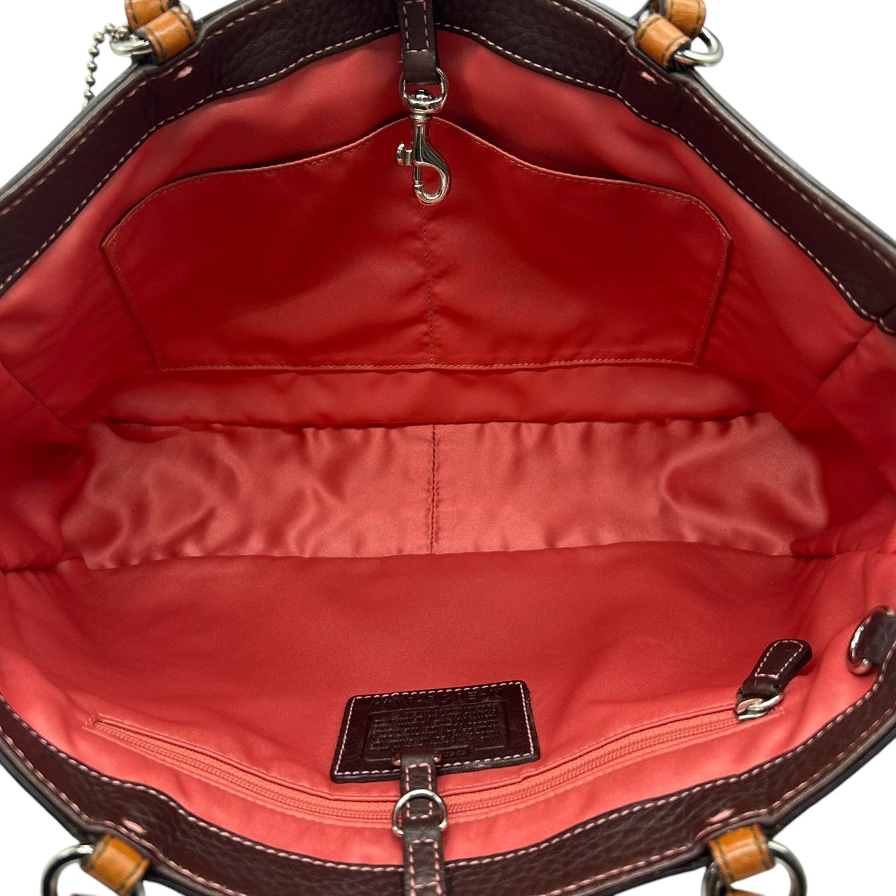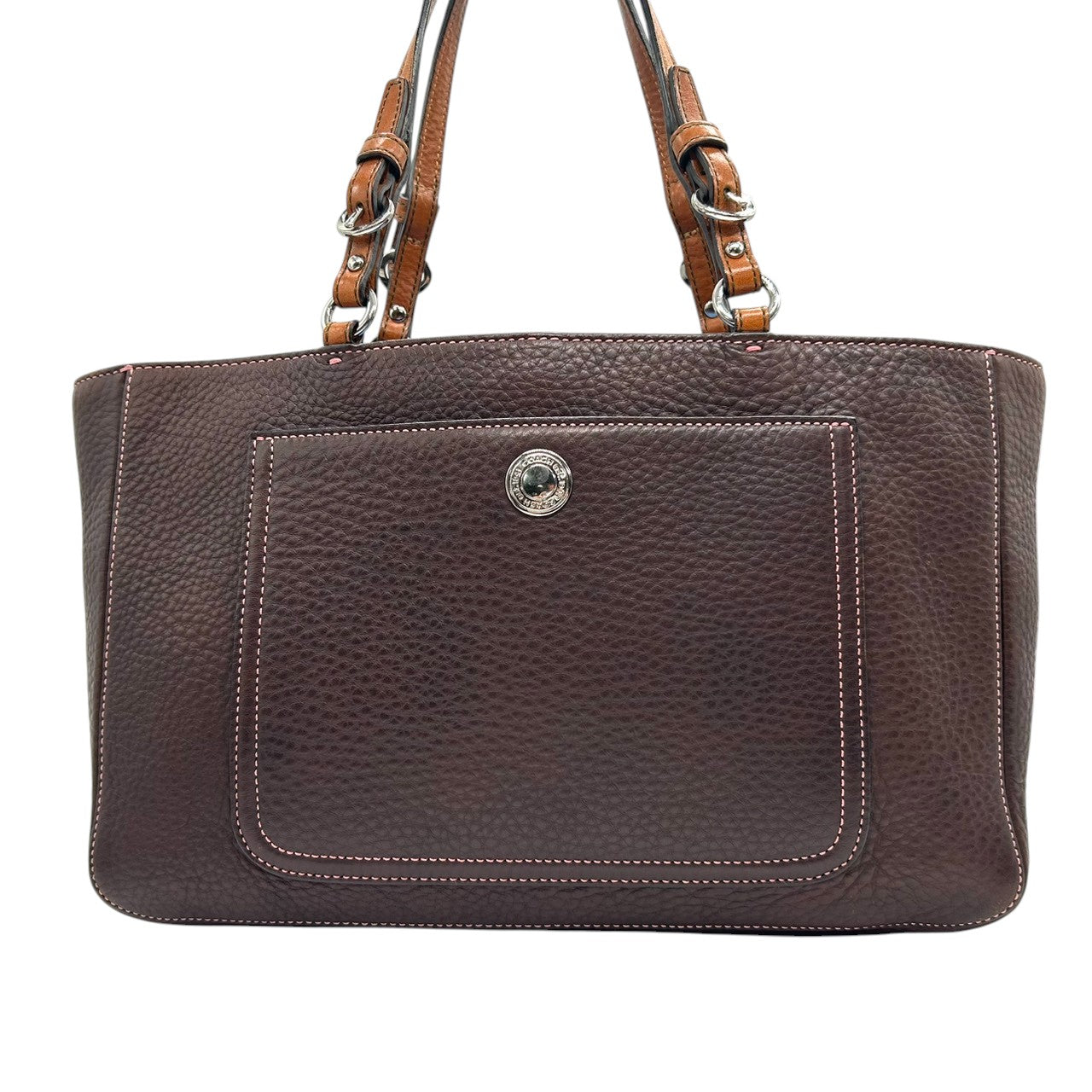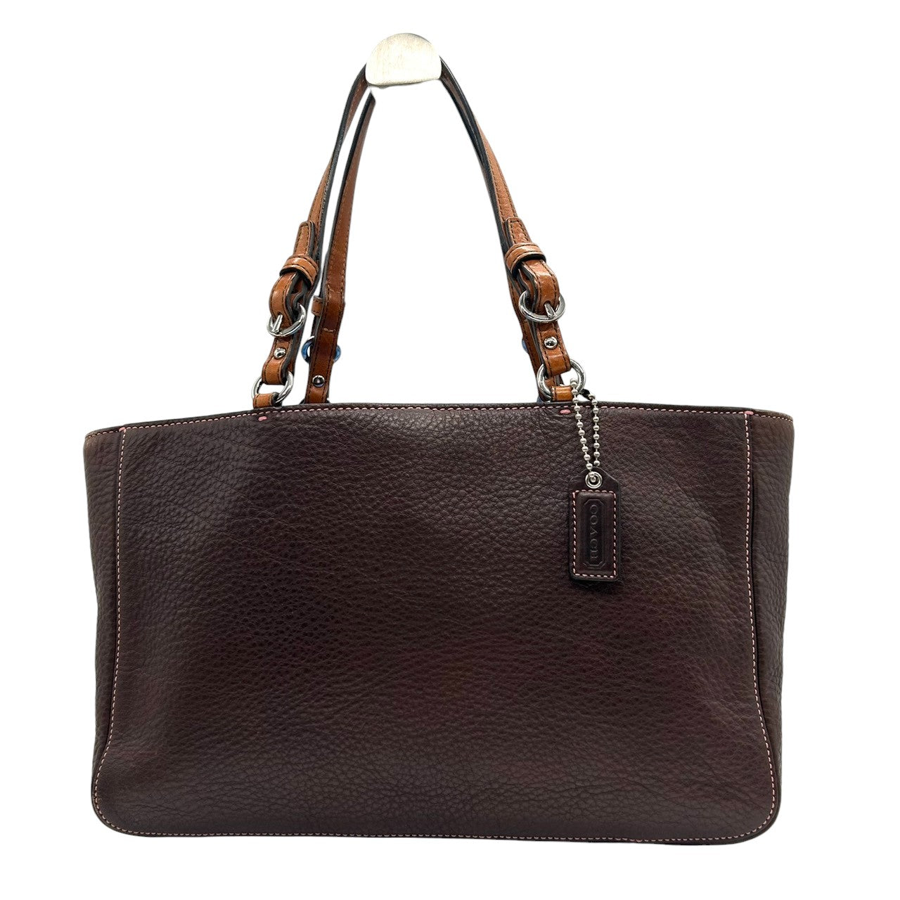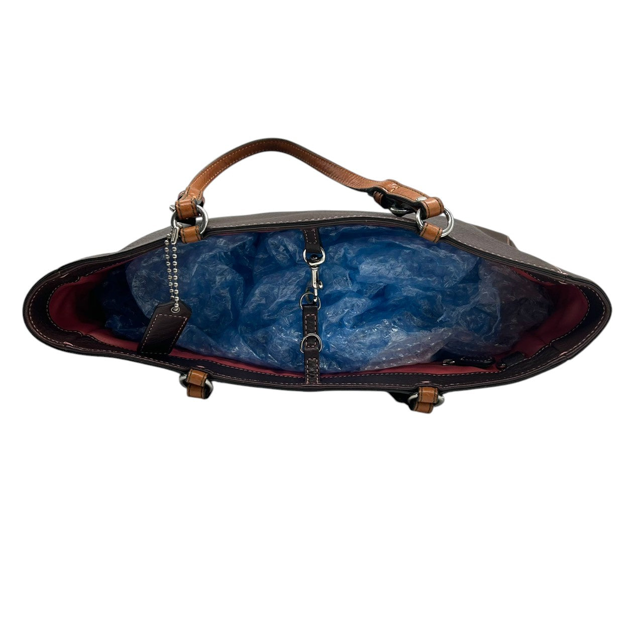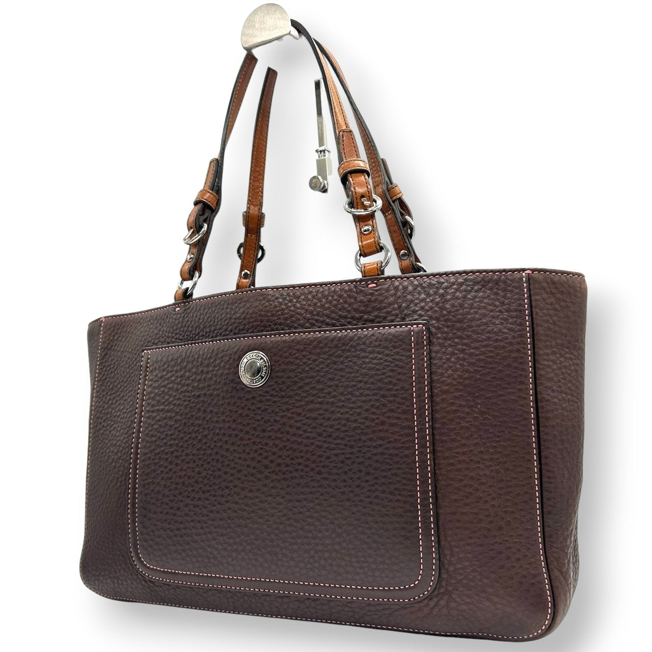 【美品】コーチ トートバッグ 8A44 レザー 本革 ブラウン A4収納可 大容量 ワンショルダー 肩掛け ビジネスバッグ 通勤 通学 レディース 機能的 ステッチ シボ革 上質レザー クラシック ヴィンテージデザイン クリーニング済み U4