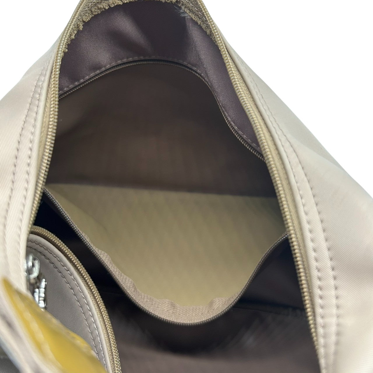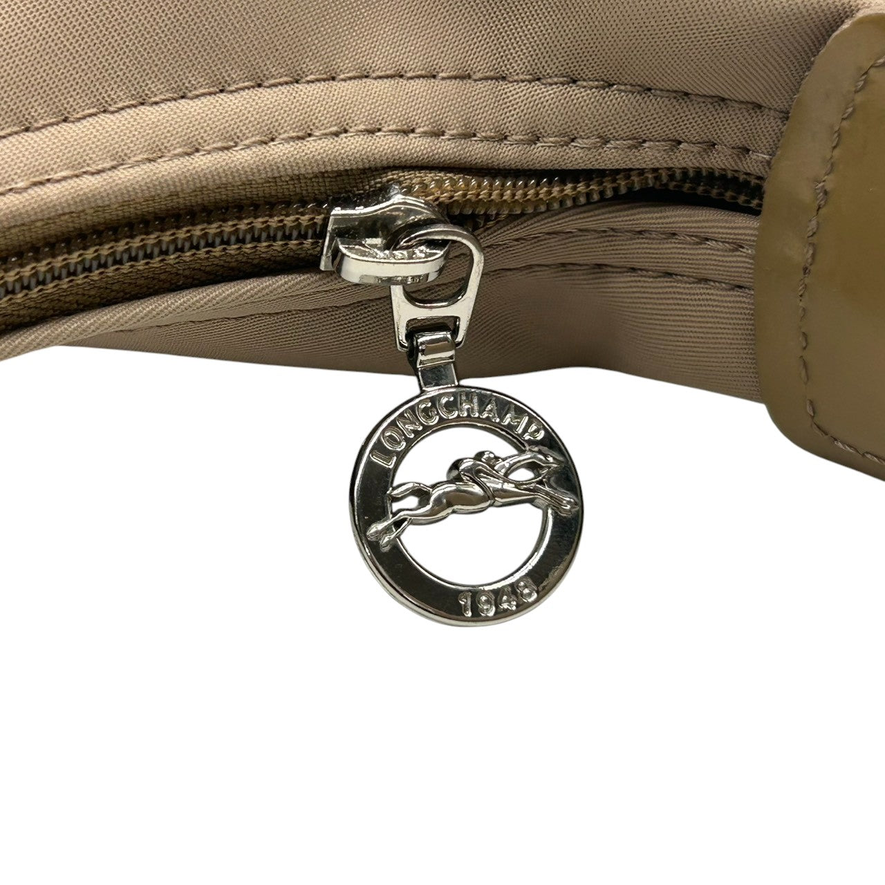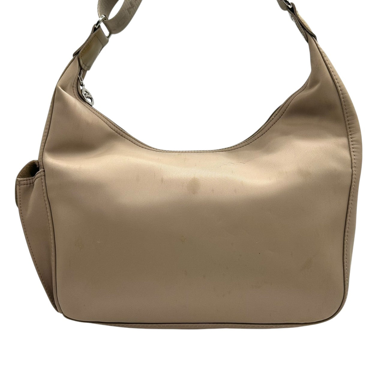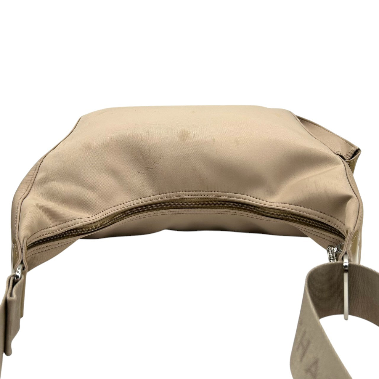 ロンシャン ショルダーバッグ ナイロン パテントレザー ベージュ ホーボーバッグ 斜め掛け可 A4収納可 大容量 レディース 軽量 機能的 カジュアル エレガント シンプルデザイン 通勤 通学 デイリーユース ロゴプレート クリーニング済み s87