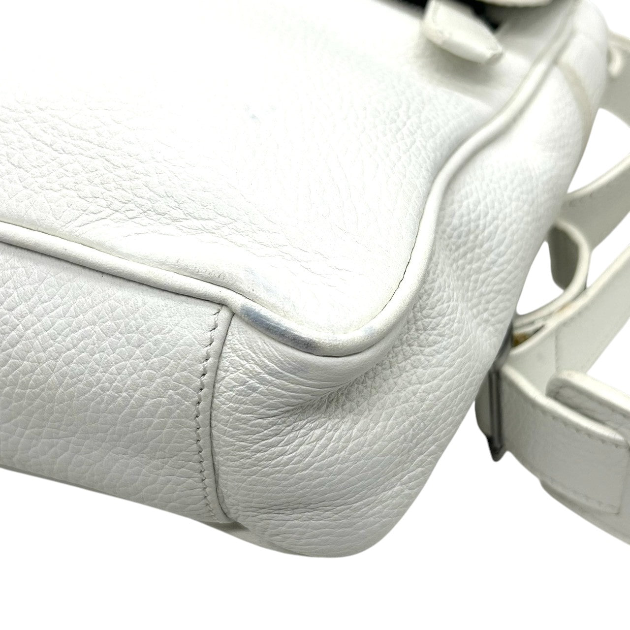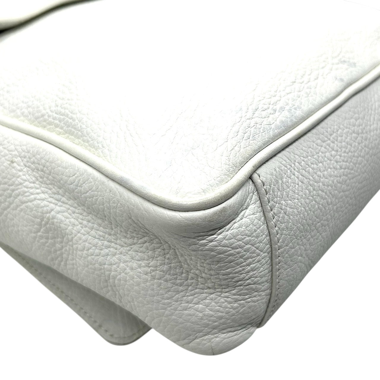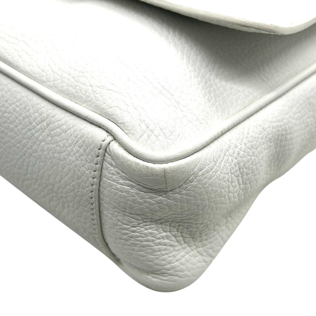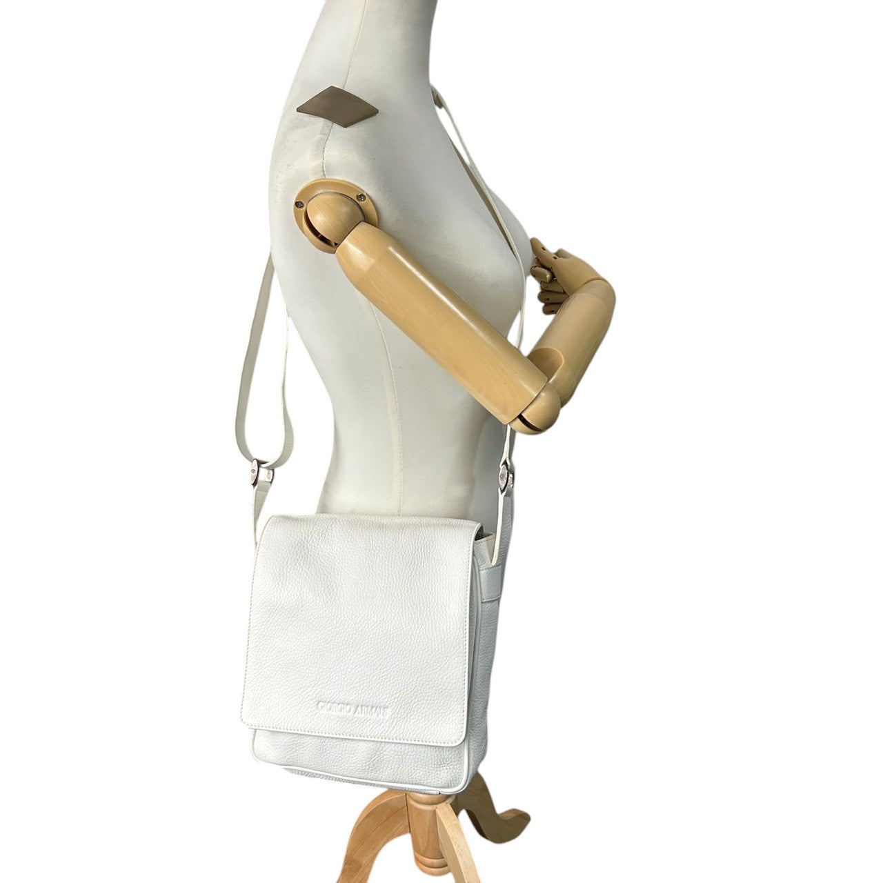 ジョルジオアルマーニ ショルダーバッグ レザー 本革 ホワイト フラップ 斜め掛け可 A4収納可 メンズ レディース ユニセックス メッセンジャーバッグ ビジネス カジュアル ロゴ型押し 上質シボ革 イタリア製 高級 クリーニング済み s81