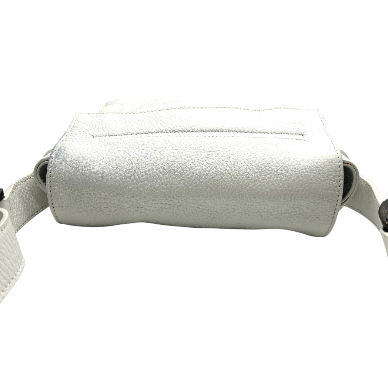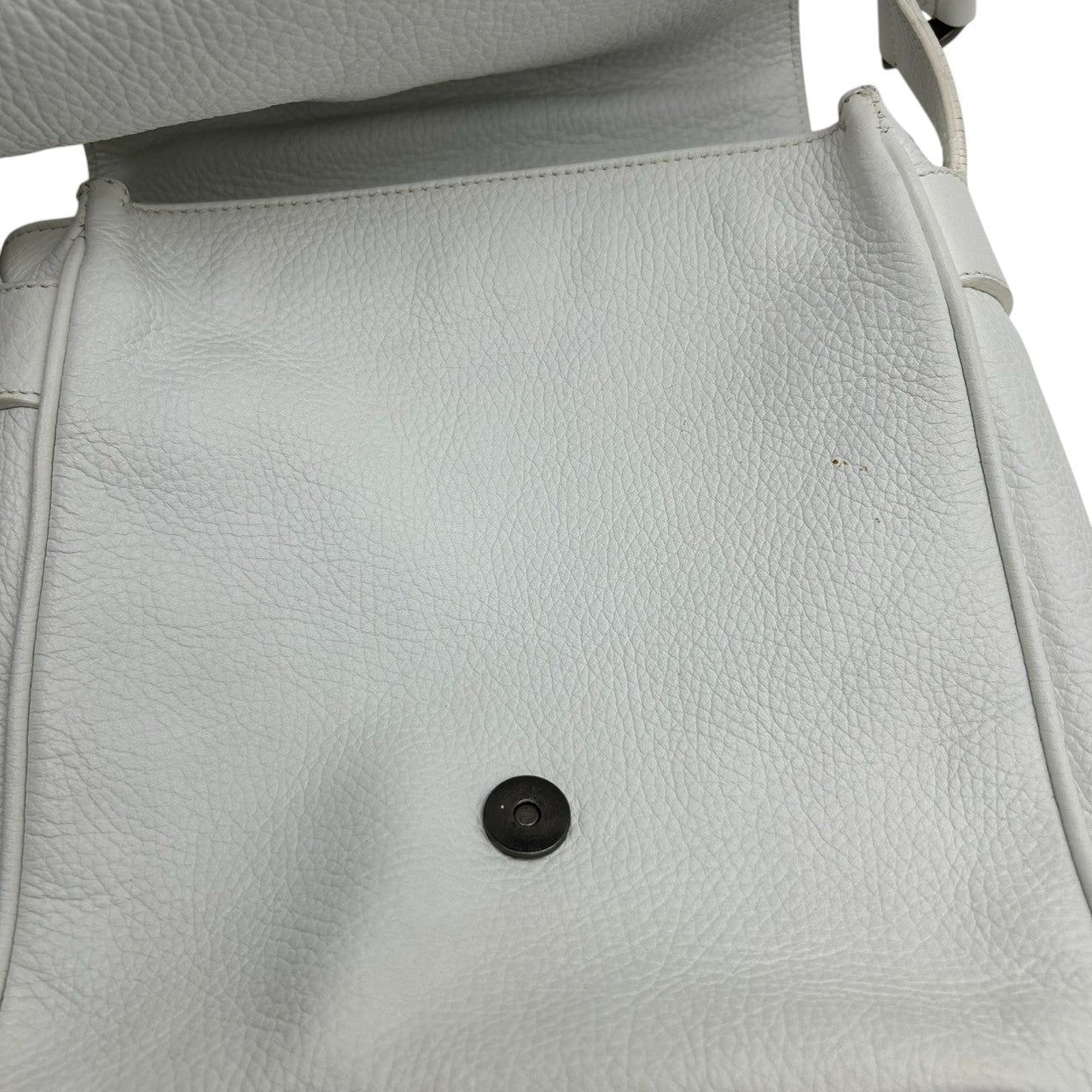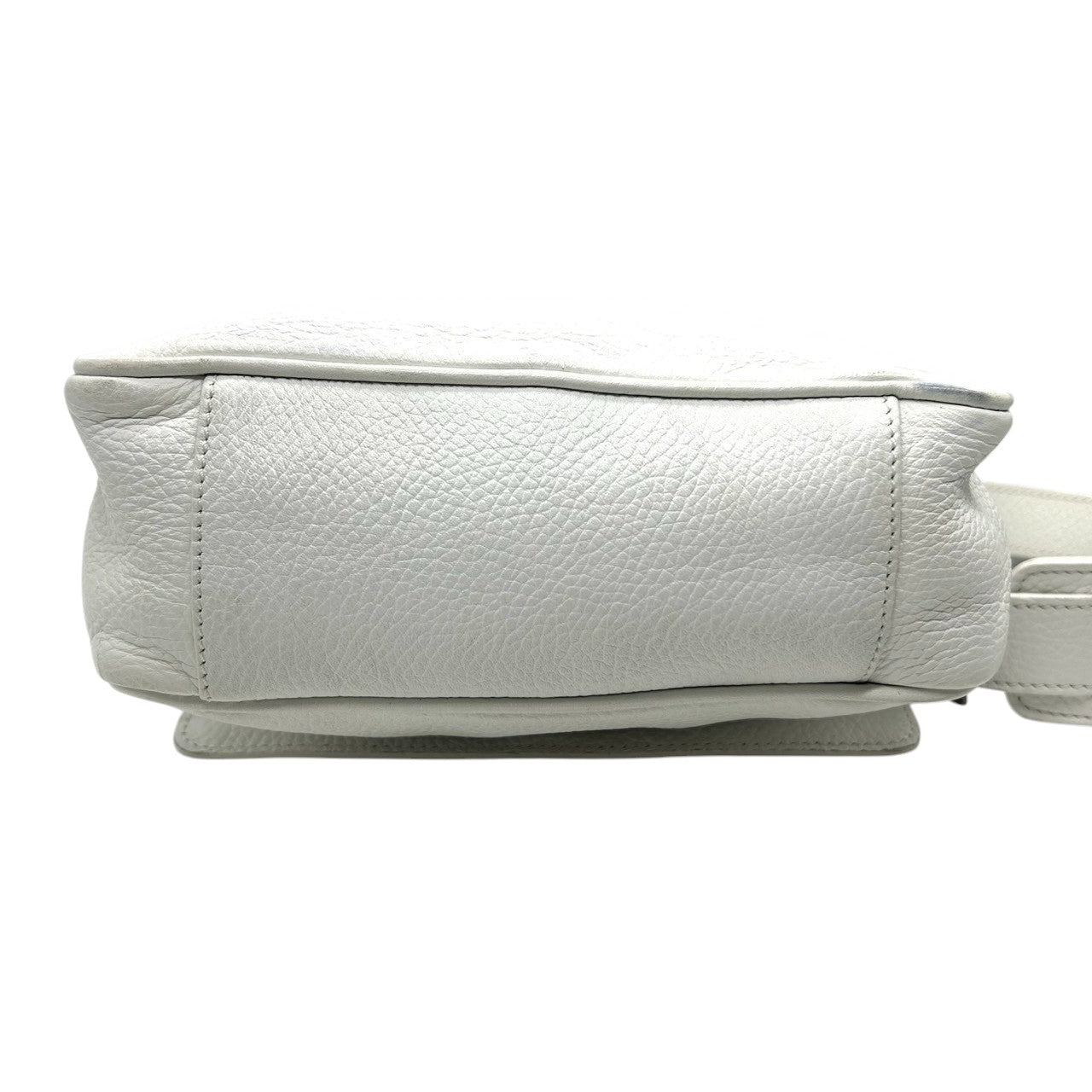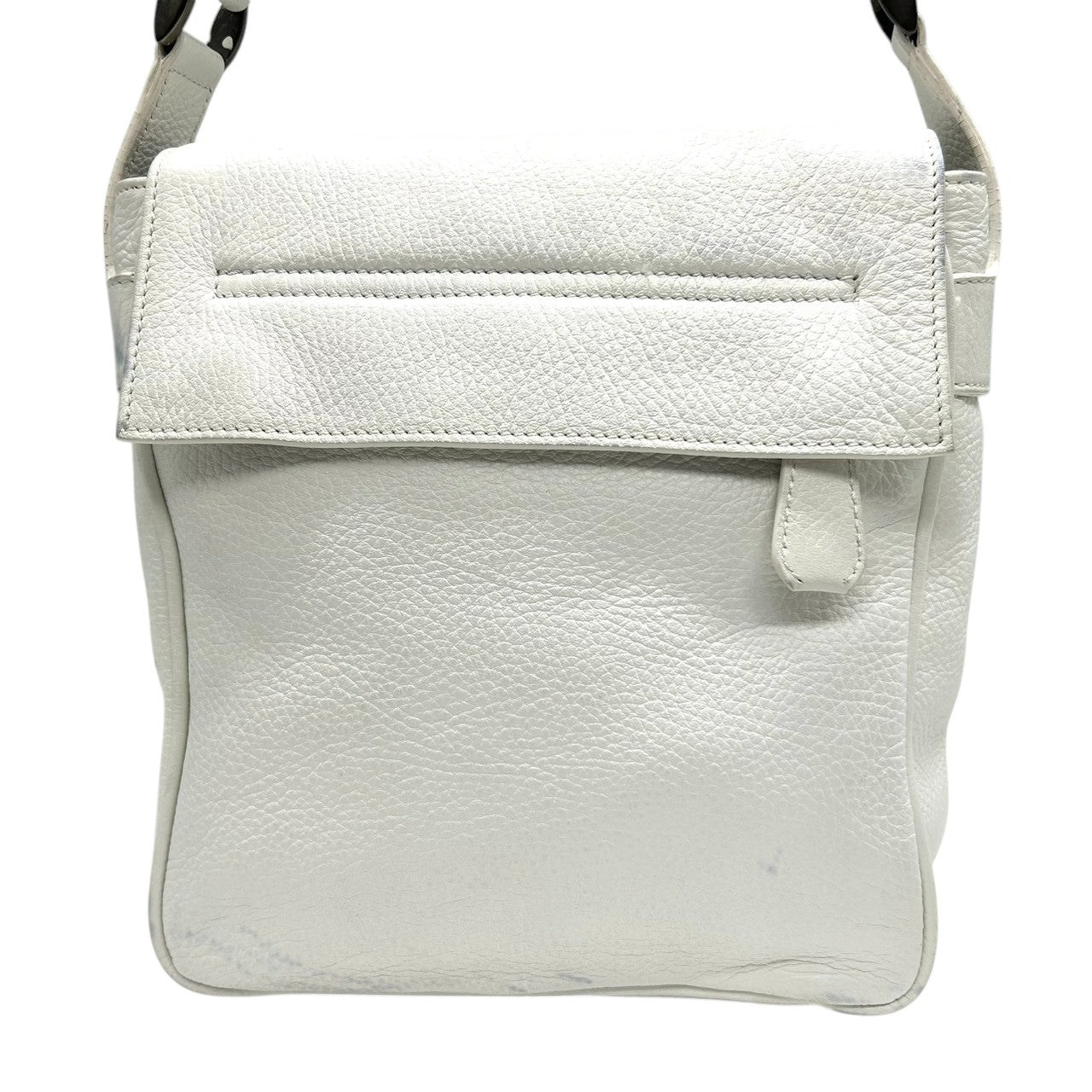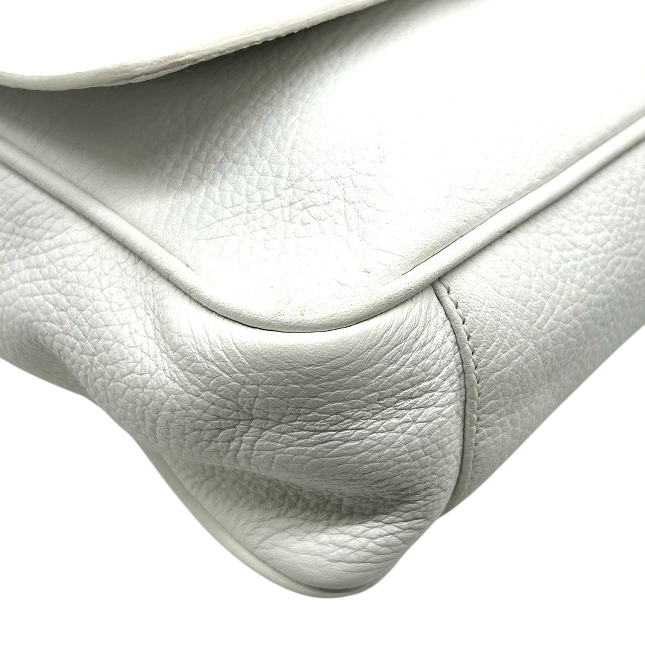 ジョルジオアルマーニ ショルダーバッグ レザー 本革 ホワイト フラップ 斜め掛け可 A4収納可 メンズ レディース ユニセックス メッセンジャーバッグ ビジネス カジュアル ロゴ型押し 上質シボ革 イタリア製 高級 クリーニング済み s81